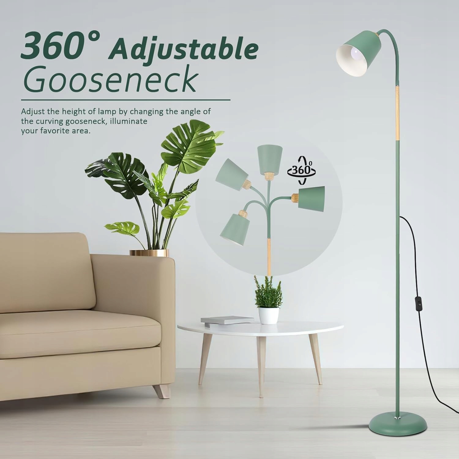 - 【для всіх типів меблів】: Основний колір лампи підлоги свіжий і модний лісовий зелений, незалежно від того, який колір меблів відповідає, вона може бути легко інтегрована і дає людям відчуття залишатися в пазух природи. Мінімалістичний дизайн означає, що стояча лампа розміщена у вітальні, спальні, офісі, коридорі, вона може привернути увагу. 4 Гнучкий лебідний шия може бути зігнутий у будь -якому положенні, щоб забезпечити світло під час читання, а кут зручний.