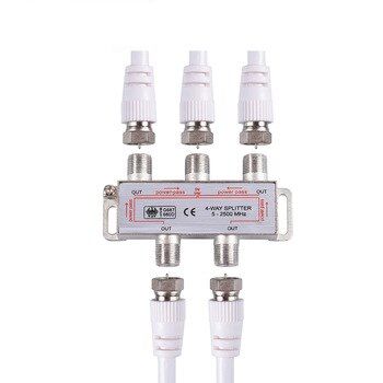Високоякісний екранований розгалужувач з низькими втратами (розгалужувач телевізійного сигналу), з 1 входом і 4 виходами. Розгалужувач працює в діапазоні 5-2450 МГц. Ідеально підходить для розгалужувачів сигналу ефірного та супутникового телебачення.