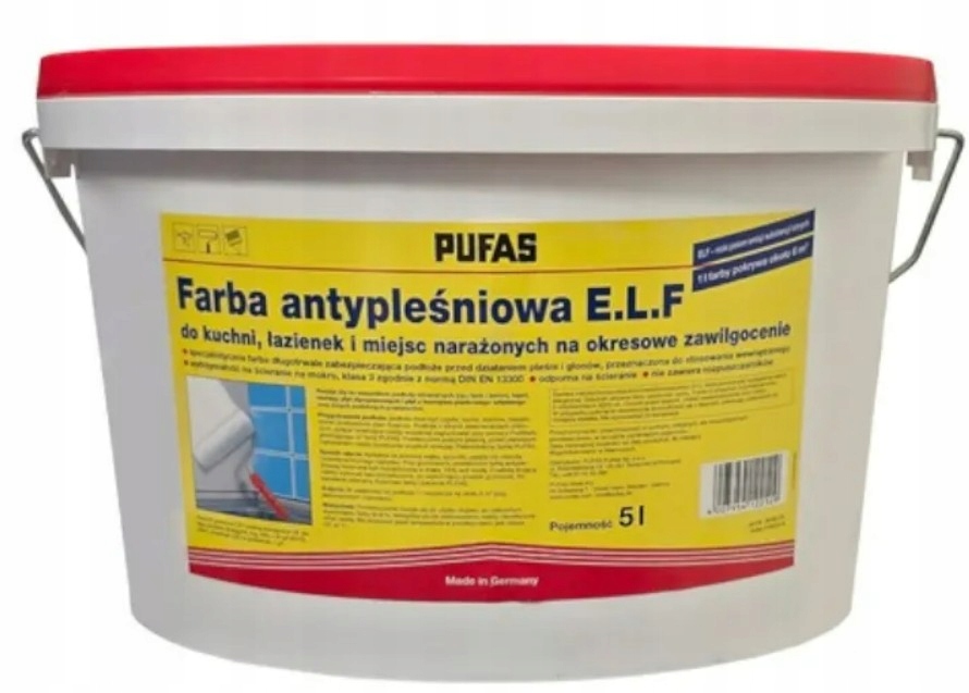 Анти -нальтова фарба PUFAS -це високоякісний продукт, призначений для внутрішнього живопису, де є ризик цвілі та грибів. Він ідеально працює в кімнатах із підвищеною вологістю, такими як ванні кімнати, кухні, підвали та пральні. Завдяки спеціальній формулі вона ефективно захищає поверхню стін та стелі проти розвитку непривабливих і шкідливих мікроорганізмів. > Безпечний для здоров'я - Низька викиди, ідеально підходить для інтер'єрів житла. B> Висока продуктивність - Один 5 -літровий пакет, щоб намалювати значну поверхню. Li>