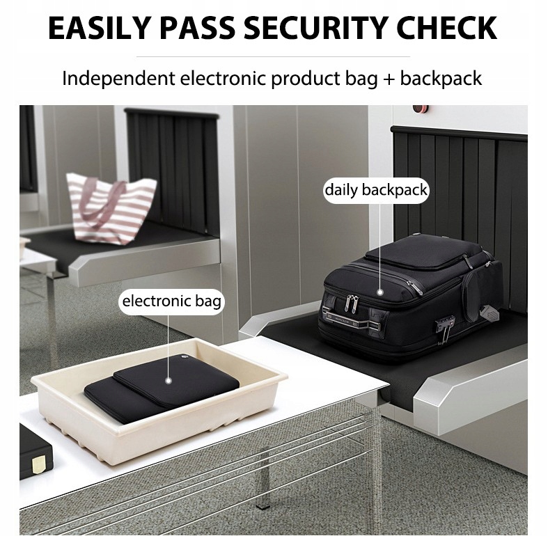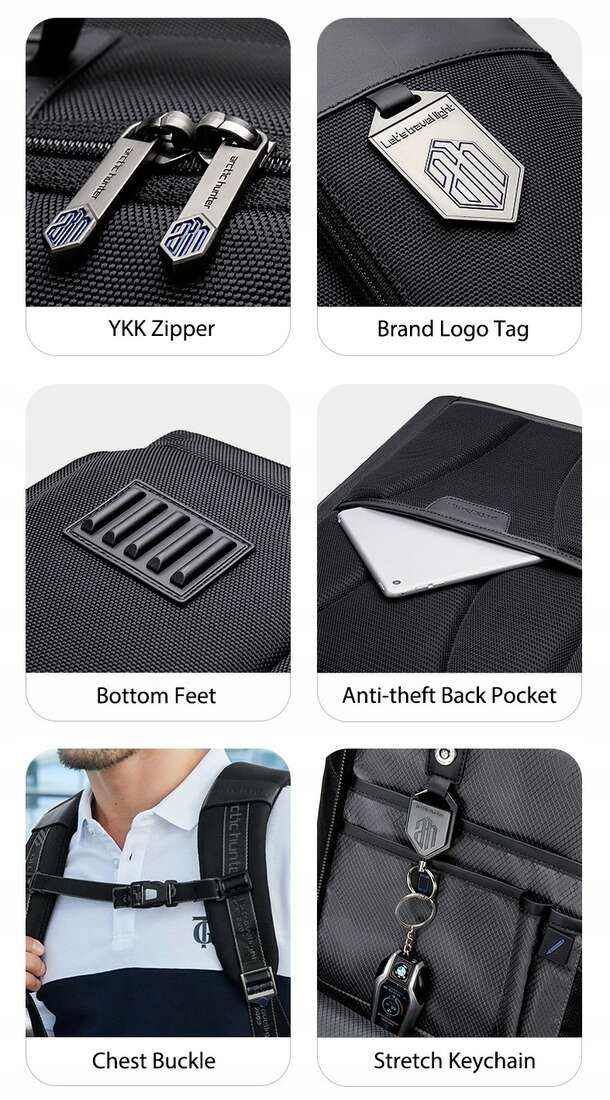 рюкзак оснащений анти -трейдичною системою. Основна камера, в якій буде перенесений ноутбук, може бути захищений від отвору, використовуючи замок, оснащений тризначною цифрою. У замок також є система TSA, завдяки якій замки можна розблокувати та контролювати органами безпеки без пошкоджень аеропорту в аеропорту. Система TSA в зашифрованих замках необхідна під час подорожі до США, Канади, Японії чи Австралії.