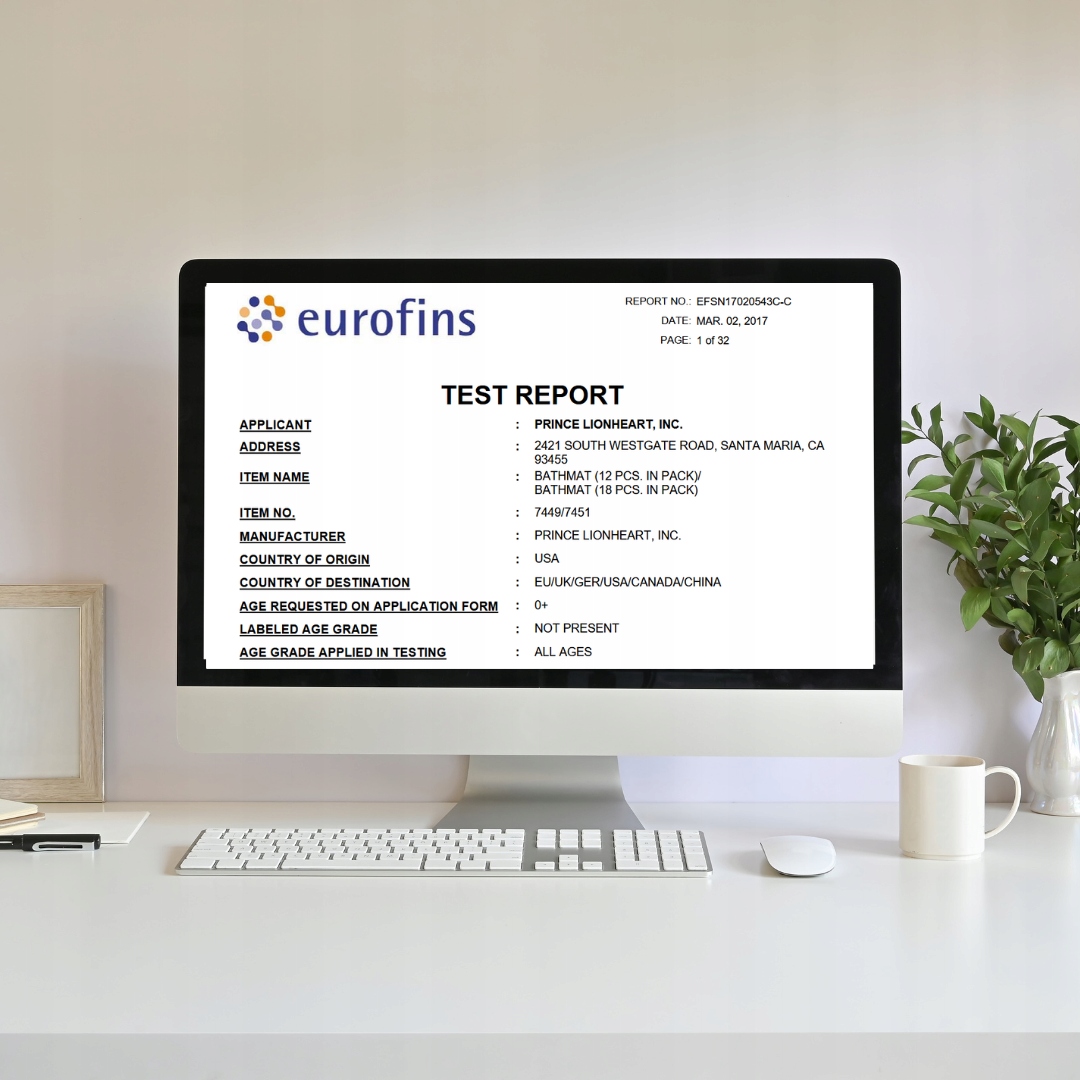 Мат пройшов суворі тести в авторитетній лабораторії Єврофінів, яка підтвердила (номер звіту efsn17020543c-c):