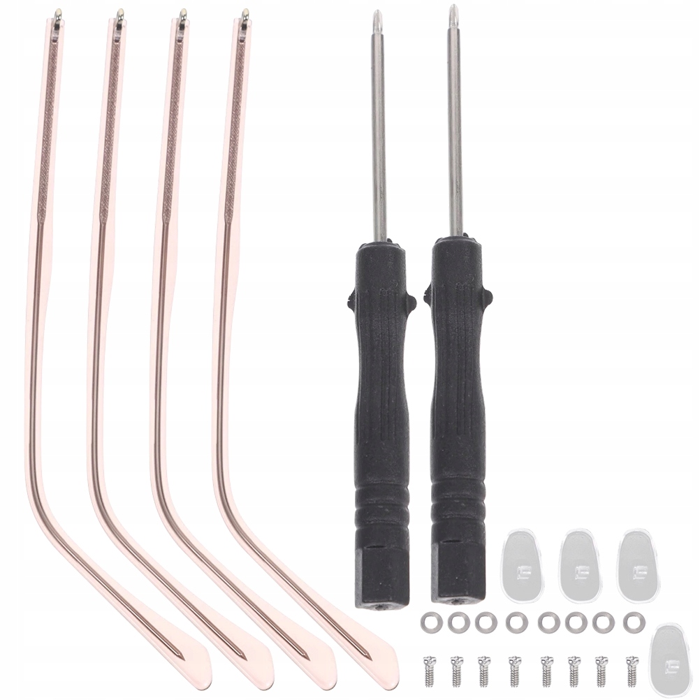 ✅ 2 x ніжки для окулярів, 2 x викрутки, 4 x носові подушечки, 8 x гвинтів, 8 x прокладок