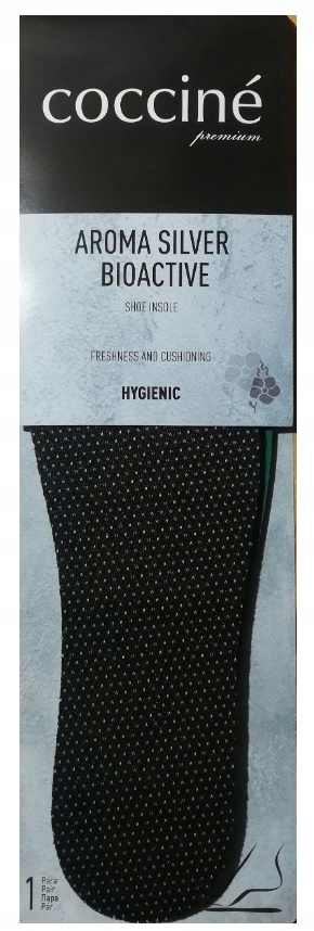 Антибактеріальний та амортизуючий. Антибактеріальна вставка, покрита тканиною, що містить Silver Bioactive, зі стійким хвойним ароматом. Латекс, який використовується як базовий шар, має властивості Shock Absorber, тобто особливу здатність поглинати енергію, що виникає в результаті ударів. Захищає суглоби і кістки, знімає втому. Має освіжаючий ефект. Особливо рекомендується для людей із зайвою вагою, які працюють стоячи, для спортивного взуття та для людей, чиї ноги сильно потіють. Помістіть устілку в черевик стороною, покритою тканиною, до стопи. Silver Bioactive - біоактивна речовина іонів срібла. Срібло пригнічує ріст бактерій, у тому числі штамів, які викликають неприємні запахи. Текстильні матеріали, що містять його, позитивно впливають на підтримку лікування запалень, виразок, ран шкіри та псоріазу. Переваги використання Silver Bioactive в устілках включають збереження свіжості ваших ніг влітку та тепла взимку.