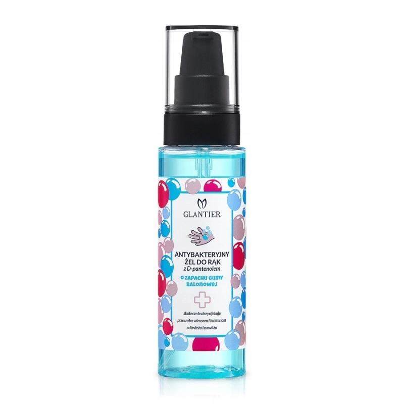 Антибактеріальний гель для рук з d-пантенолом з ароматом жувальної гумки завдяки високій концентрації етилового спирту (70%) ефективно дезінфікує шкіру рук, діючи проти вірусів і бактерій.