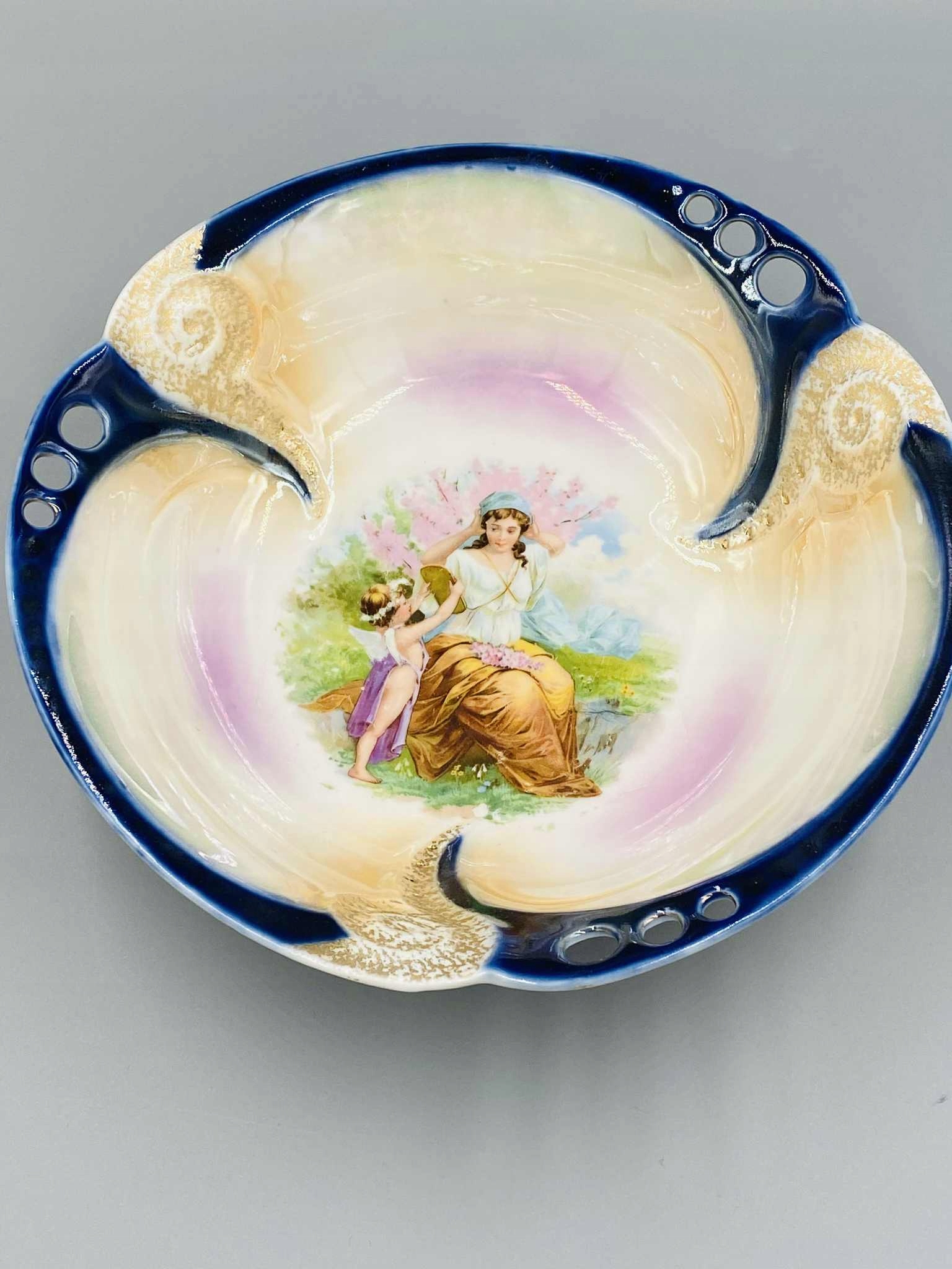 Антична чаша Сцена Ангел Херувим Путті Дзеркало Жінка Перлинні хвилі Завихрення.