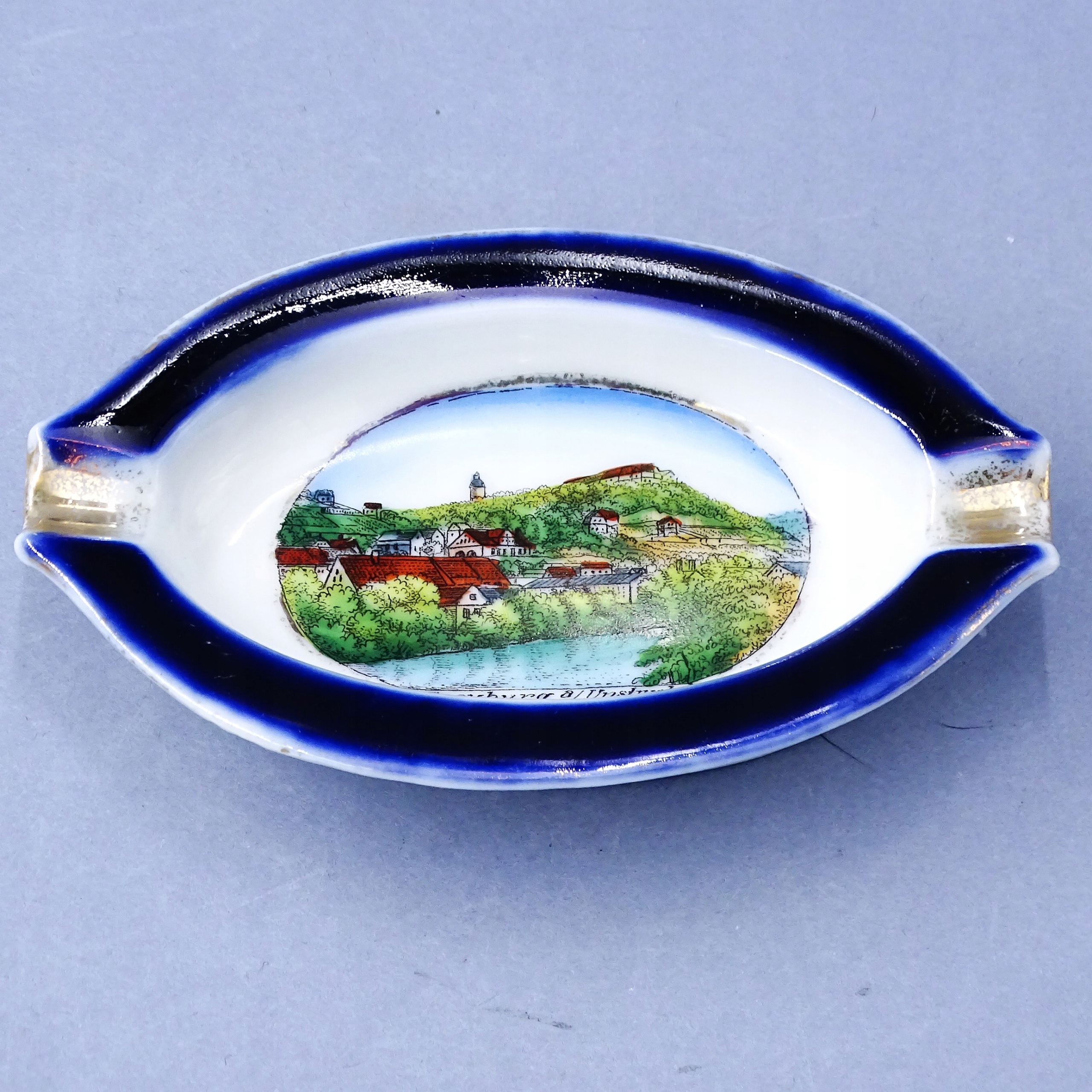 АНТИЧНА ФОРФОРОВА ПОПІЛЬНИЦЯ ВИД НА МІСТО РІЧКОВИЙ ПЕЙЗАЖ