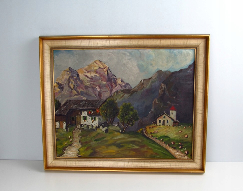 АНТИЧНА КАРТИНА ОЛІЄМ НА ПОЛОТНІ ГІРСЬКА ХАТА