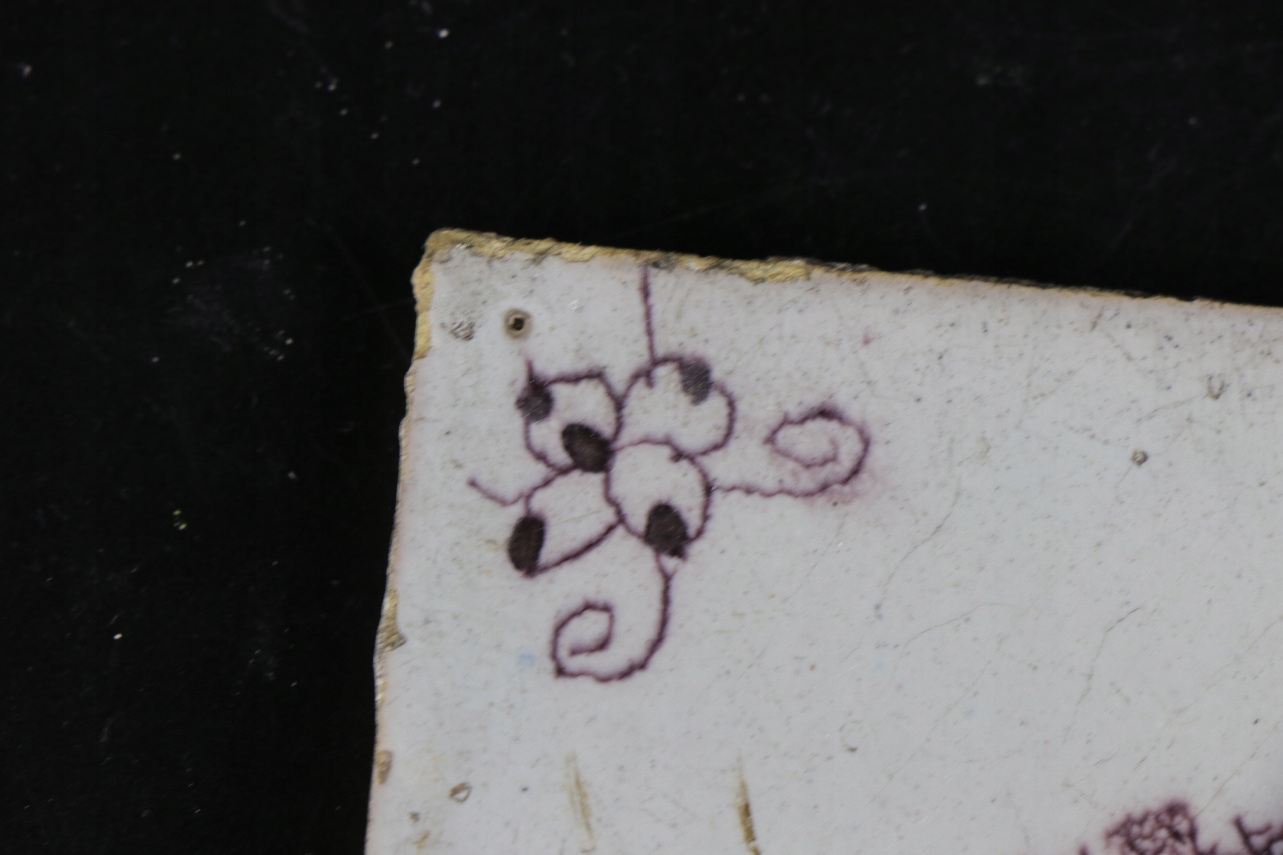 Делфтська марганцева черепиця з ручним розписом. Орнамент на кахлі намальований марганцевими фарбами. Я пропоную інші подібні плитки на іншому аукціоні.
