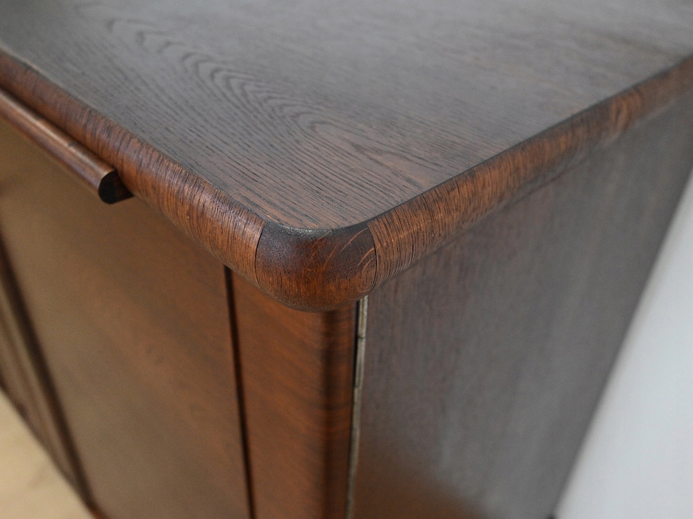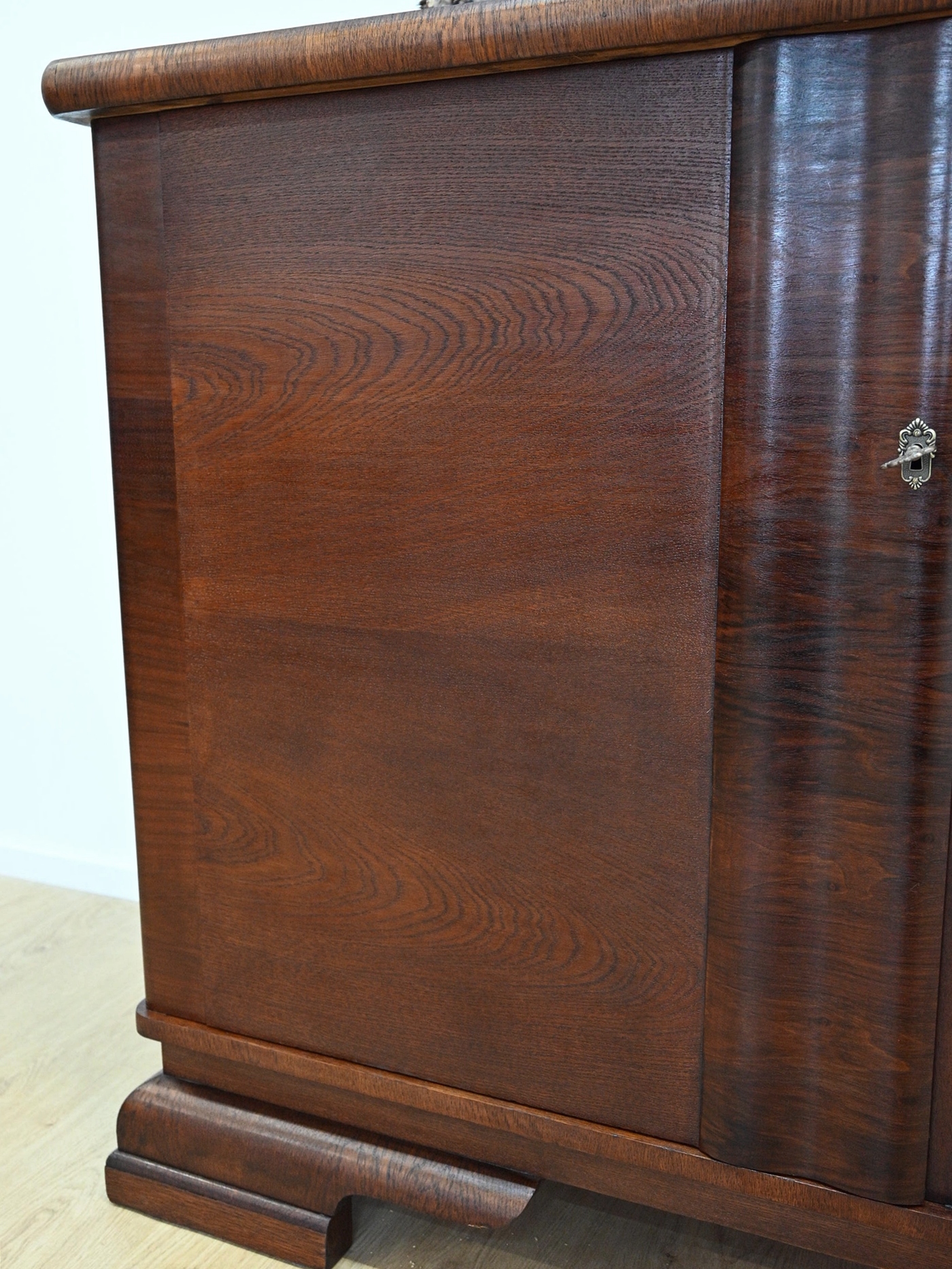 Дуже хороший стан. Меблі, підготовлені до використання. Зовнішні поверхні та центр меблів були оновлені. Меблі вже мають свої роки та сліди минулого часу, що не впливає на його естетичний прийом, вони є свідченням справжності меблів. Брудену скриню можна відразу помістити в квартиру.