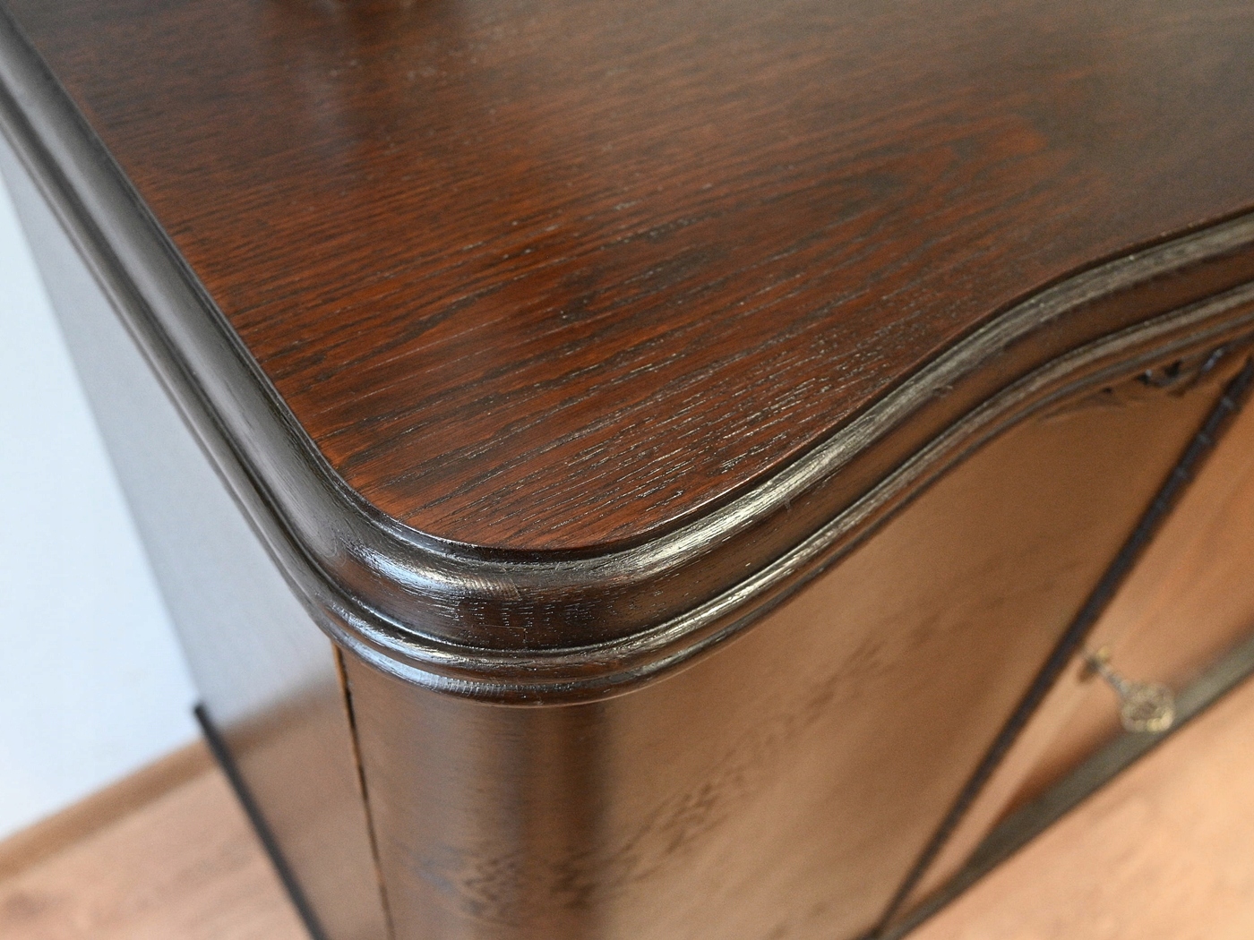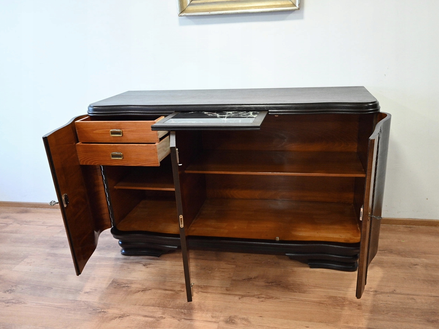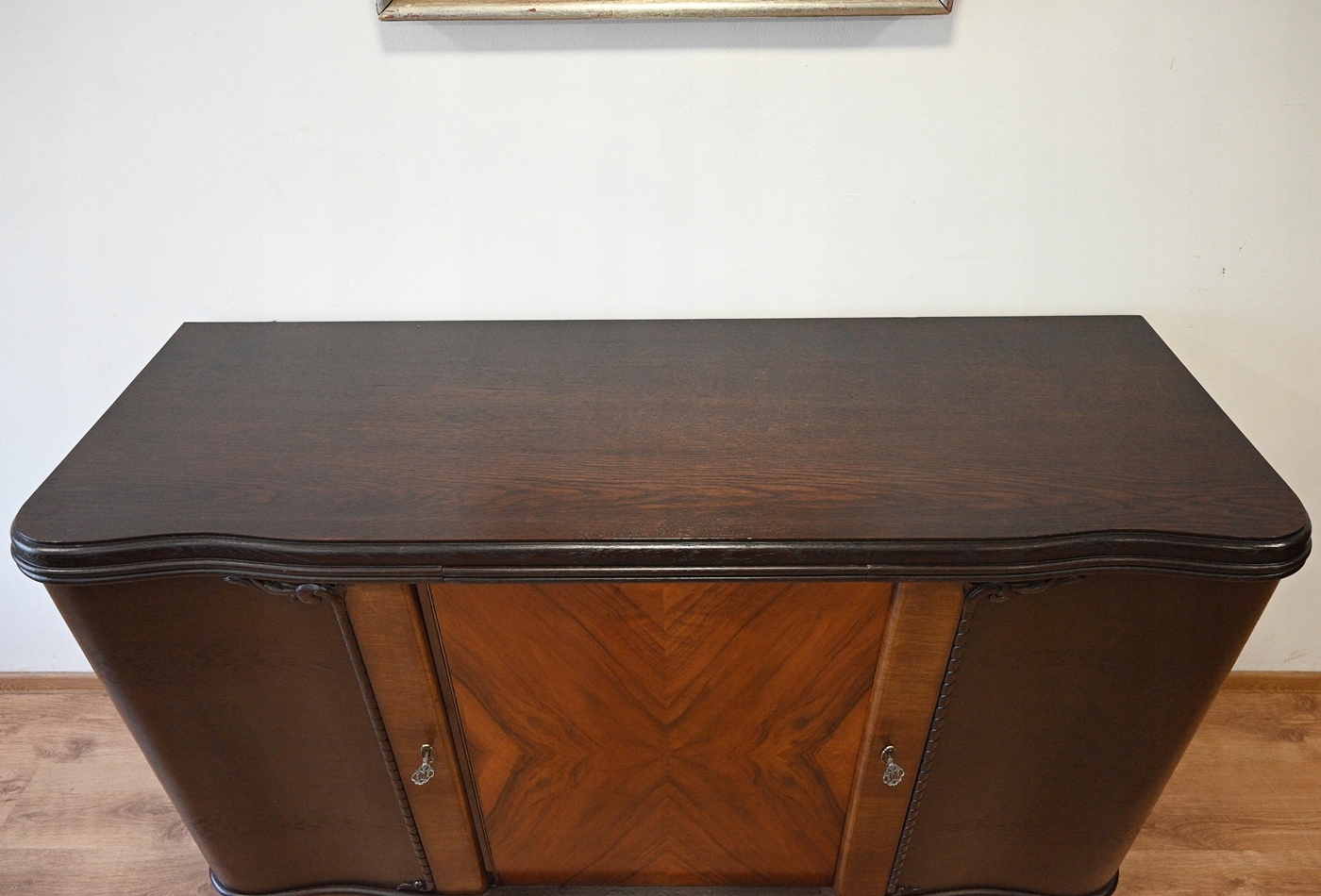 Дуже хороший стан. Меблі, підготовлені до використання. Зовнішні поверхні та центр меблів були оновлені. Меблі вже мають свої роки та сліди минулого часу, що не впливає на його естетичний прийом, вони є свідченням справжності меблів. Брудену скриню можна відразу помістити в квартиру.