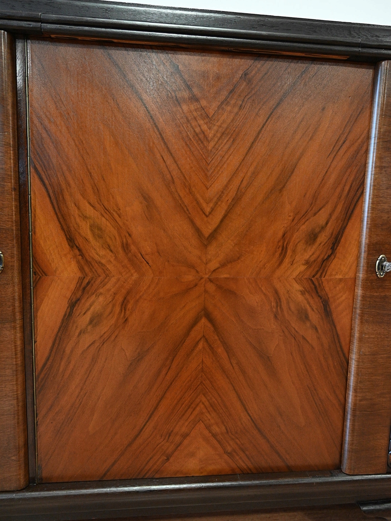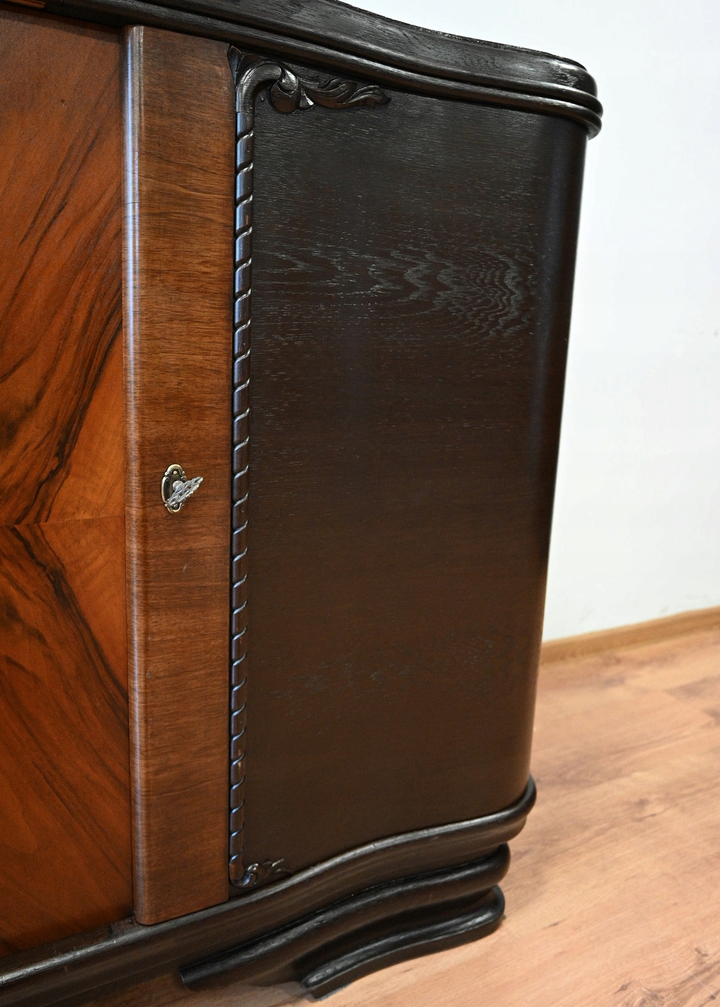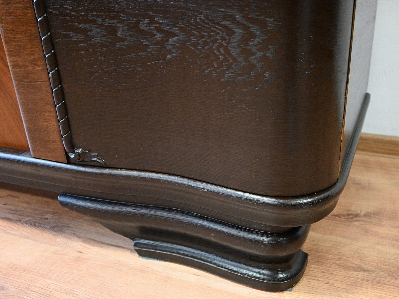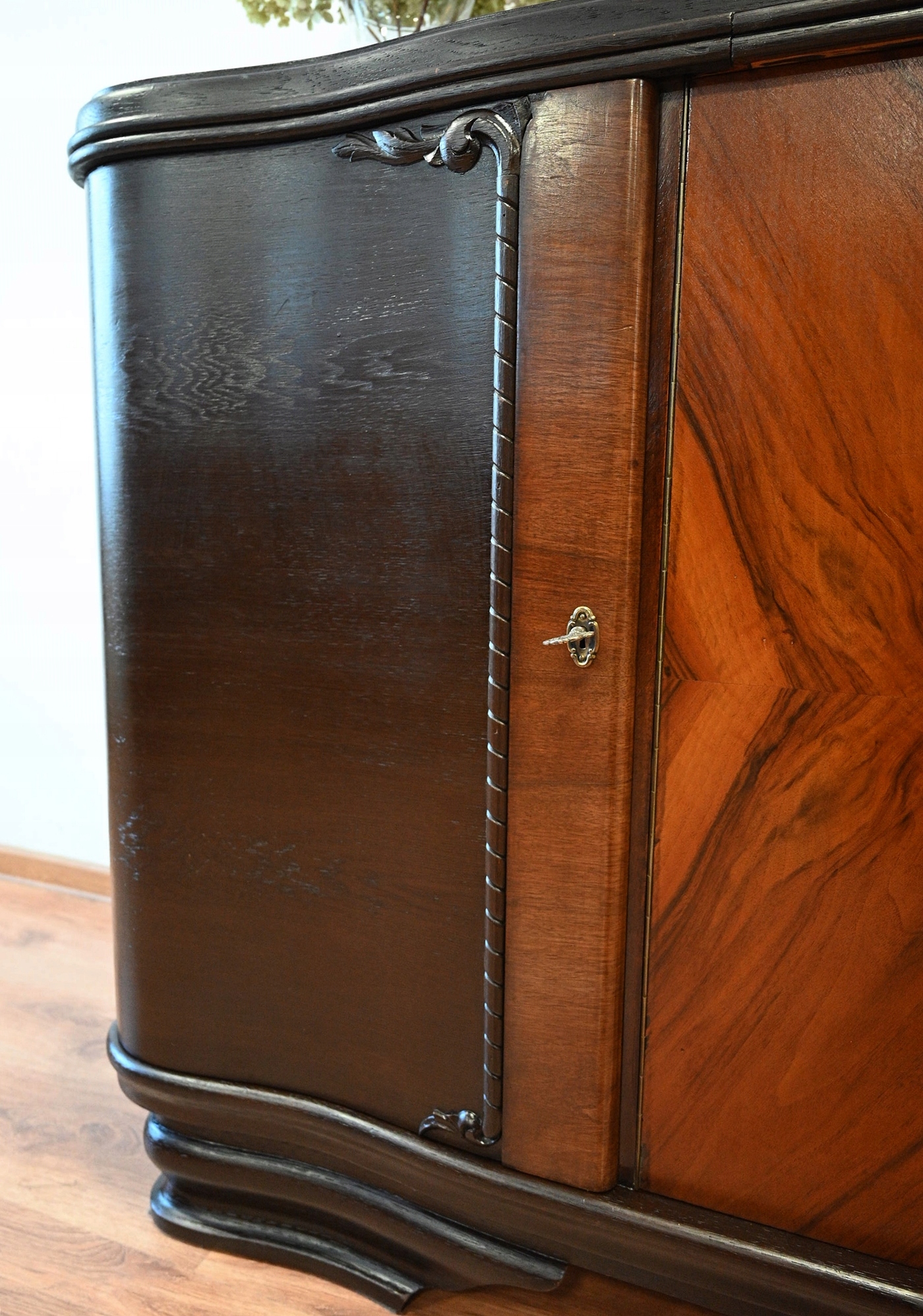 Дуже хороший стан. Меблі, підготовлені до використання. Зовнішні поверхні та центр меблів були оновлені. Меблі вже мають свої роки та сліди минулого часу, що не впливає на його естетичний прийом, вони є свідченням справжності меблів. Брудену скриню можна відразу помістити в квартиру.