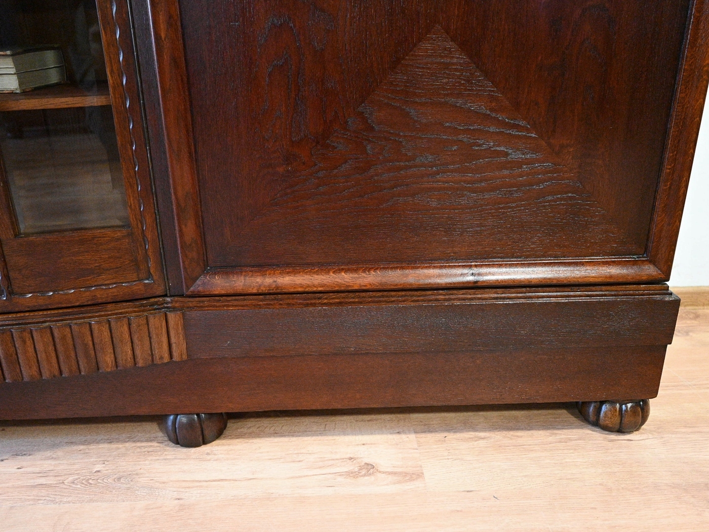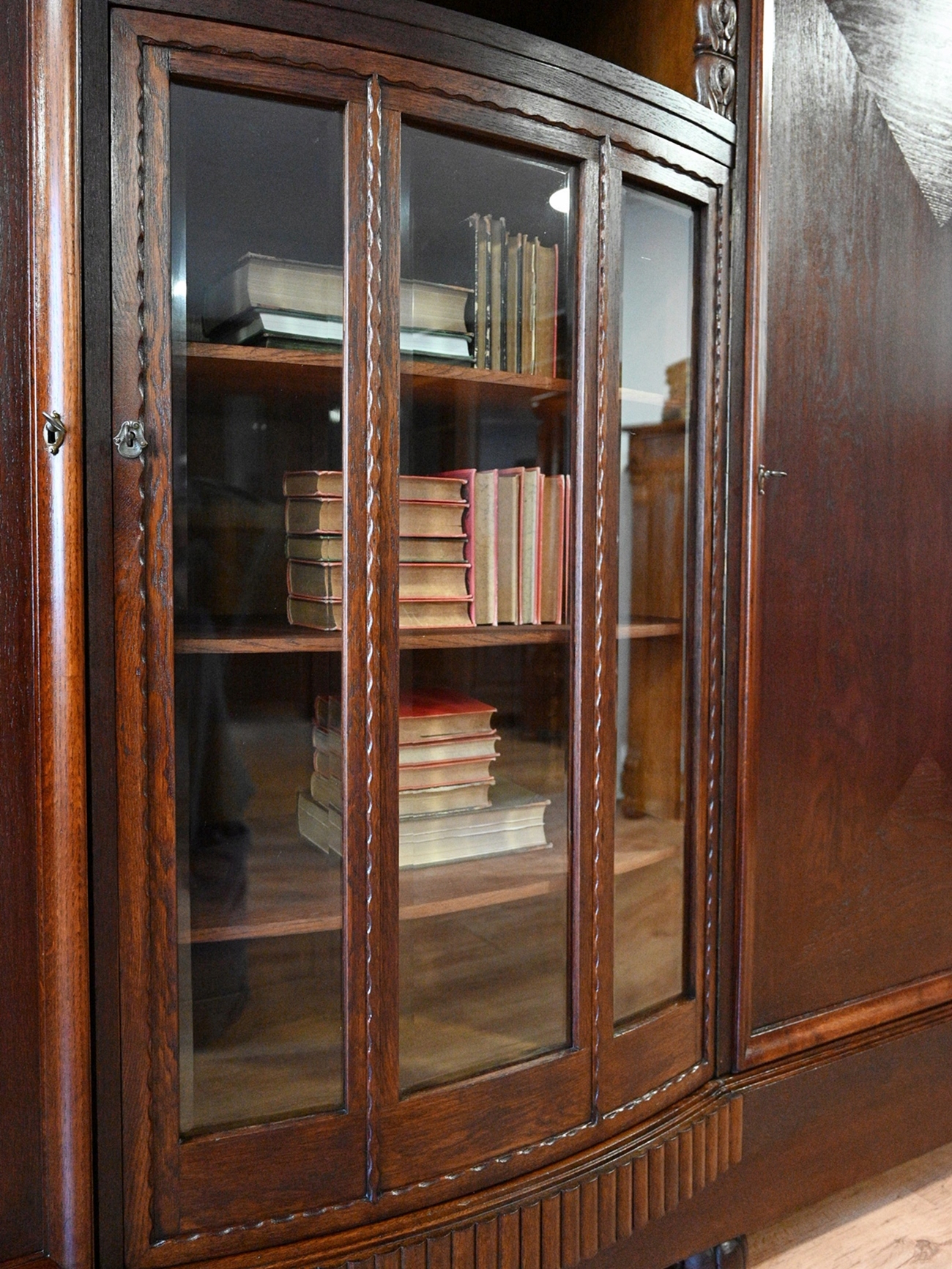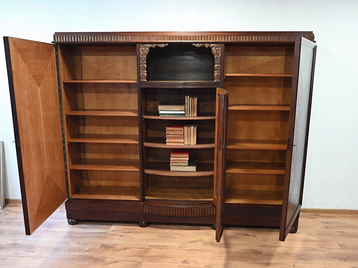 Меблі надходять з міжвоєнних років. Меблі, підготовлені до використання. Зовнішні поверхні та центр меблів були оновлені. Меблі вже мають свої роки та сліди минулого часу, що не впливає на його естетичний прийом, вони є свідченням справжності меблів. Бібліотеку можна негайно поставити в квартиру. Оригінальні фурнітури. Запитайте та визначте можливість та деталі нашого транспорту - можливість ще дешевшого групового транспорту. ВПРАВЛЕННЯ ВПРАВЛЕННЯ. Варіант завантаження.