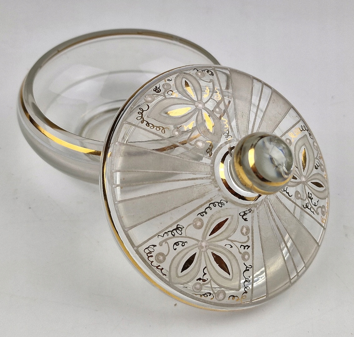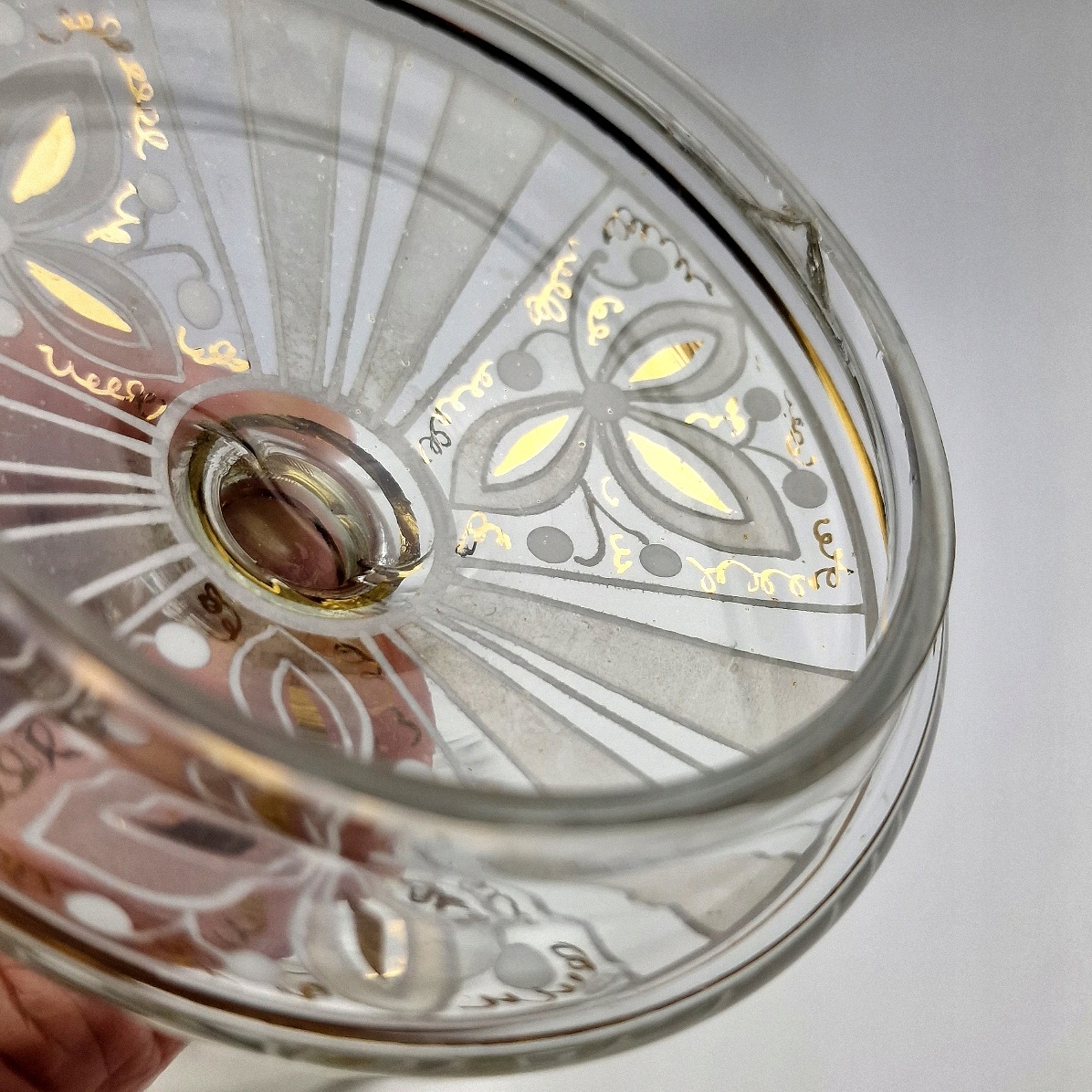 АНТИЧНА СКЛЯНА ЦУКЕРНИЦЯ ЧЕХОСЛОВАЧЧИНА ВИНТАЖ РОЗПИСАНА РУЧНО