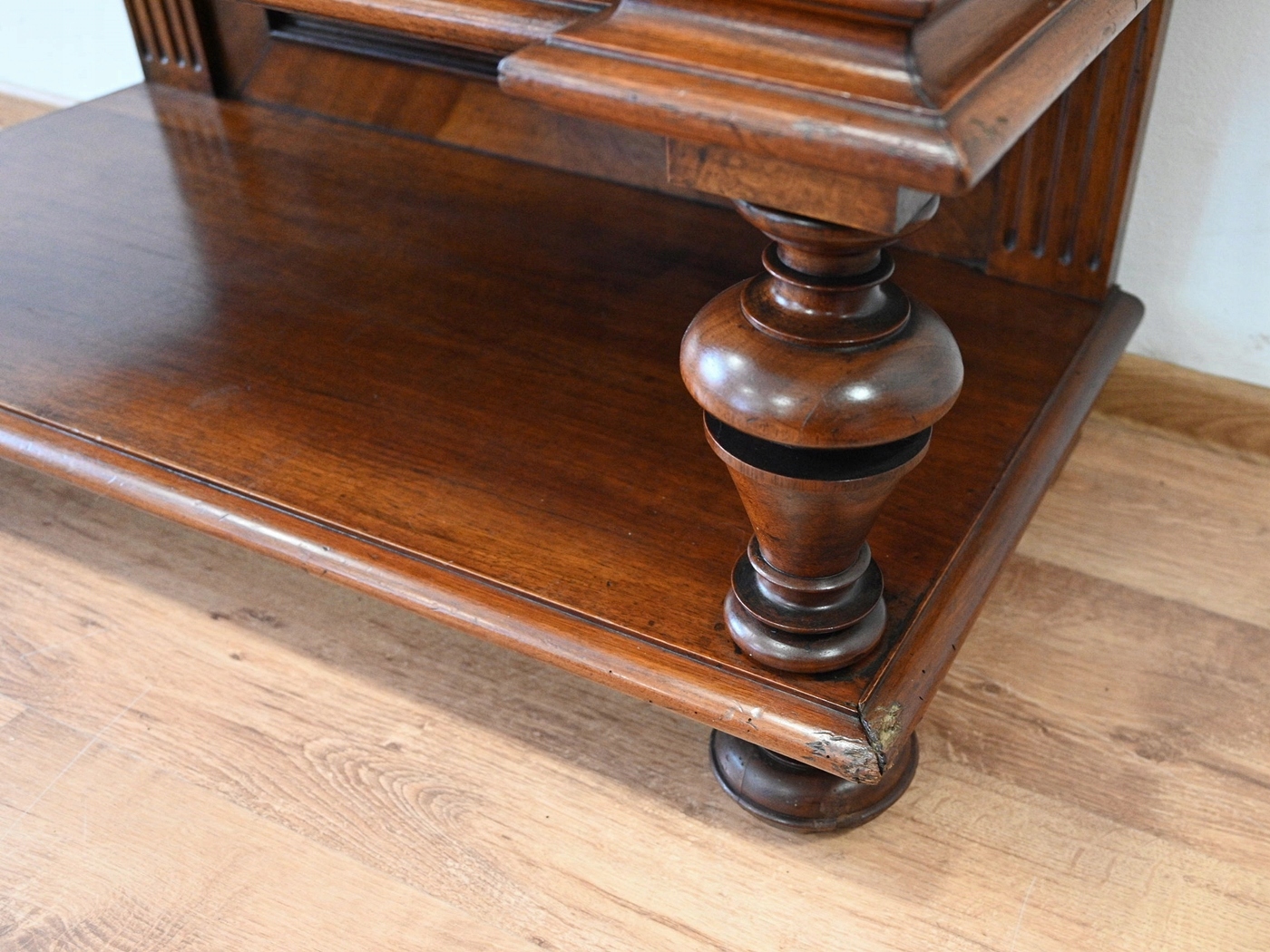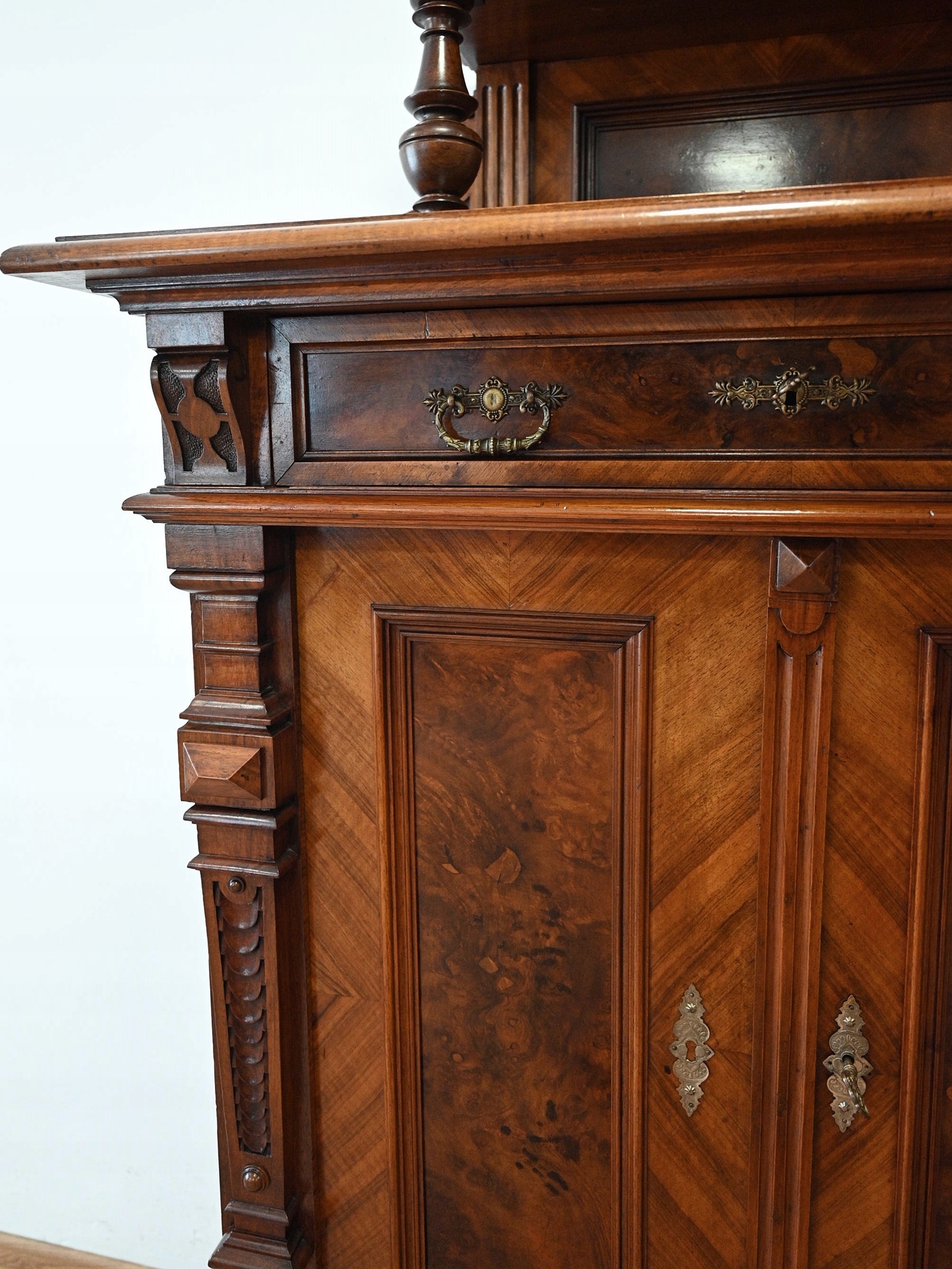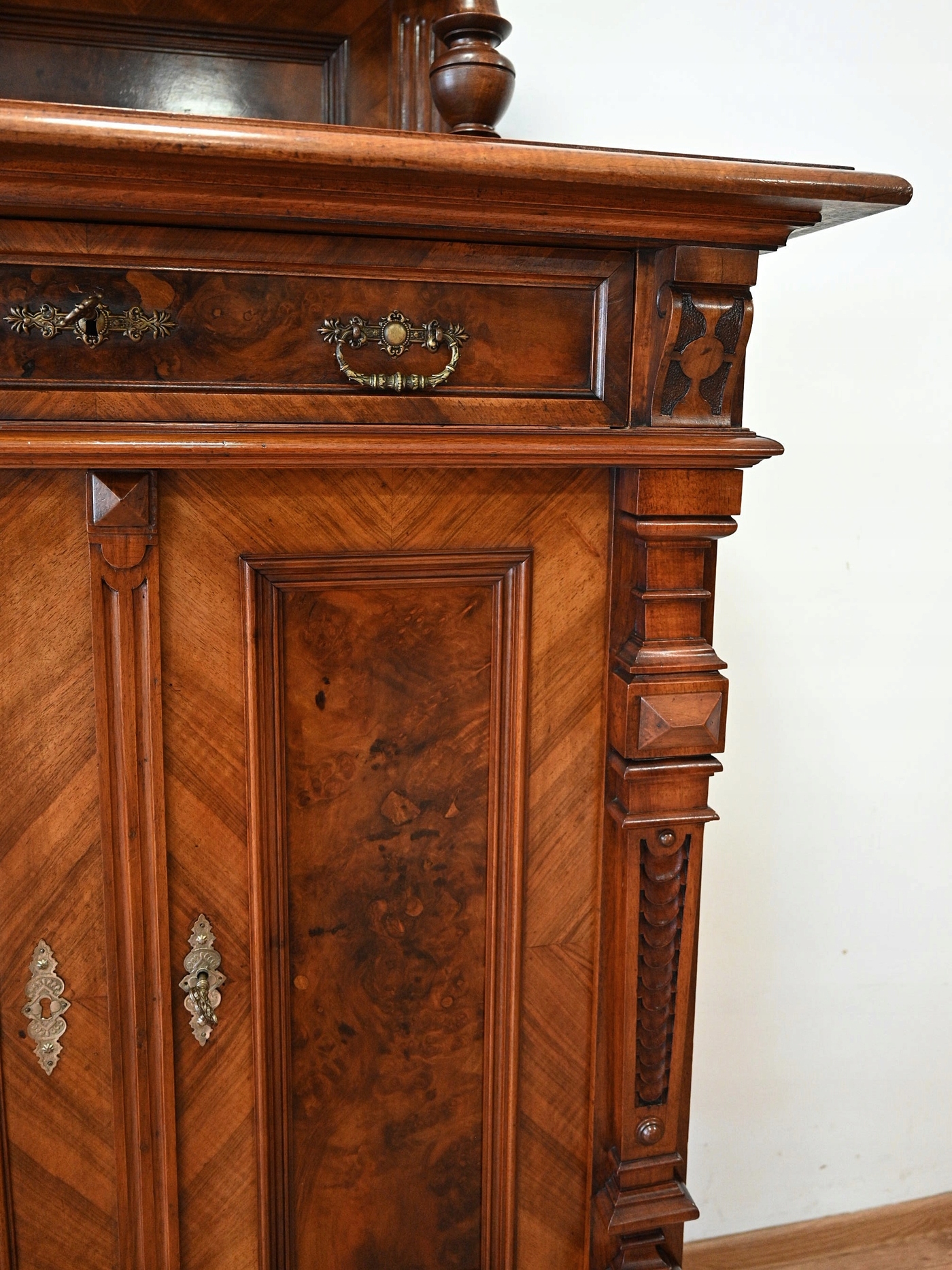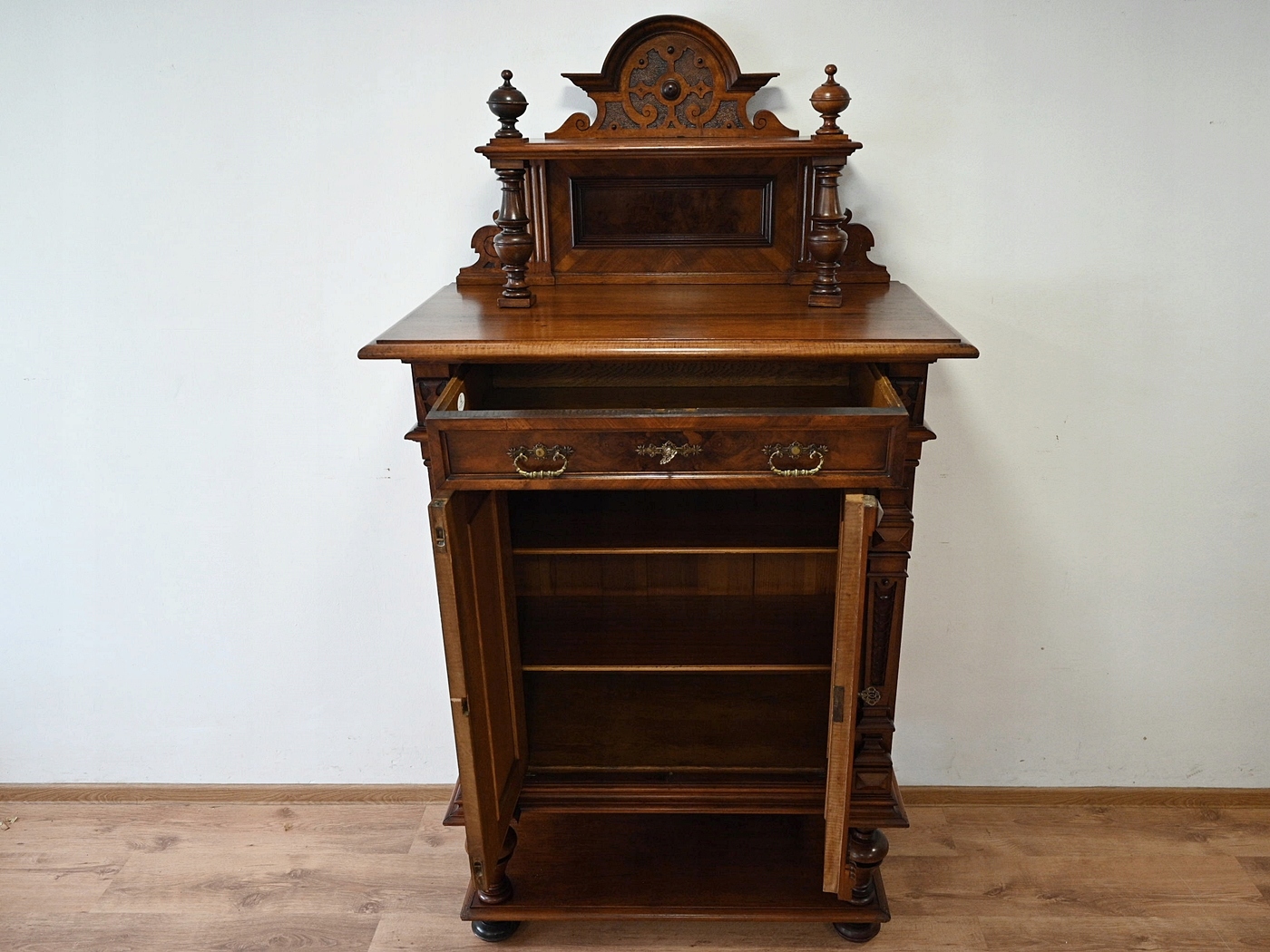 Дуже хороший стан. Меблі, підготовлені до використання. Зовнішні поверхні та центр меблів були оновлені. Меблі вже мають свої роки та сліди минулого часу, що не впливає на його естетичний прийом, вони є свідченням справжності меблів. Кабінет може бути поміщений у квартиру відразу.