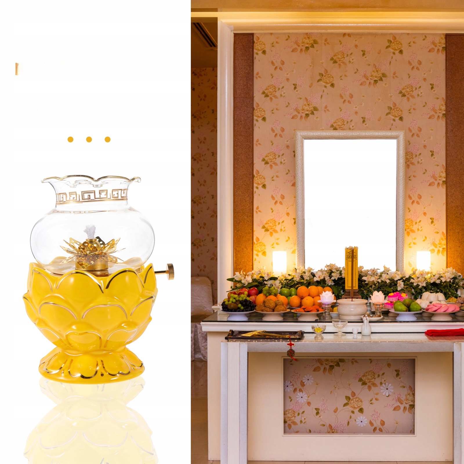 ✅Лампа лотоса розміщується на столі Будди, який можна використовувати під час поклоніння Будді.