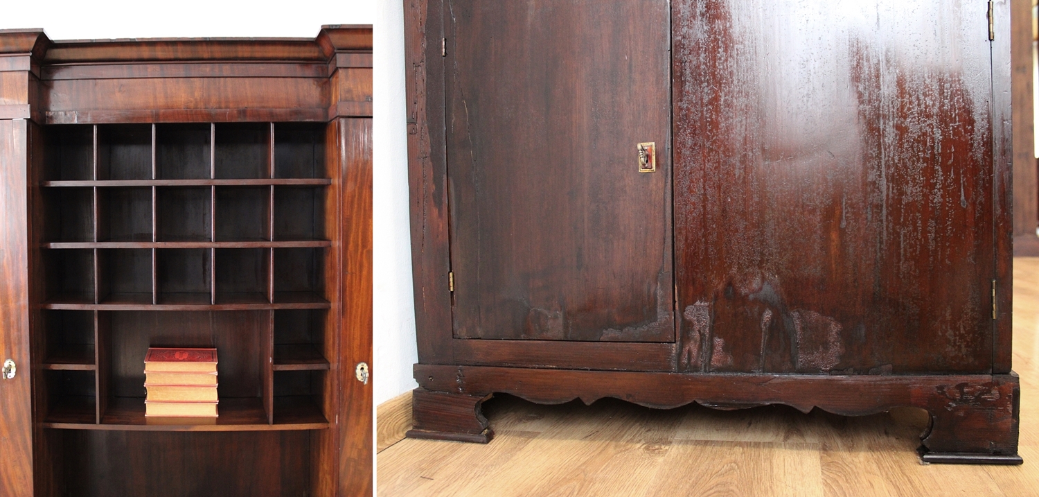 повністю виготовляється з дерева, шпонованого з Махоном. Можливий ремонт.