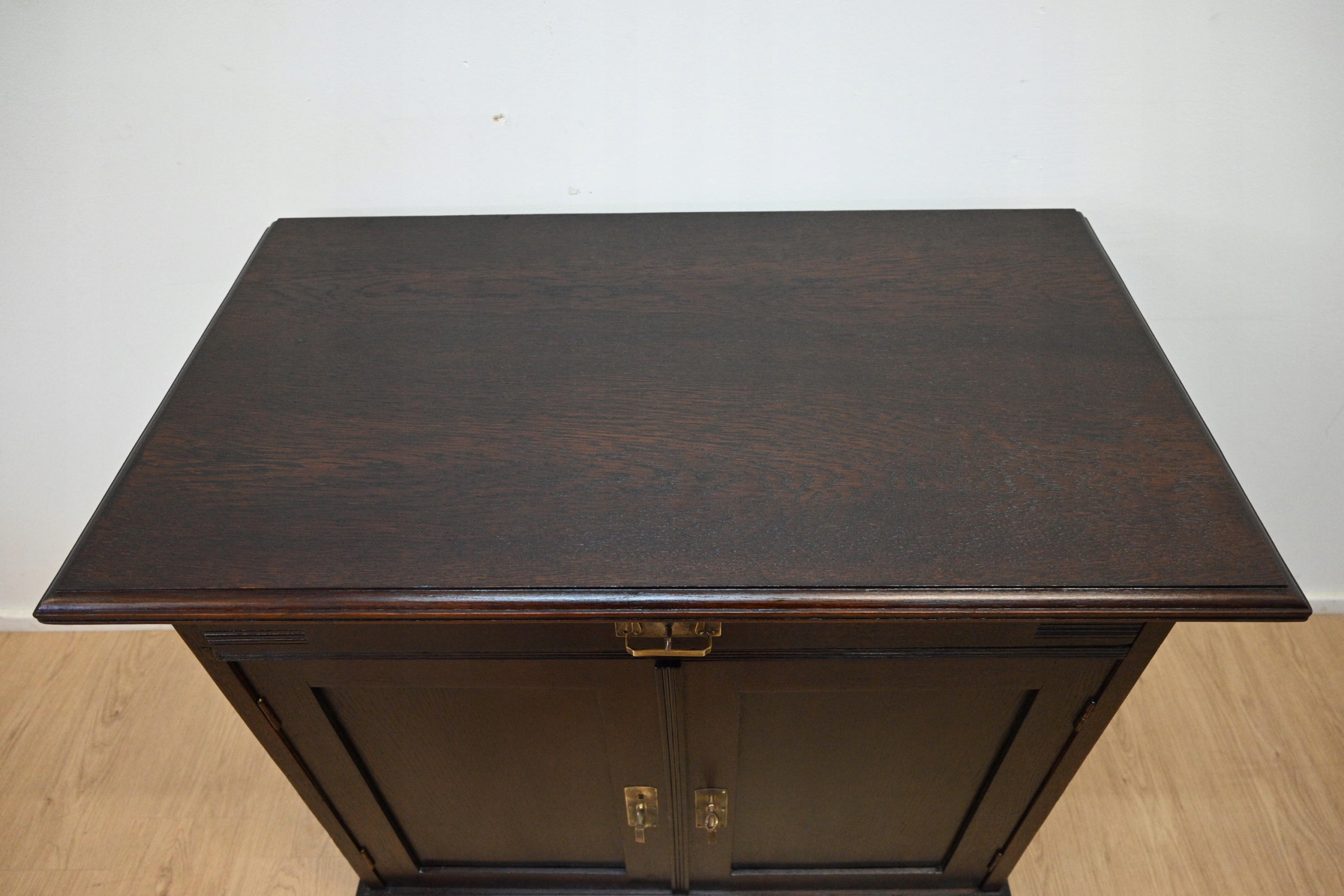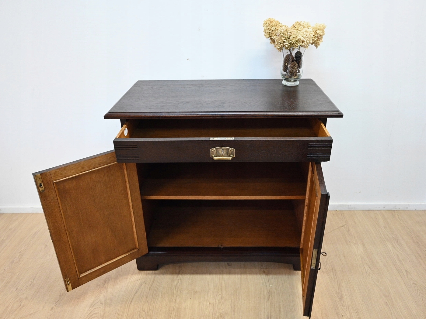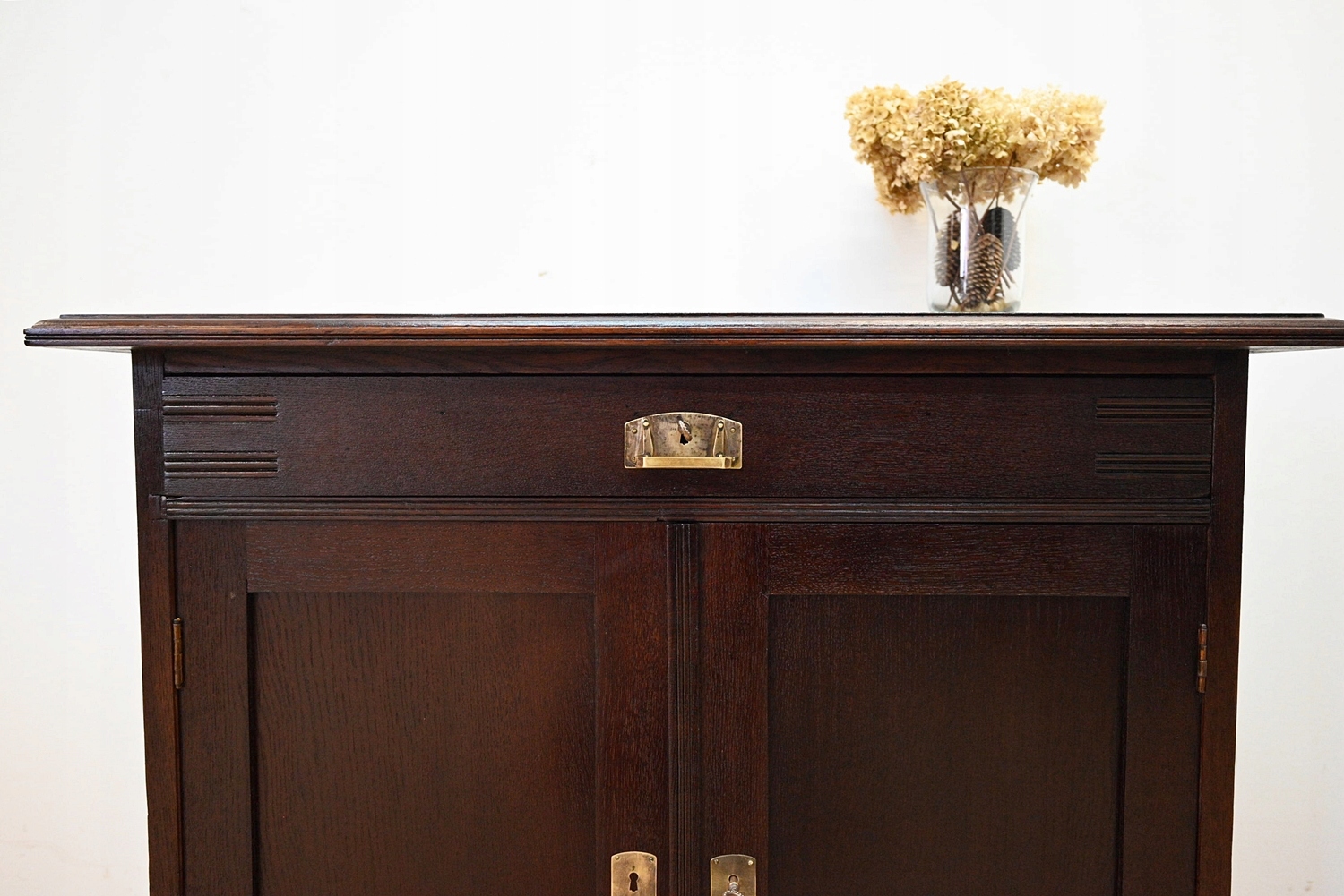Дуже хороший стан. Меблі, підготовлені до використання. Зовнішні поверхні та центр меблів були оновлені. Меблі вже мають свої роки та сліди минулого часу, що не впливає на його естетичний прийом, вони є свідченням справжності меблів. Брудену скриню можна негайно поставити в квартиру.