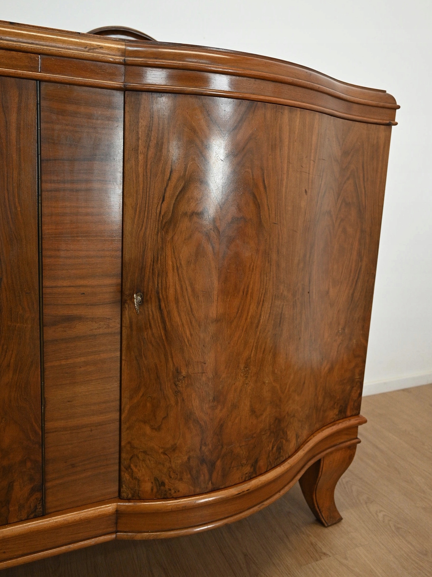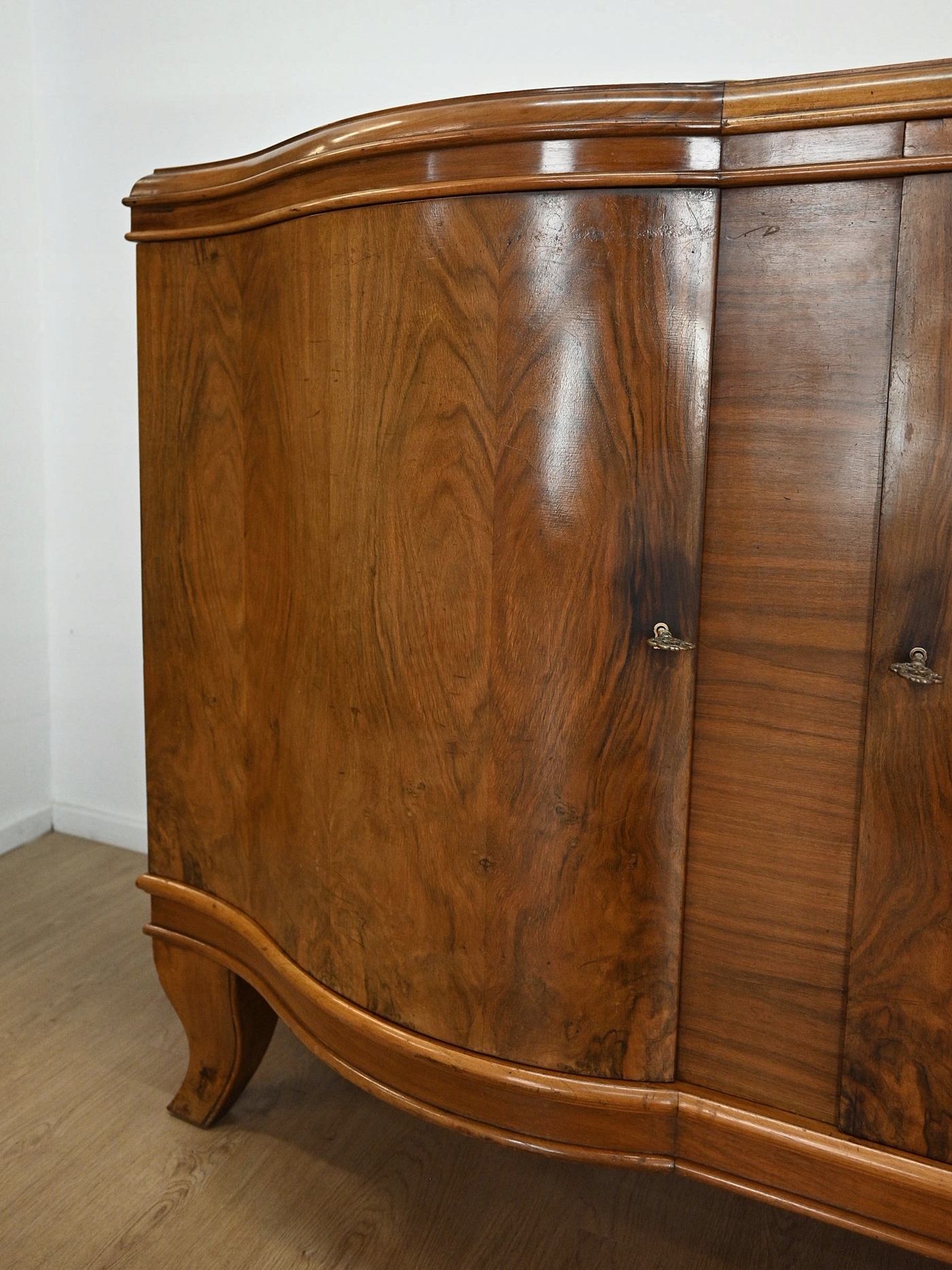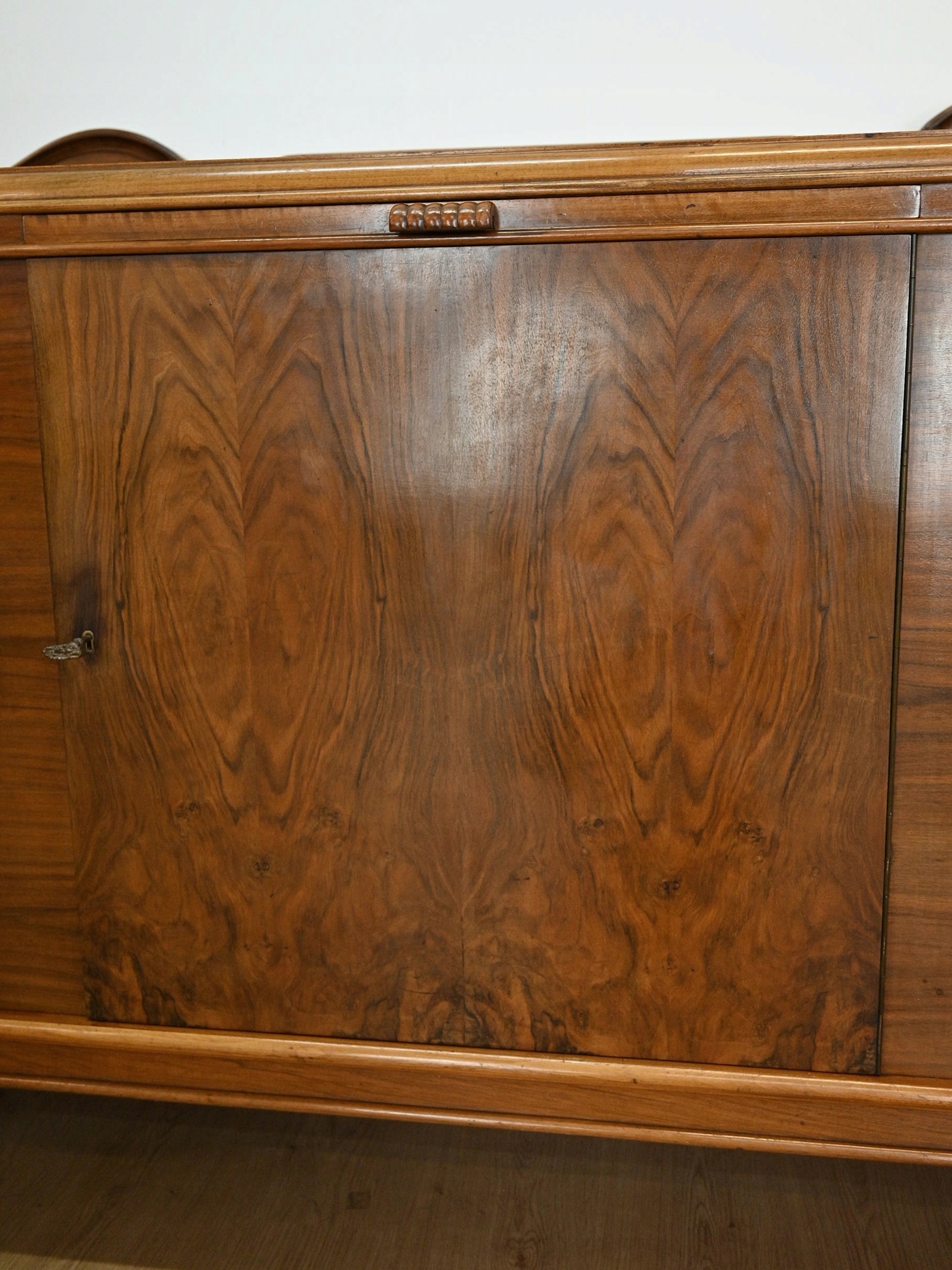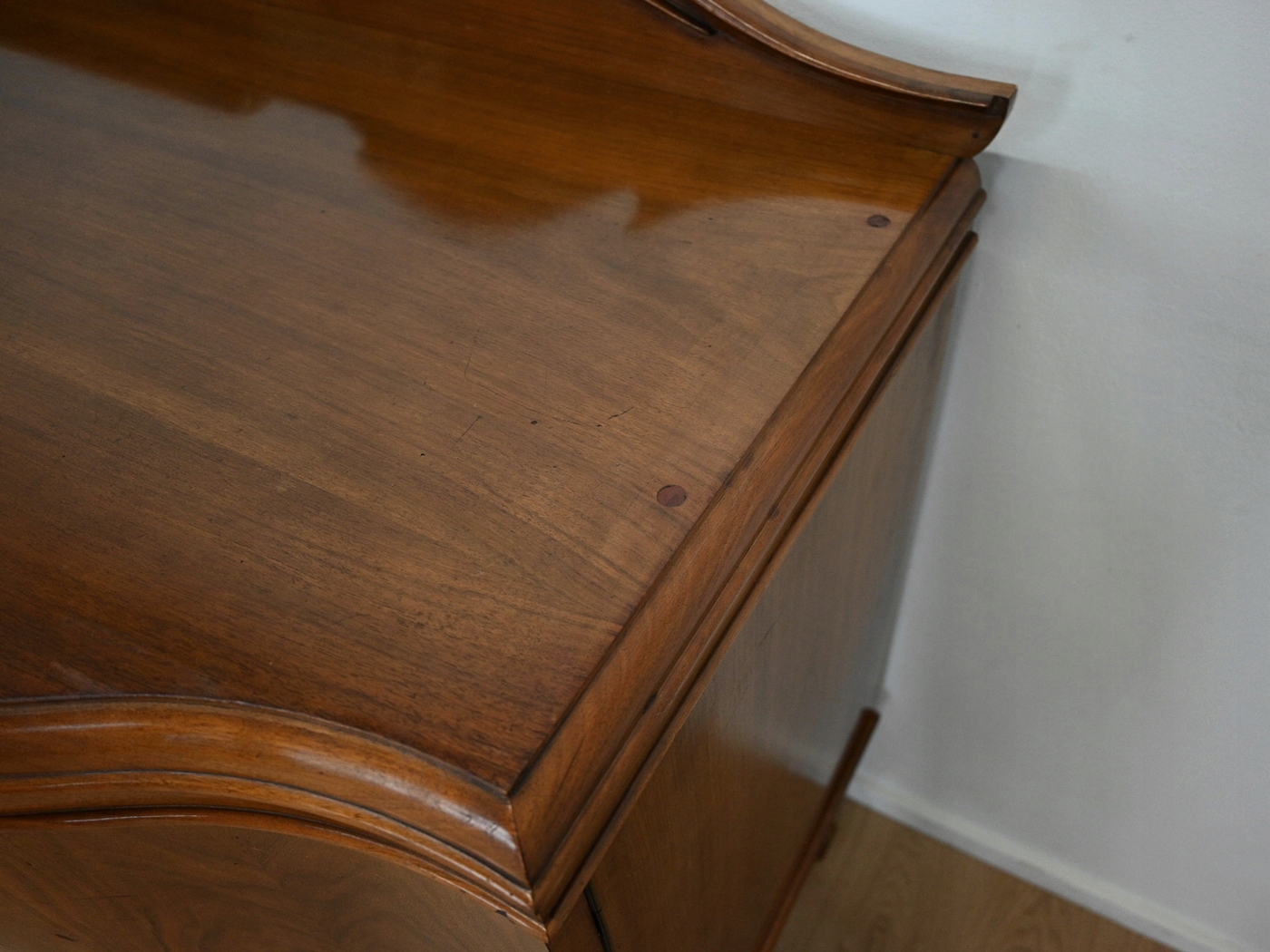 Античні меблі Довгий яскравий горіховий комод близько 1940 року