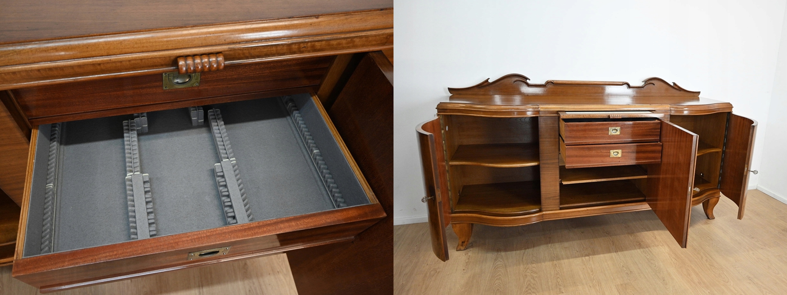 хороший стан. Меблі, підготовлені до використання. Зовнішні поверхні та центр меблів були оновлені. Меблі вже мають свої роки та сліди минулого часу, що не впливає на його естетичний прийом, вони є свідченням справжності меблів. Комод можна відразу помістити в квартиру.
