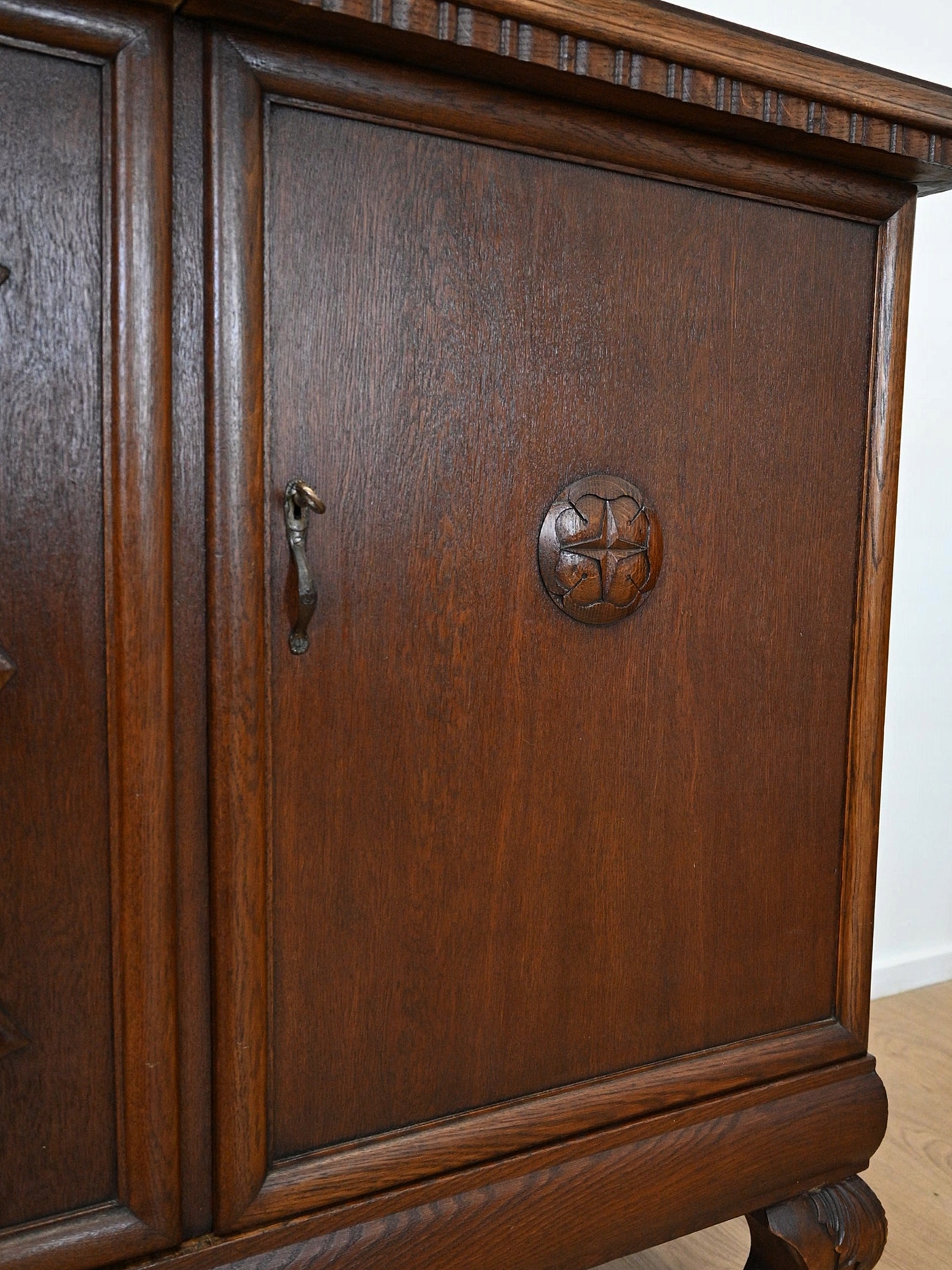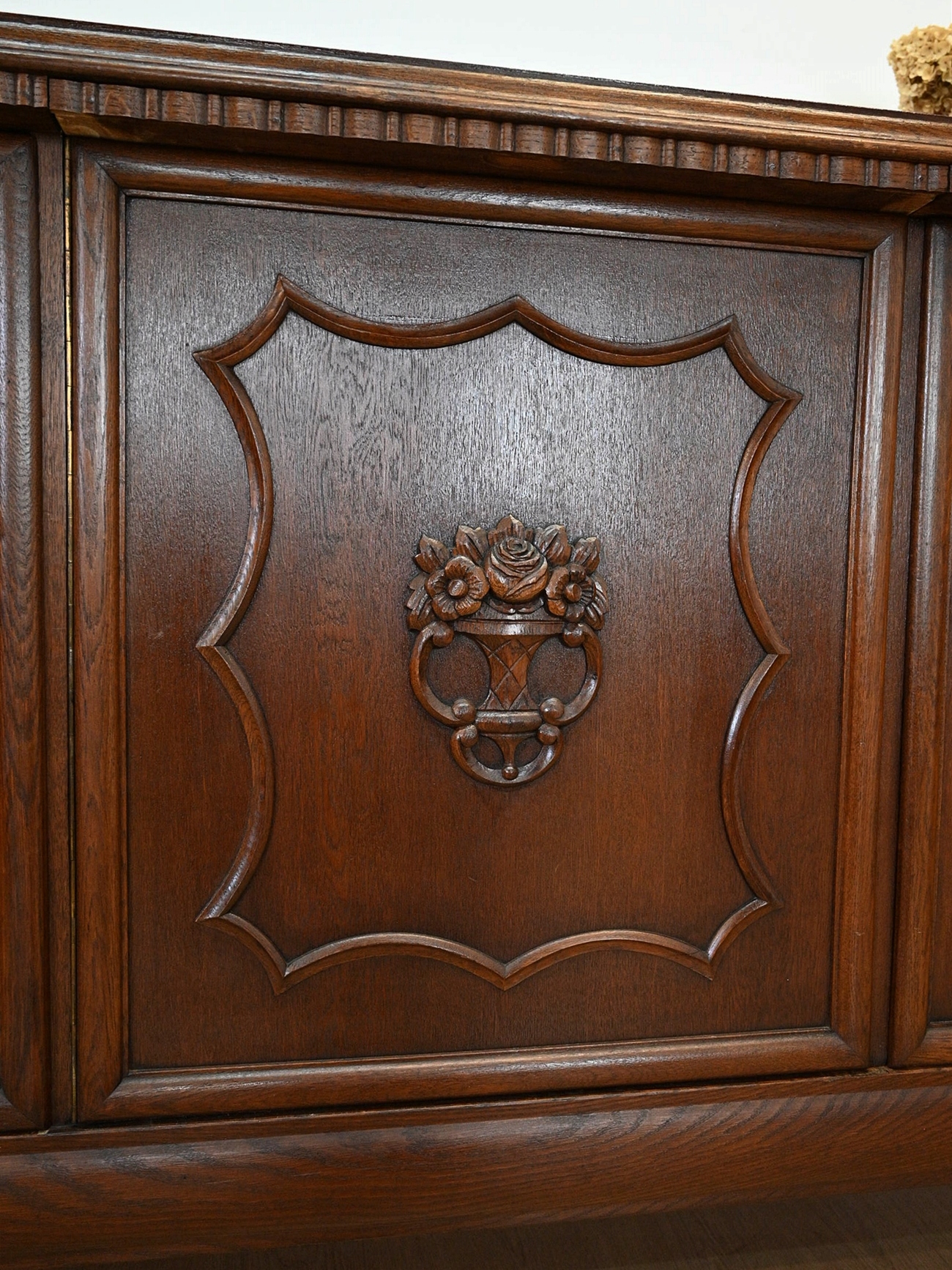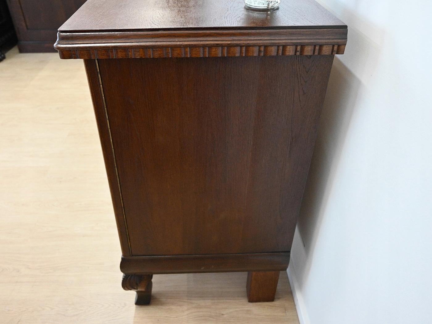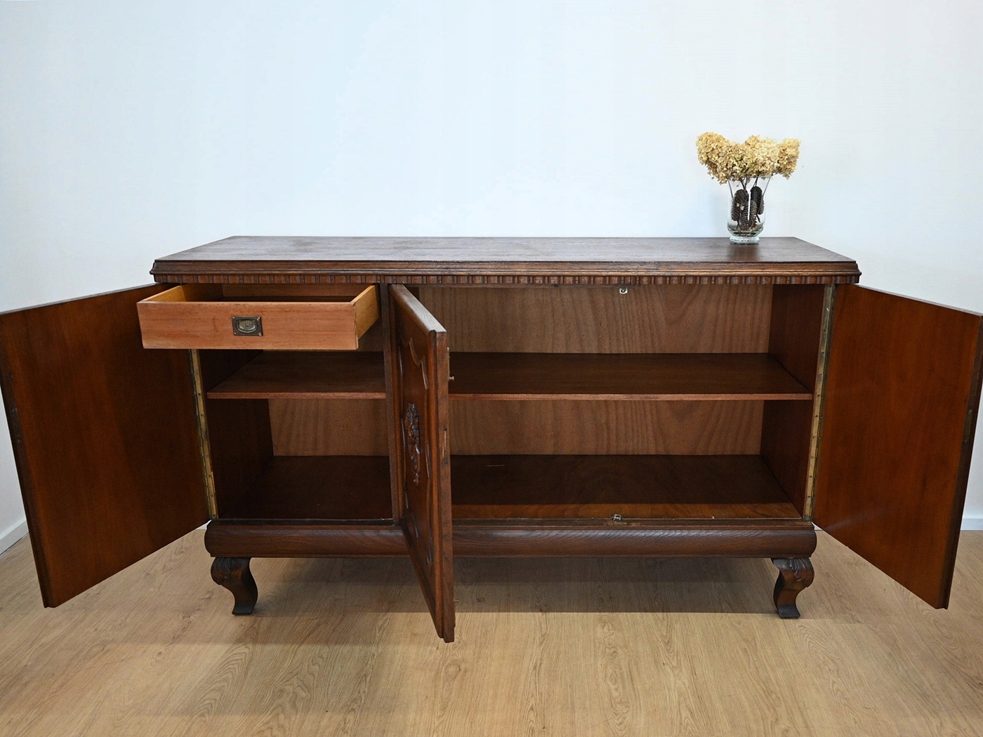 Дуже хороший стан. Меблі, підготовлені до використання. Зовнішні поверхні та центр меблів були оновлені. Меблі вже мають свої роки та сліди минулого часу, що не впливає на його естетичний прийом, вони є свідченням справжності меблів. Брудену скриню можна негайно поставити в квартиру.
