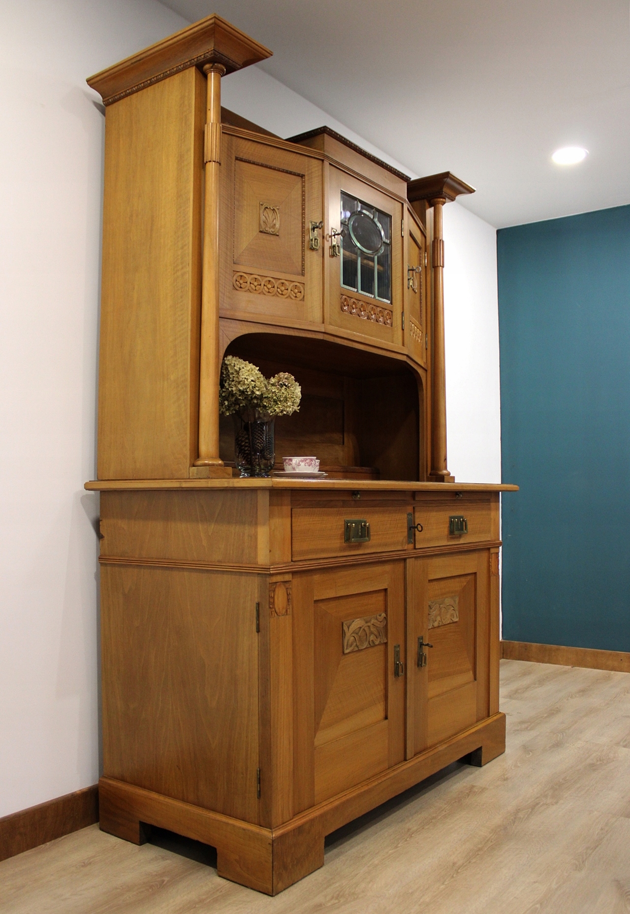 Дуже хороший стан. Меблі, підготовлені до використання. Зовнішні поверхні та центр меблів були оновлені. Меблі вже мають свої роки та сліди минулого часу, що не впливає на його естетичний прийом, вони є свідченням справжності меблів. Соборд можна негайно поставити в квартиру.