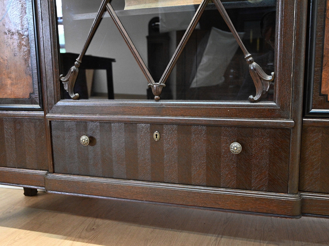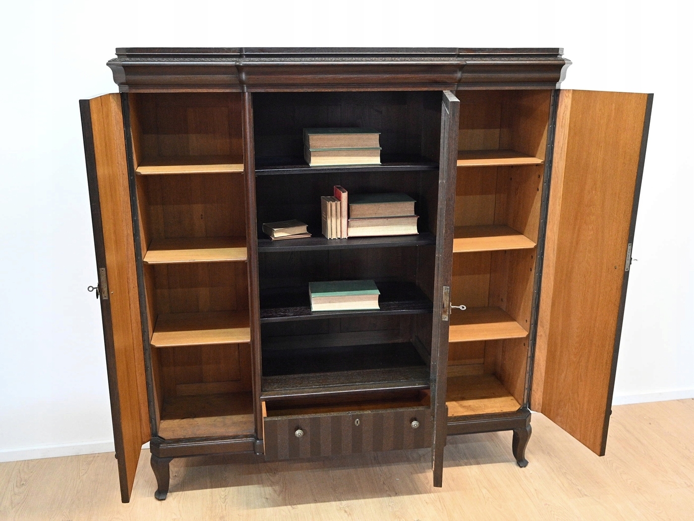 хороший стан. Меблі, підготовлені до використання. Зовнішні поверхні та центр меблів були оновлені. Меблі вже мають свої роки та сліди минулого часу, що не впливає на його естетичний прийом, вони є свідченням справжності меблів. Бібліотеку можна відразу поставити в квартиру.