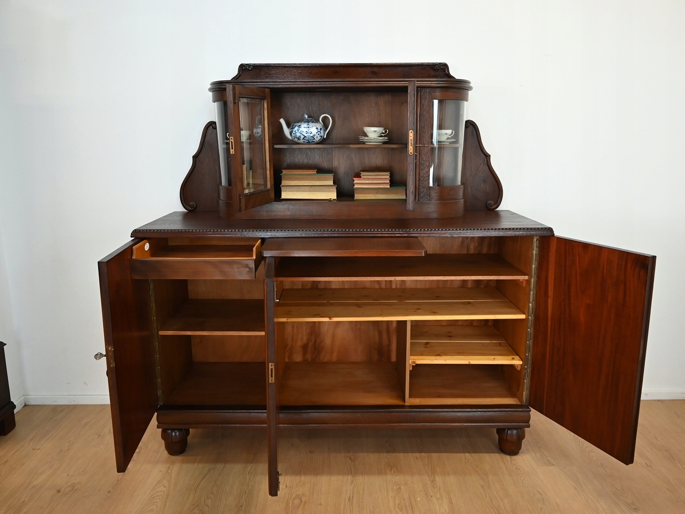 Дуже хороший стан. Меблі, підготовлені до використання. Зовнішні поверхні та центр меблів були оновлені. Меблі вже мають свої роки та сліди минулого часу, що не впливає на його естетичний прийом, вони є свідченням справжності меблів. Сіду можна негайно поставити в квартиру.