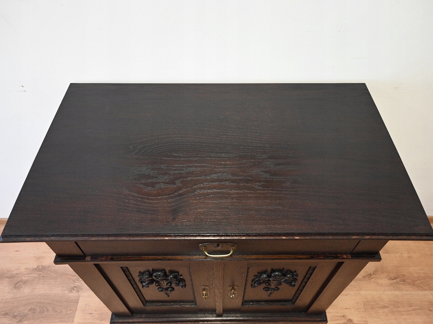 Дуже хороший стан. Меблі, підготовлені до використання. Зовнішні поверхні та центр меблів були оновлені. Меблі вже мають свої роки та сліди минулого часу, що не впливає на його естетичний прийом, вони є свідченням справжності меблів. Скрид негайно можна негайно поставити в квартиру.