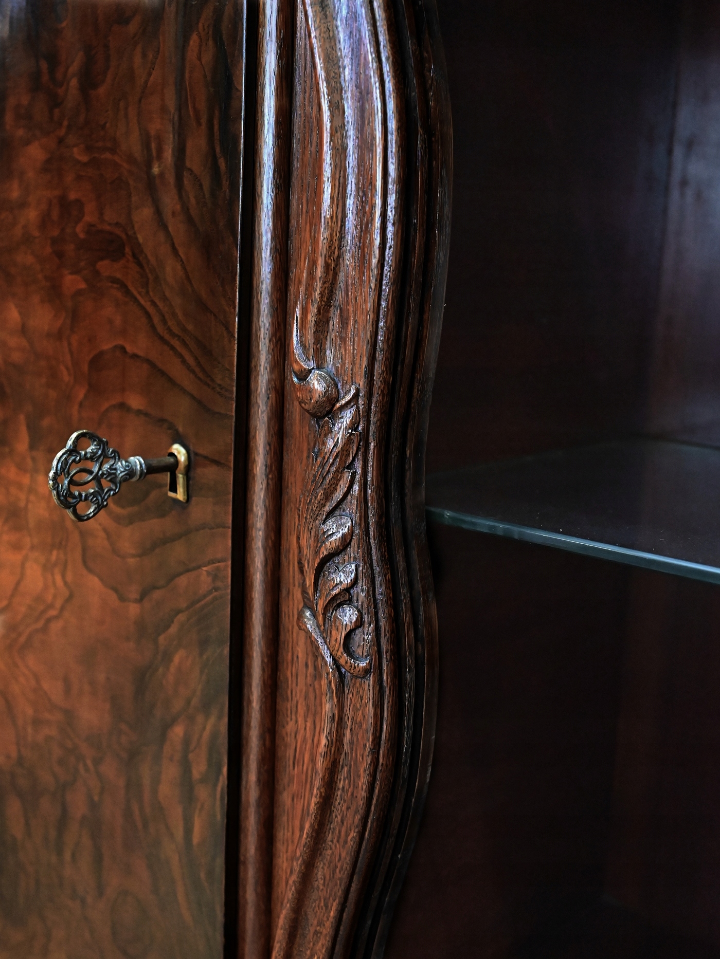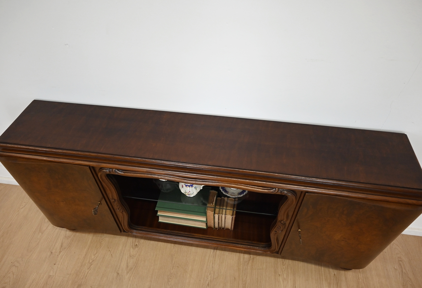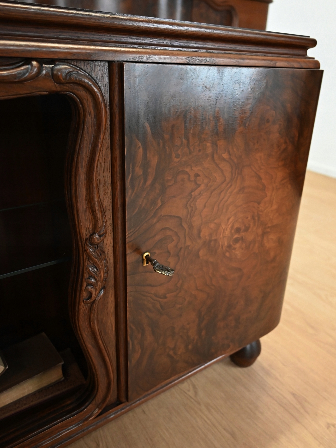 Дуже хороший стан. Меблі, підготовлені до використання. Зовнішні поверхні та центр меблів були оновлені. Меблі вже мають свої роки та сліди минулого часу, що не впливає на його естетичний прийом, вони є свідченням справжності меблів. Кабінет може негайно поставити в квартиру.