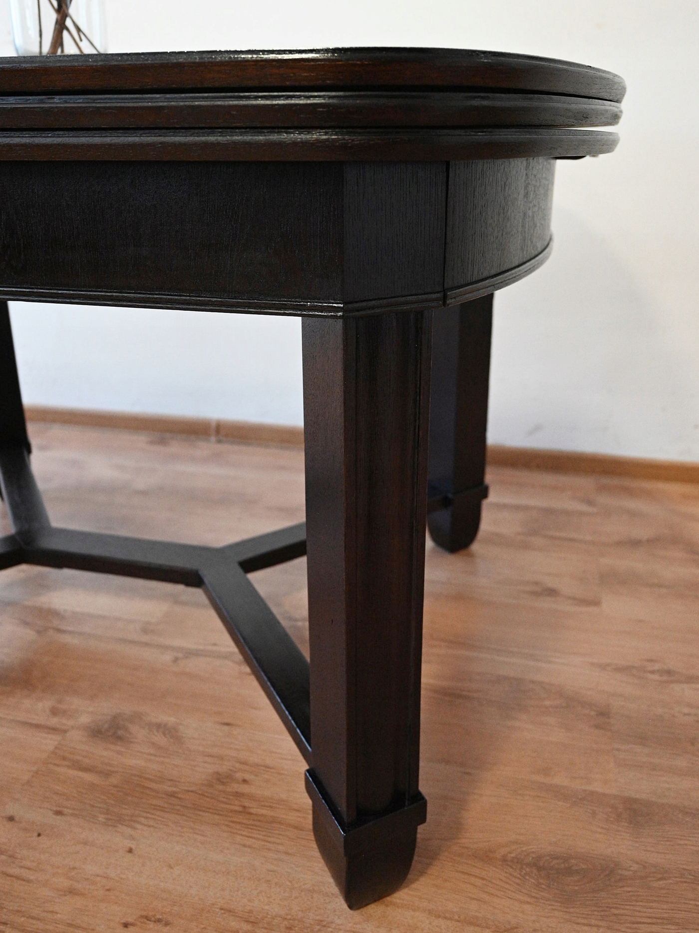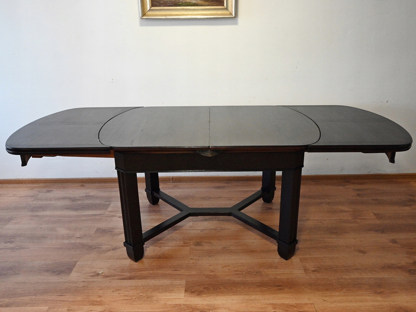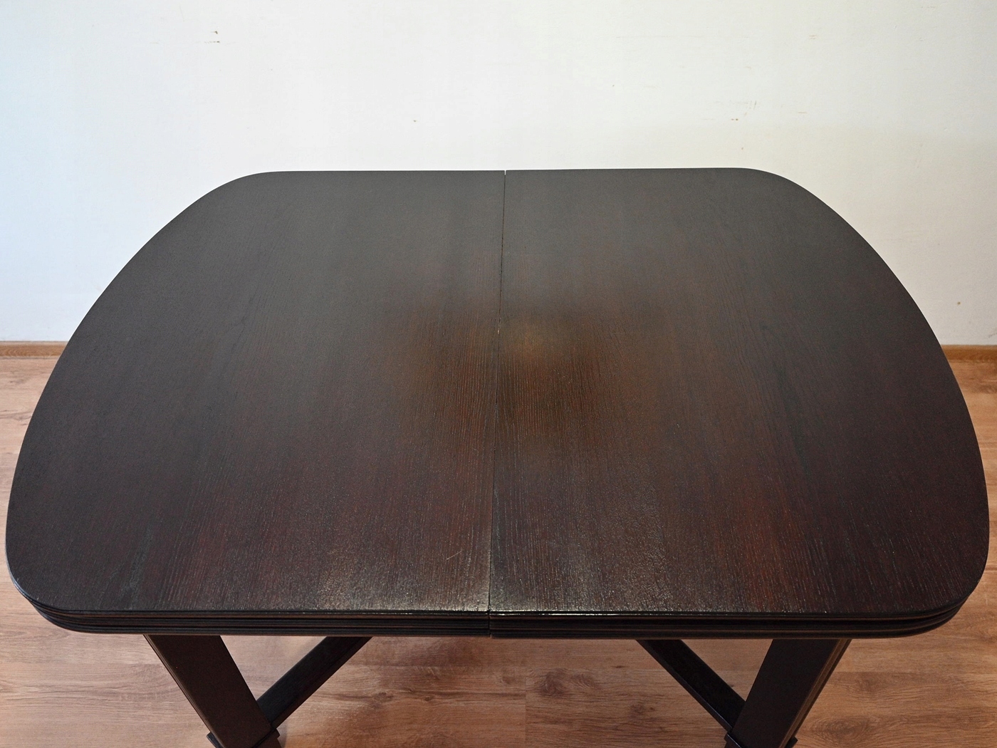 Дуже хороший стан. Меблі, підготовлені до використання. Зовнішні поверхні та центр меблів були оновлені. Меблі вже мають свої роки та сліди минулого часу, що не впливає на його естетичний прийом, вони є свідченням справжності меблів. Стіл можна відразу поставити в квартиру.