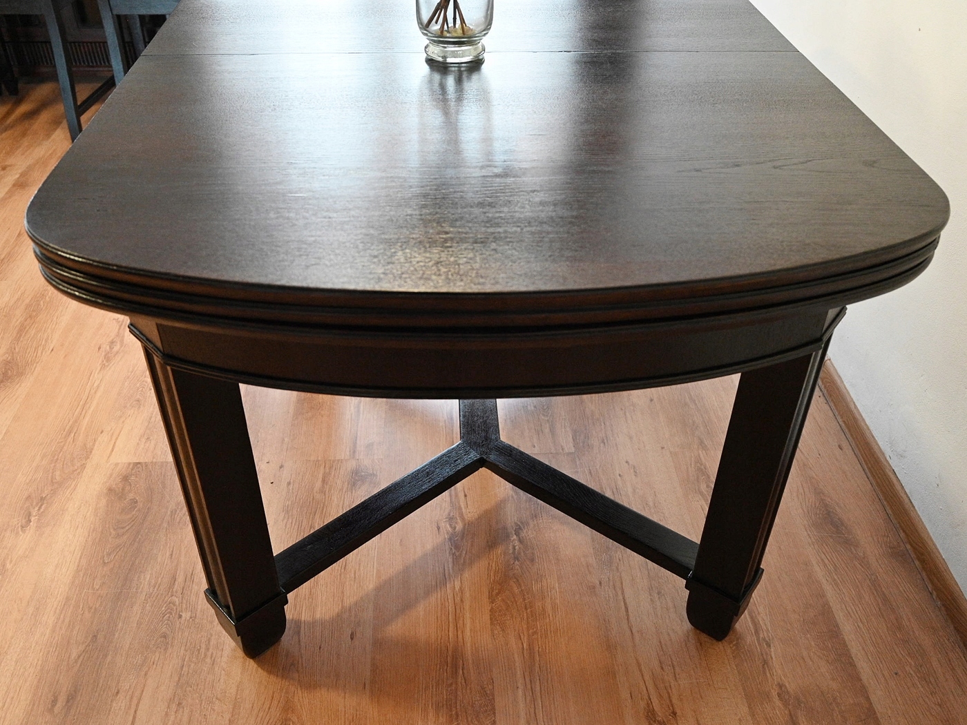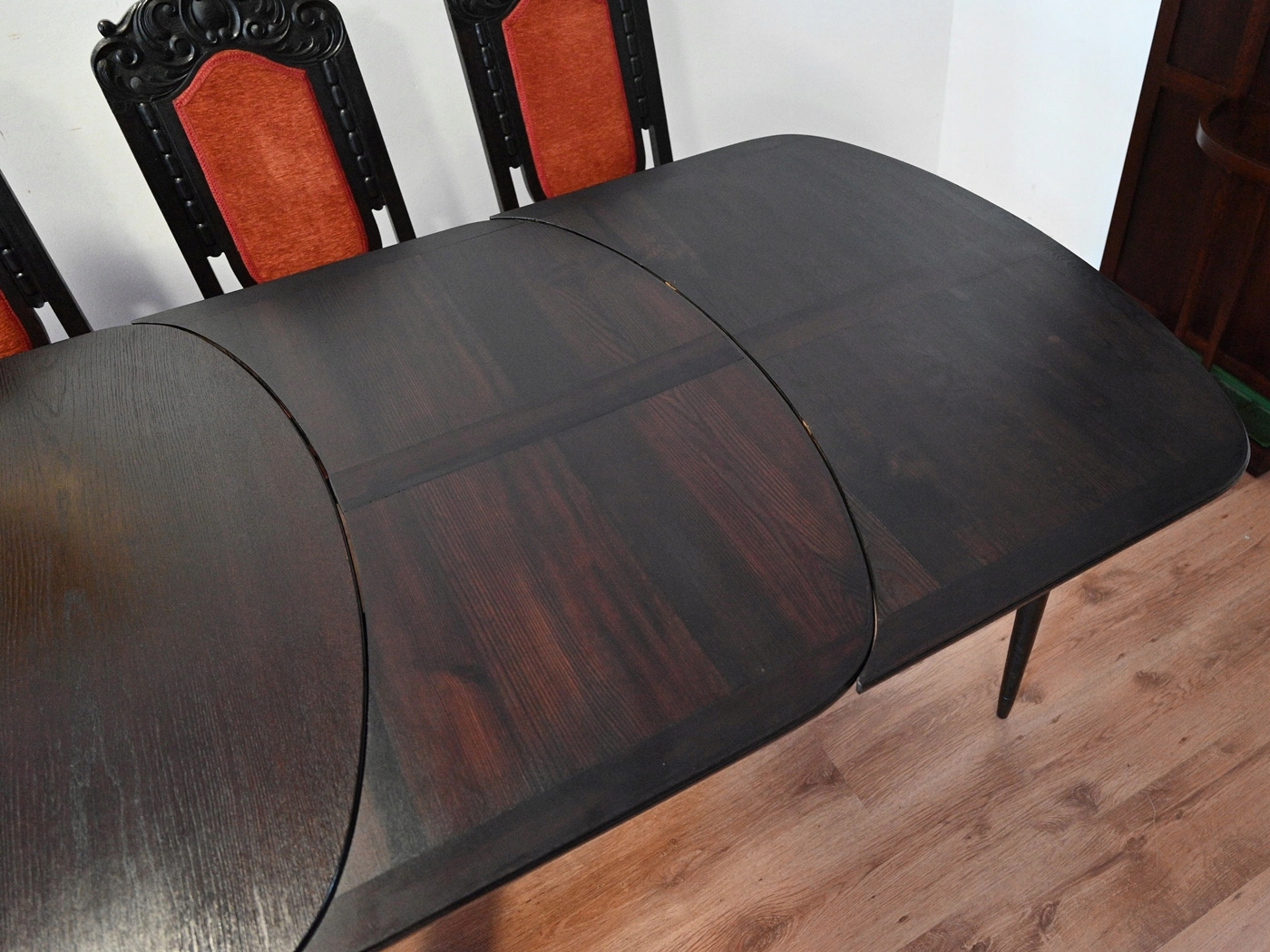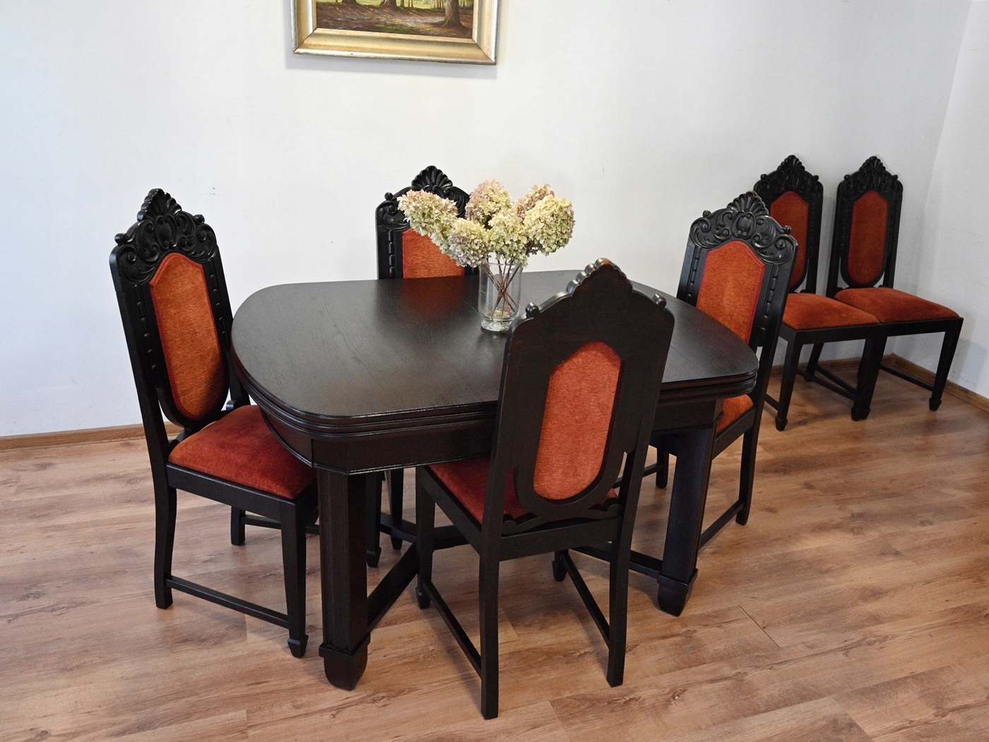 Дуже хороший стан. Меблі, підготовлені до використання. Зовнішні поверхні та центр меблів були оновлені. Меблі вже мають свої роки та сліди минулого часу, що не впливає на його естетичний прийом, вони є свідченням справжності меблів. Стіл можна відразу поставити в квартиру.