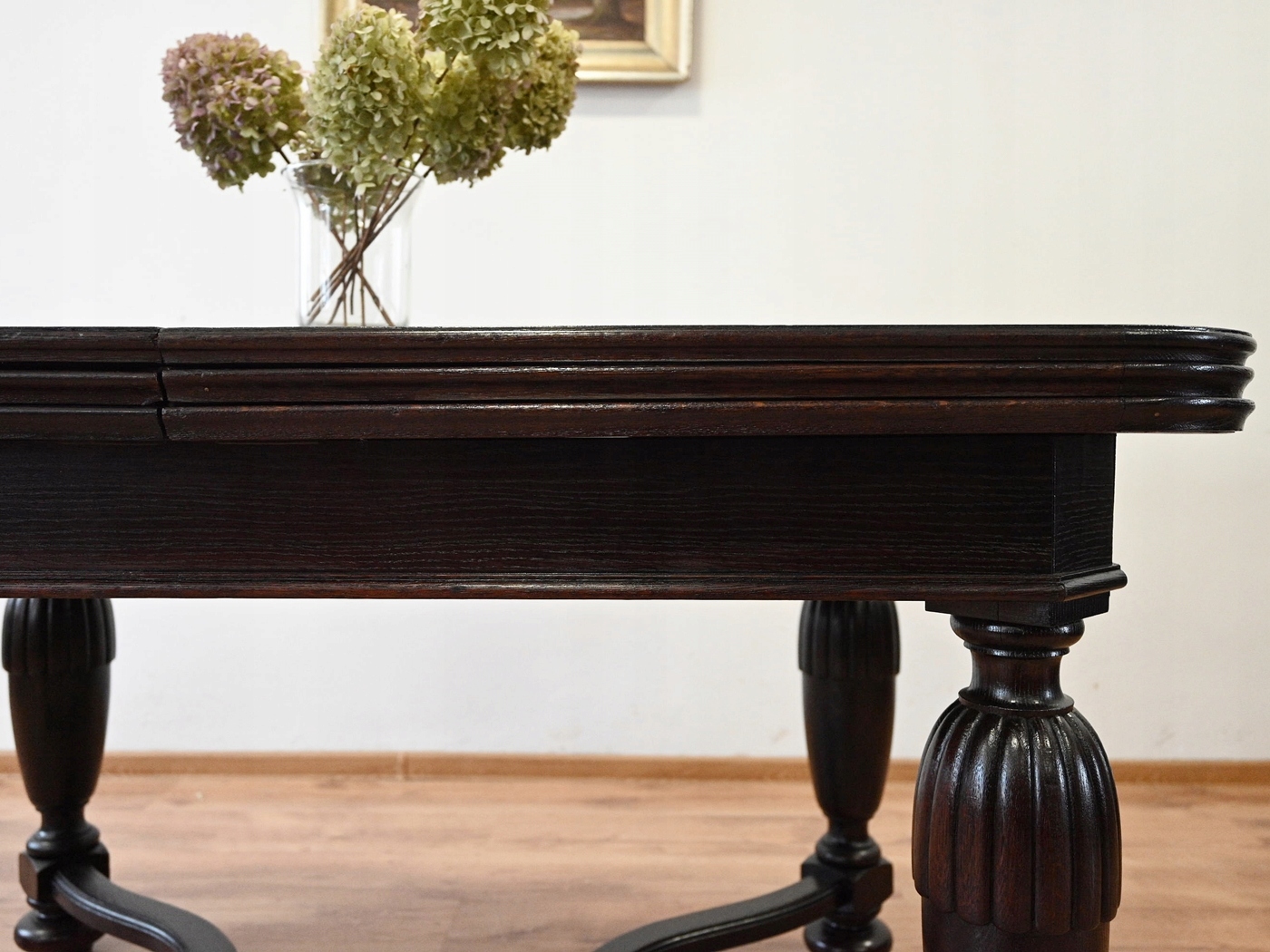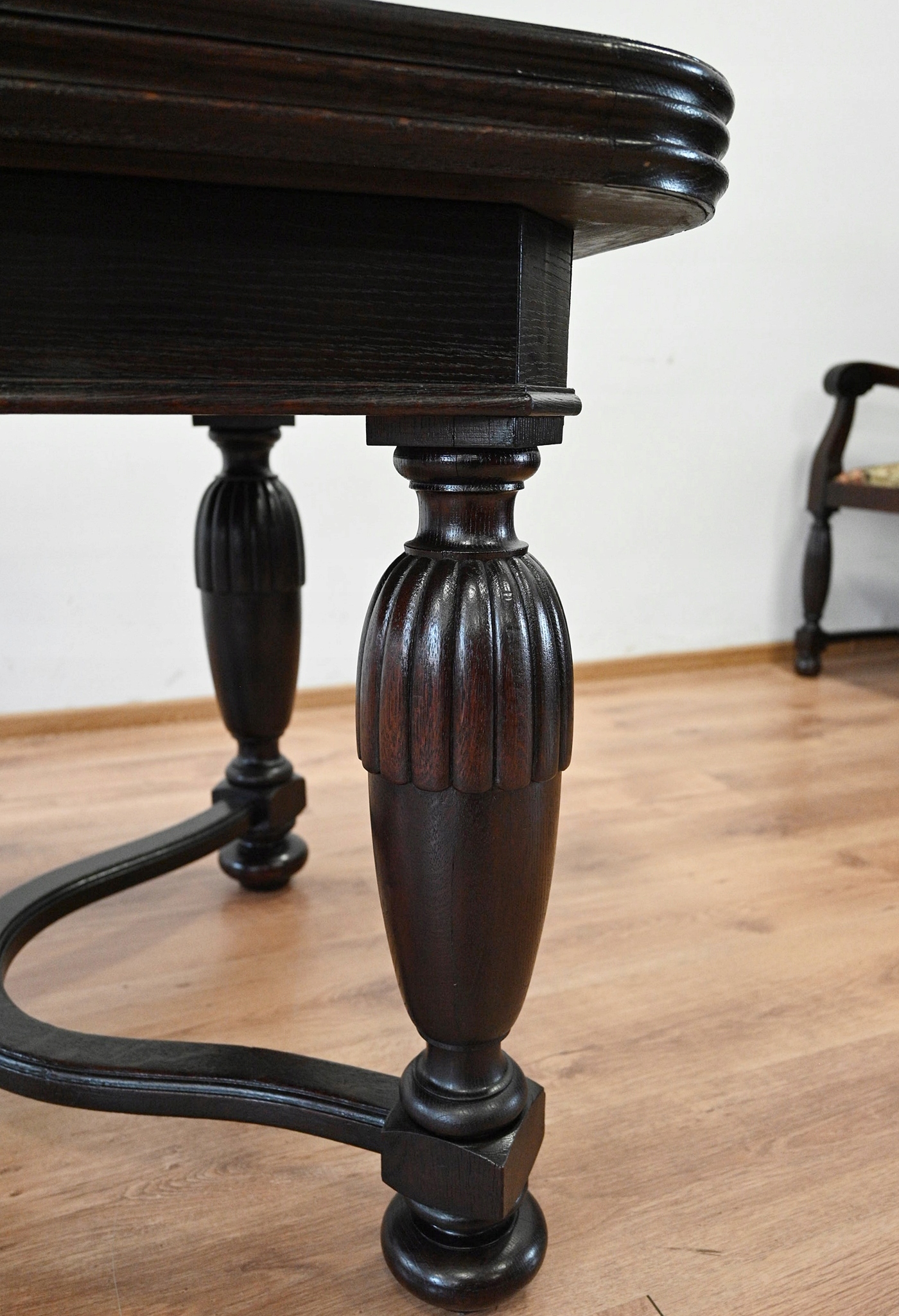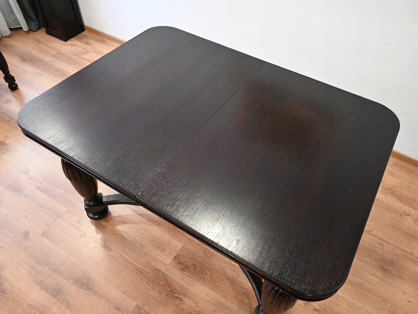 Дуже хороший стан. Меблі, підготовлені до використання. Зовнішні поверхні та центр меблів були оновлені. Меблі вже мають свої роки та сліди минулого часу, що не впливає на його естетичний прийом, вони є свідченням справжності меблів. Стіл можна негайно поставити в квартиру.