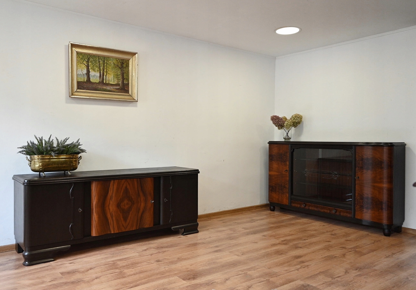 Дуже хороший стан. Меблі, підготовлені до використання. Зовнішні поверхні та центр меблів були оновлені. Меблі вже мають свої роки та сліди минулого часу, що не впливає на його естетичний прийом, вони є свідченням справжності меблів. Кабінет може негайно поставити в квартиру.
