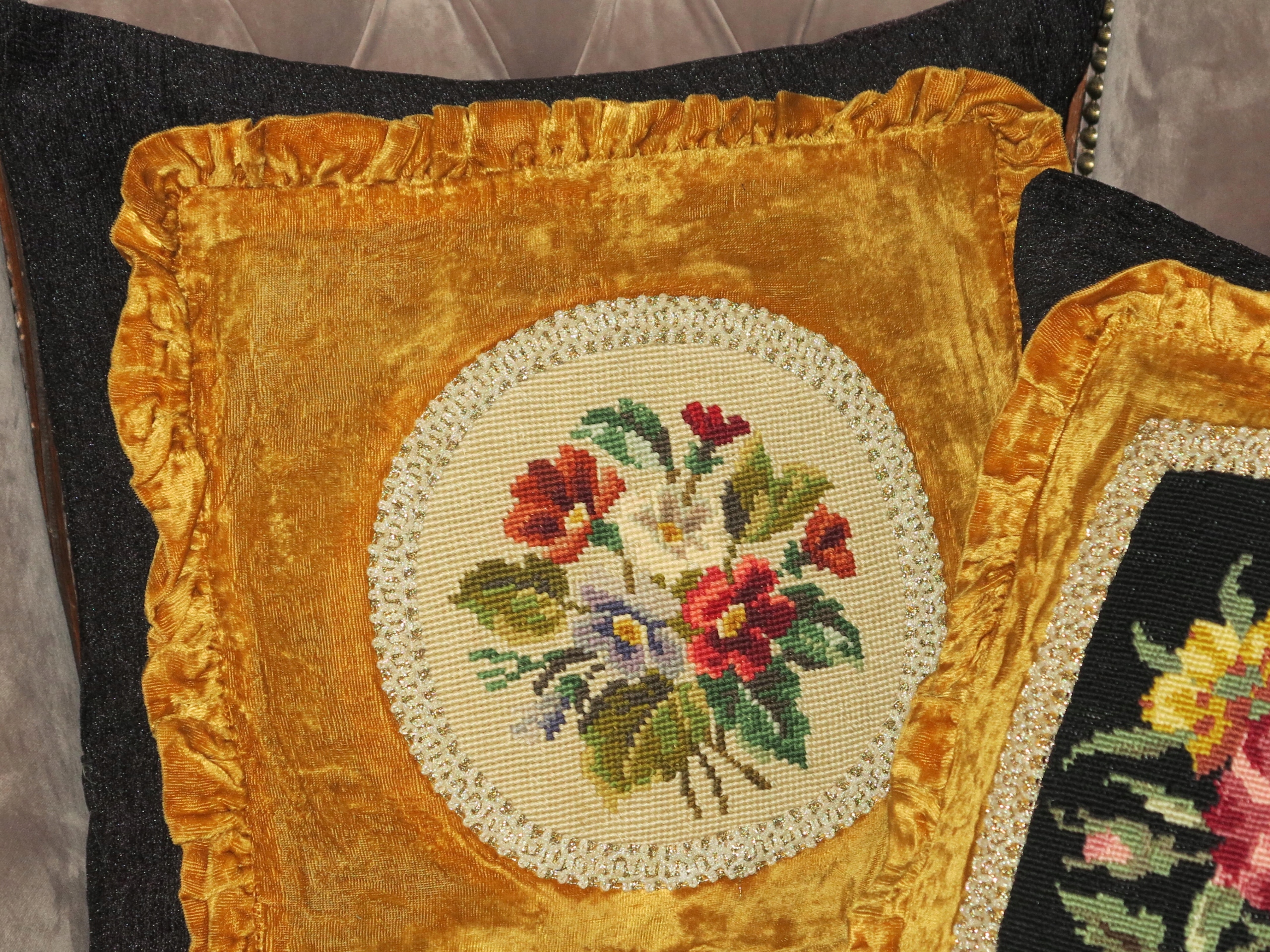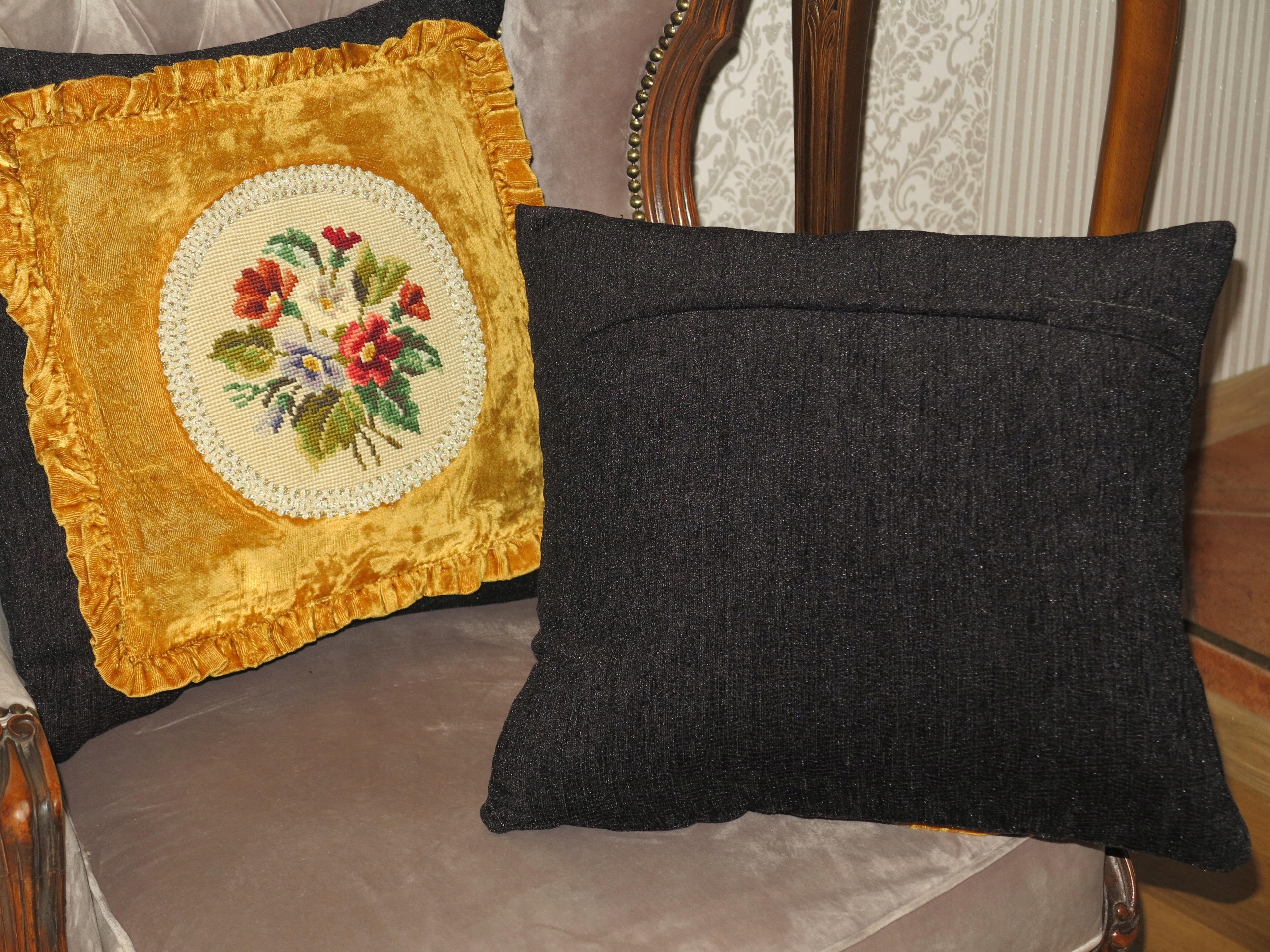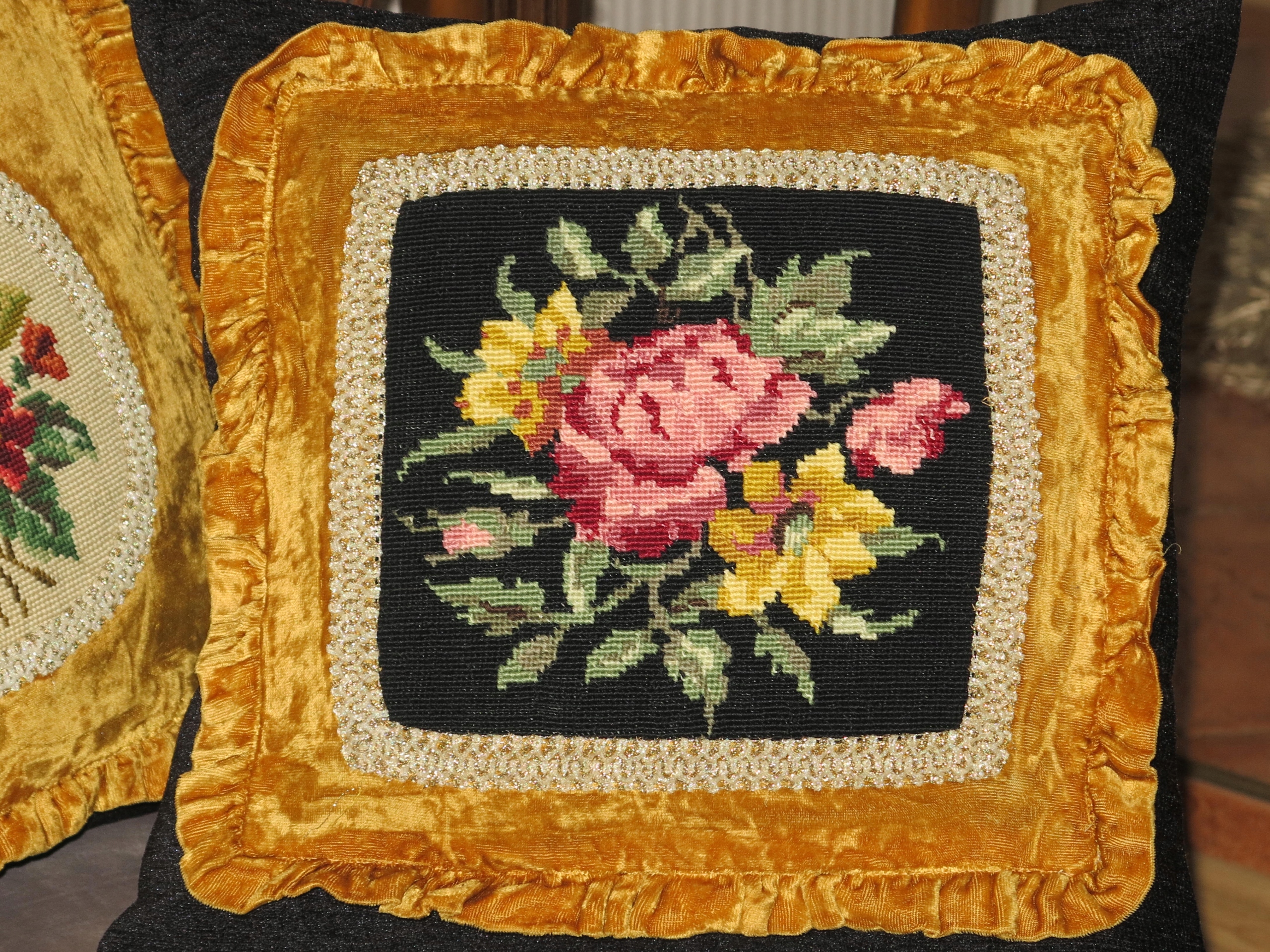 АНТИЧНІ ОКСАМИТНІ ПОДУШКИ З РУЧНОЮ ВИШИВКОЮ ХРЕСТИКОМ