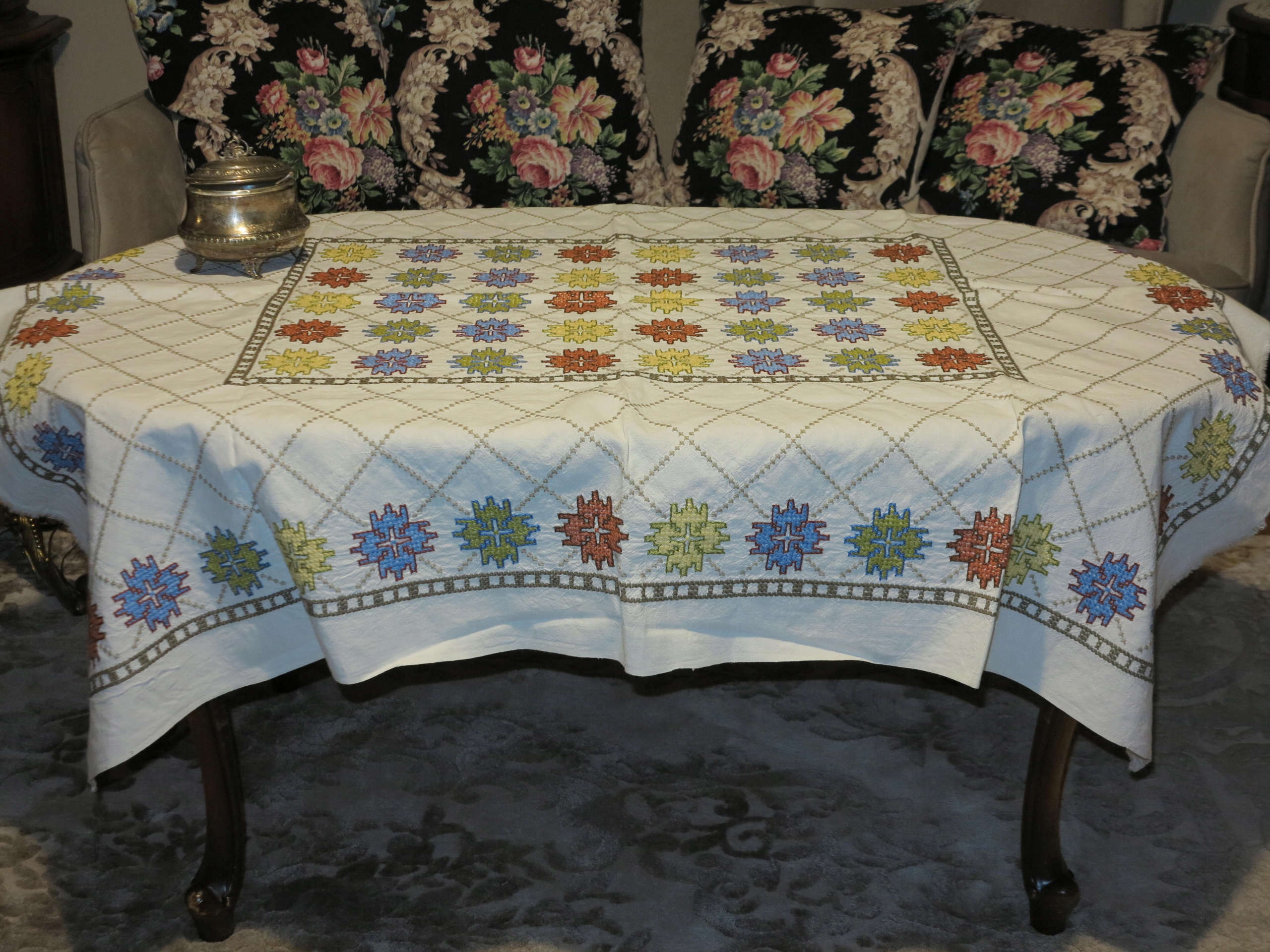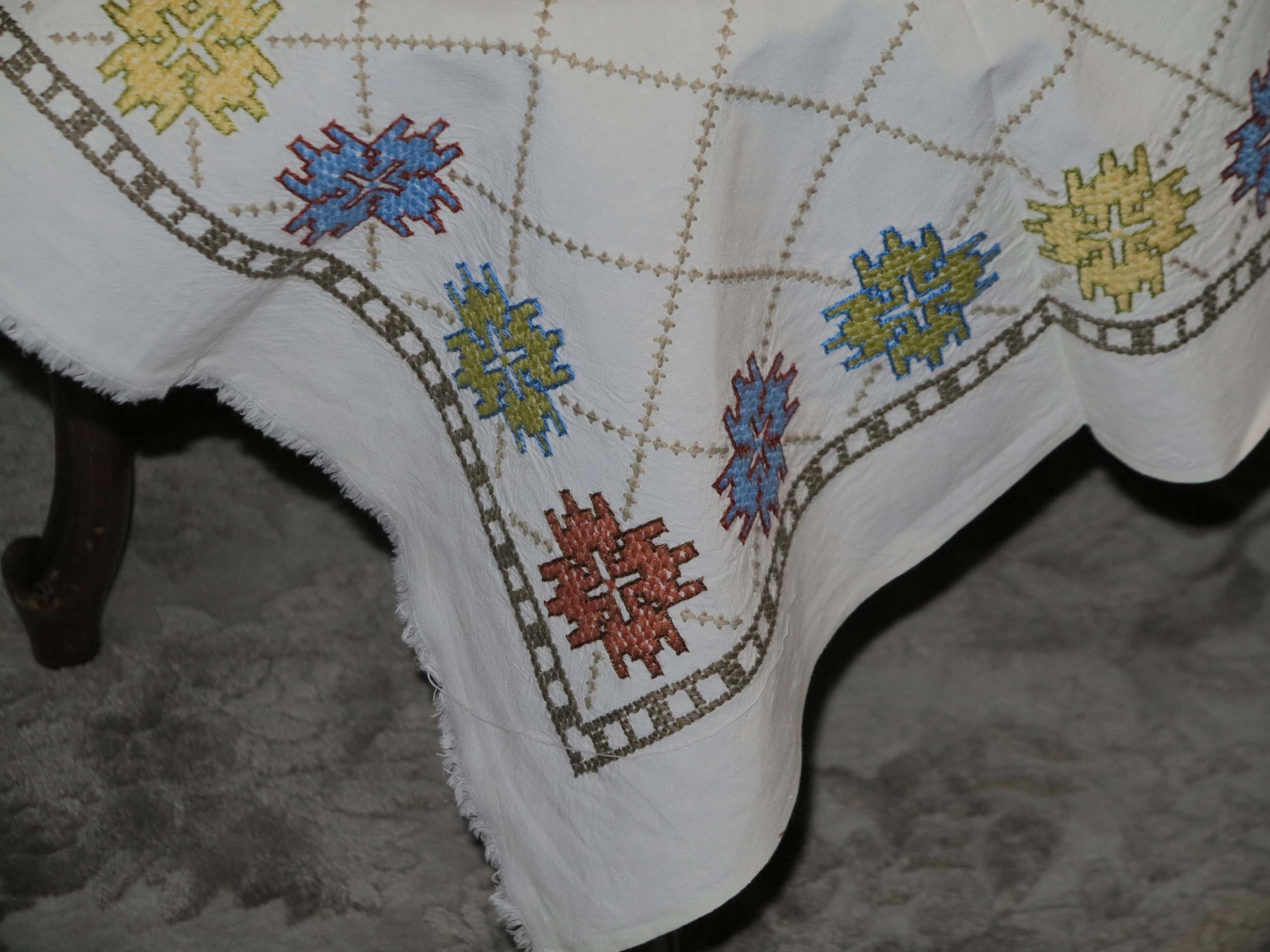 АНТИКВАРАТ - ЧУДОВУ СТОЛІТНЮ ЛЛЯНУ СКАТЕРТИНУ З РУЧНОЮ РЯСНОЮ ЩІЛЬНОЮ ВИШИВКОЮ ХРЕСТИКОМ, ЧУДОВИХ КОЛЬОРІВ. ПОТРІБНО БАГАТО ЧАСУ РУЧНОЇ РОБОТИ.