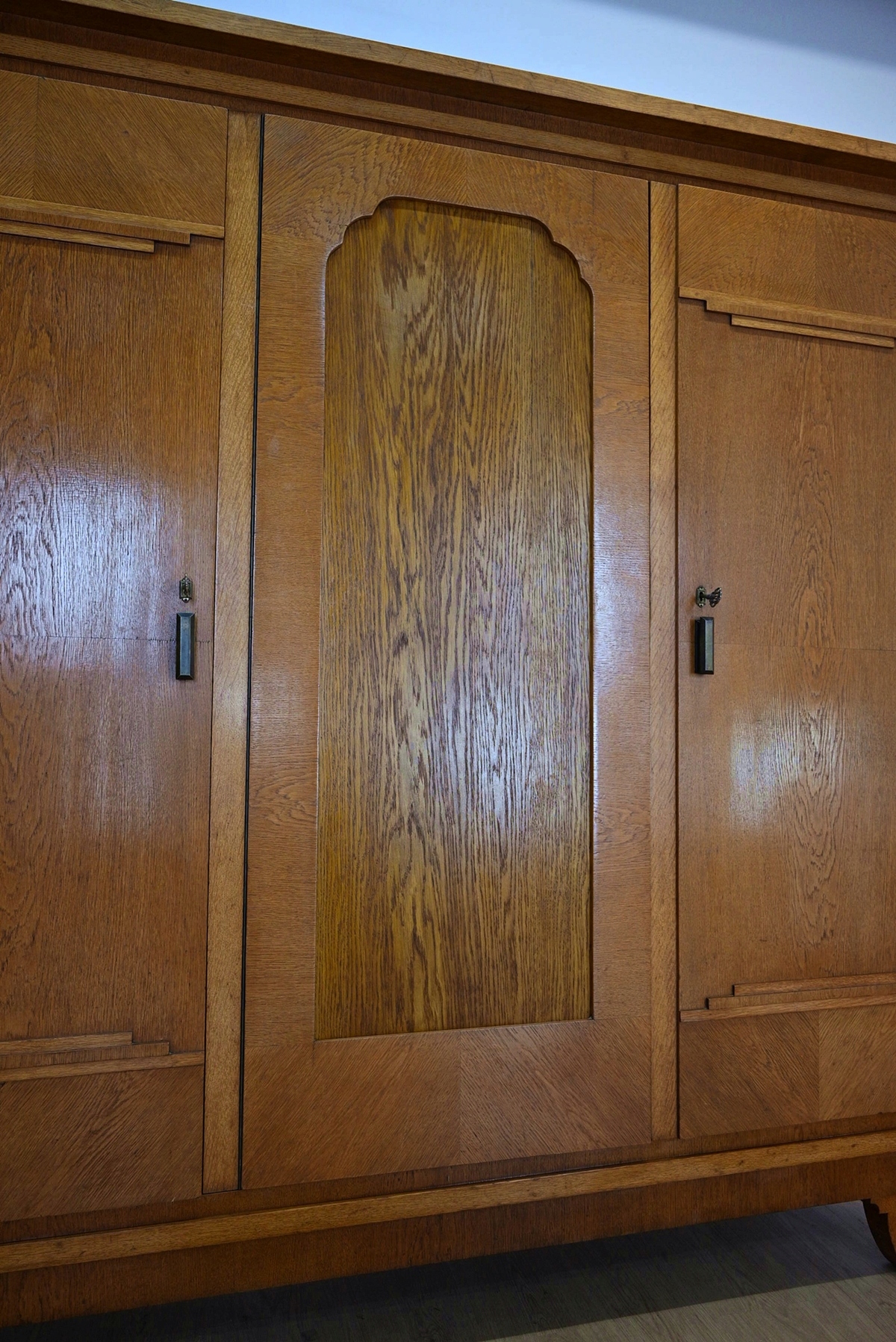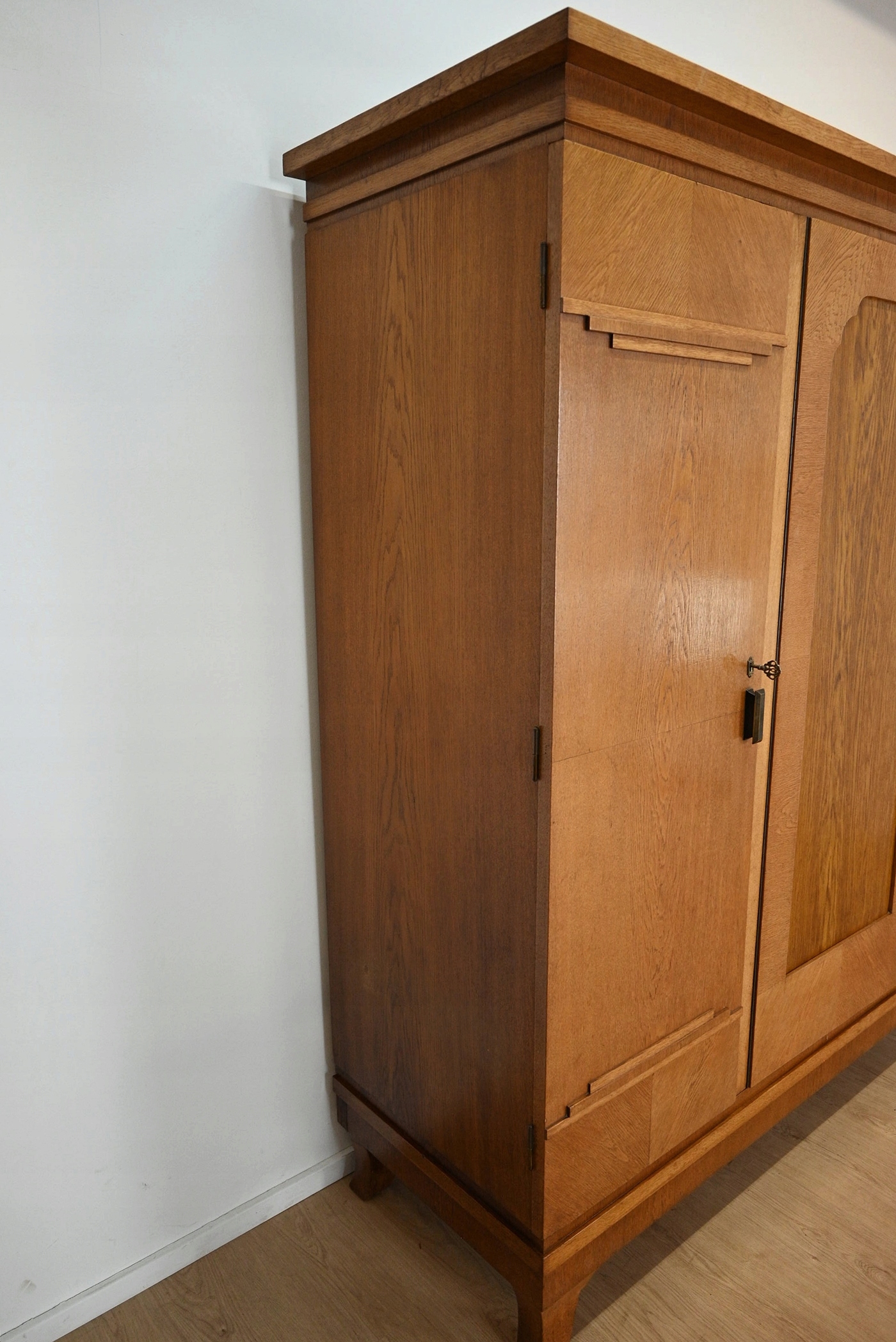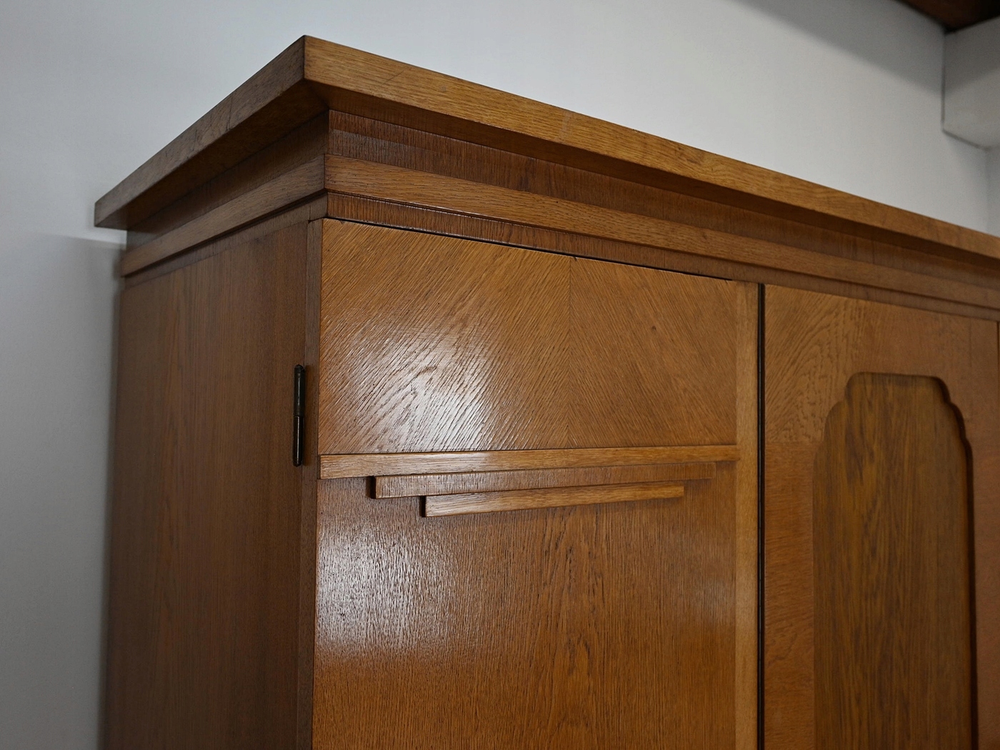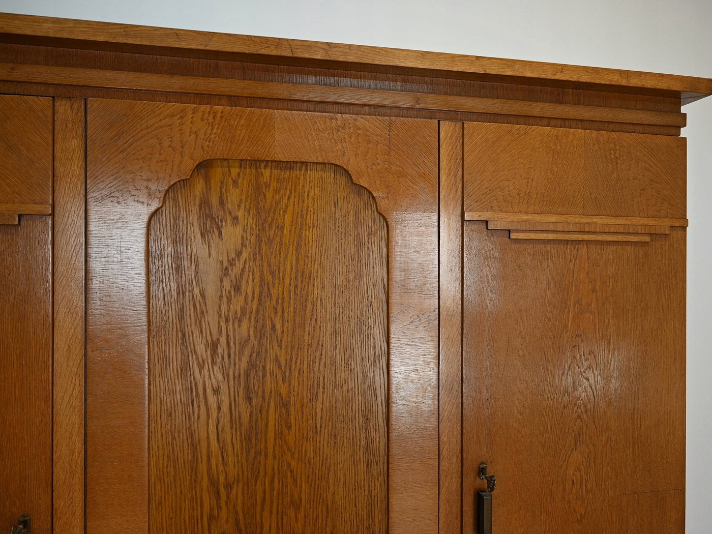 хороший стан. Меблі, підготовлені до використання. Зовнішні поверхні та центр меблів були оновлені. Меблі вже мають свої роки та сліди минулого часу, що не впливає на його естетичний прийом, вони є свідченням справжності меблів. Гардероб можна негайно поставити в квартиру.