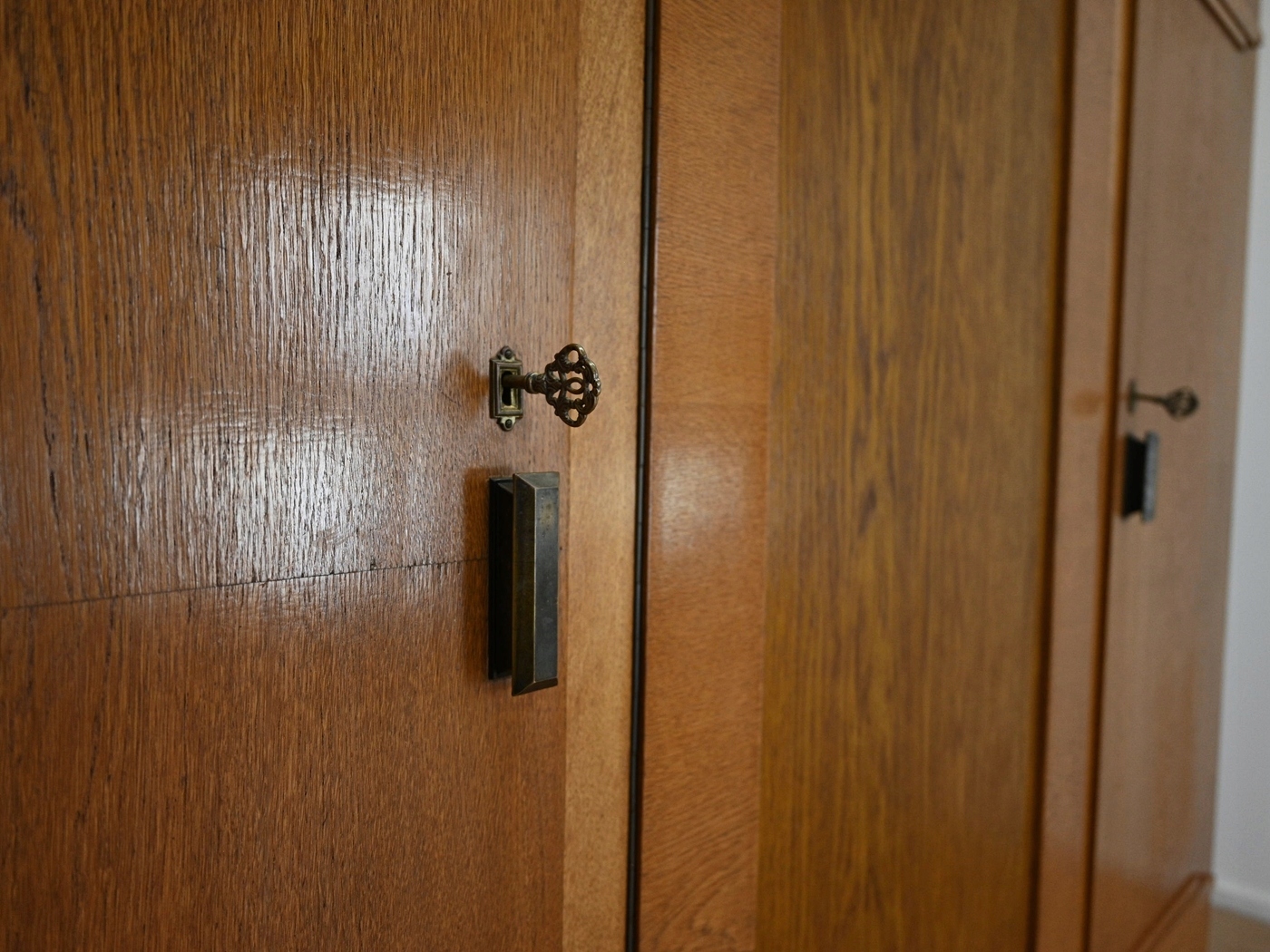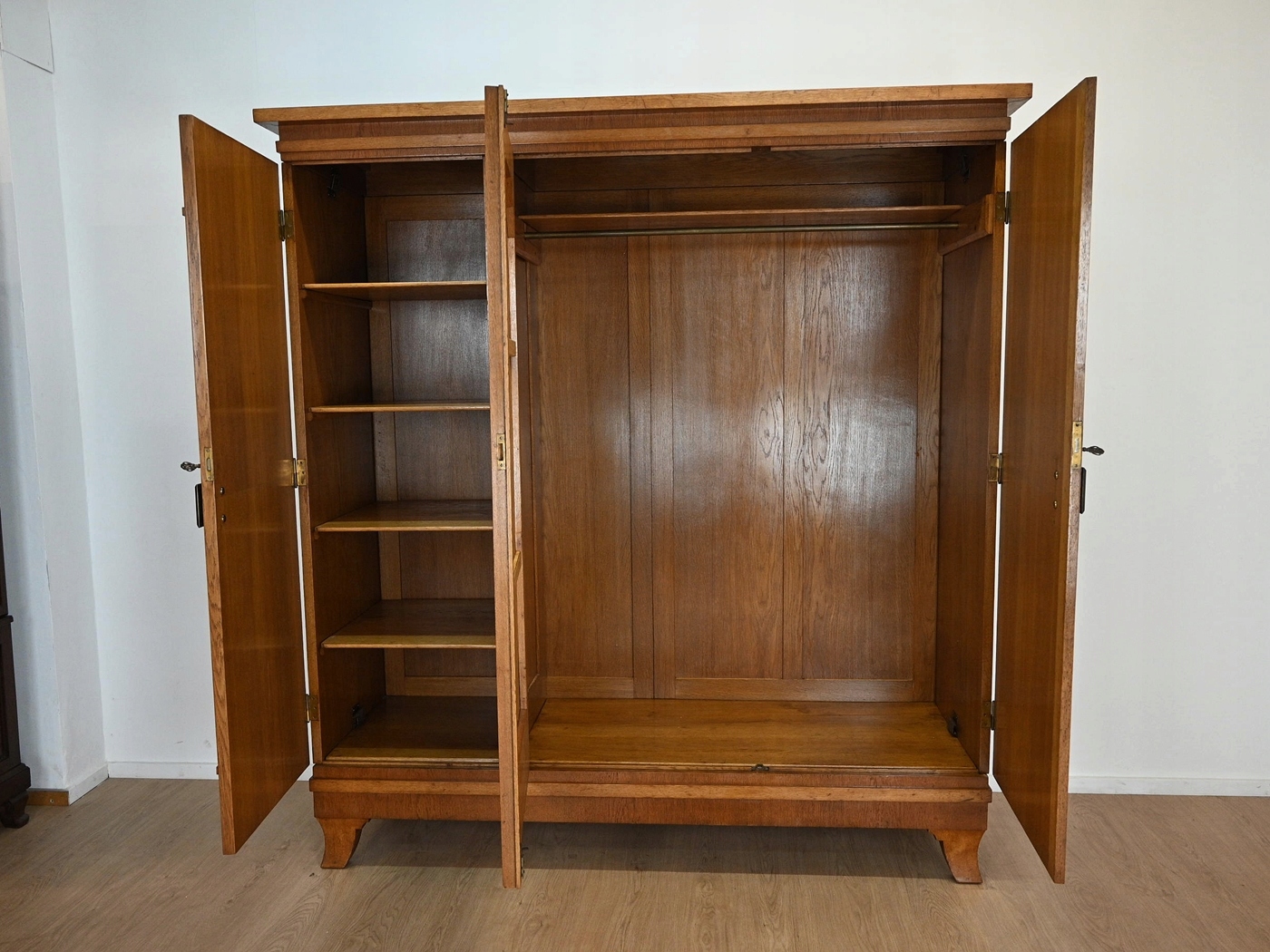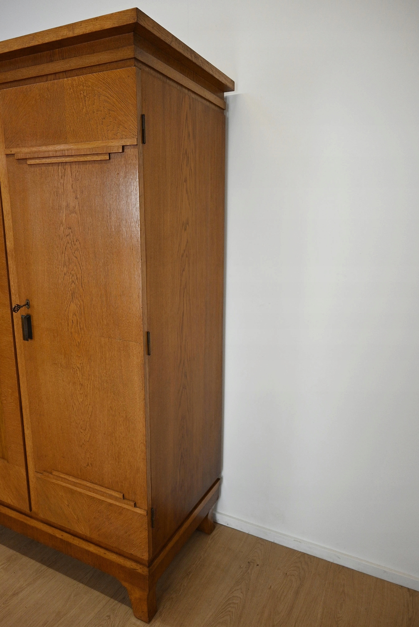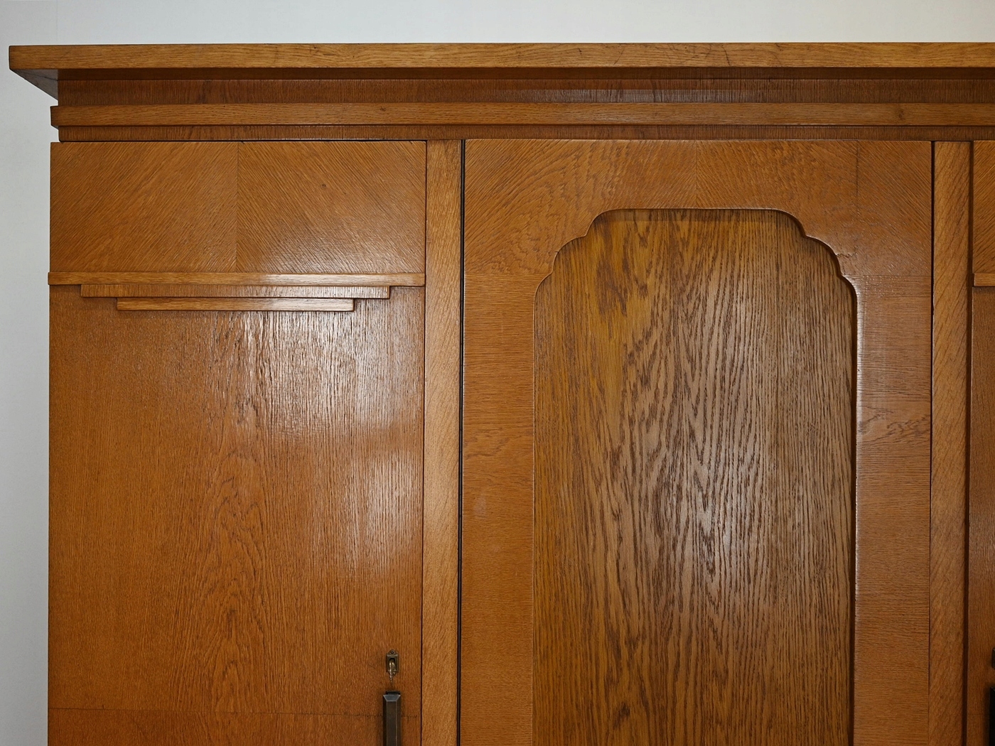 хороший стан. Меблі, підготовлені до використання. Зовнішні поверхні та центр меблів були оновлені. Меблі вже мають свої роки та сліди минулого часу, що не впливає на його естетичний прийом, вони є свідченням справжності меблів. Гардероб можна негайно поставити в квартиру.