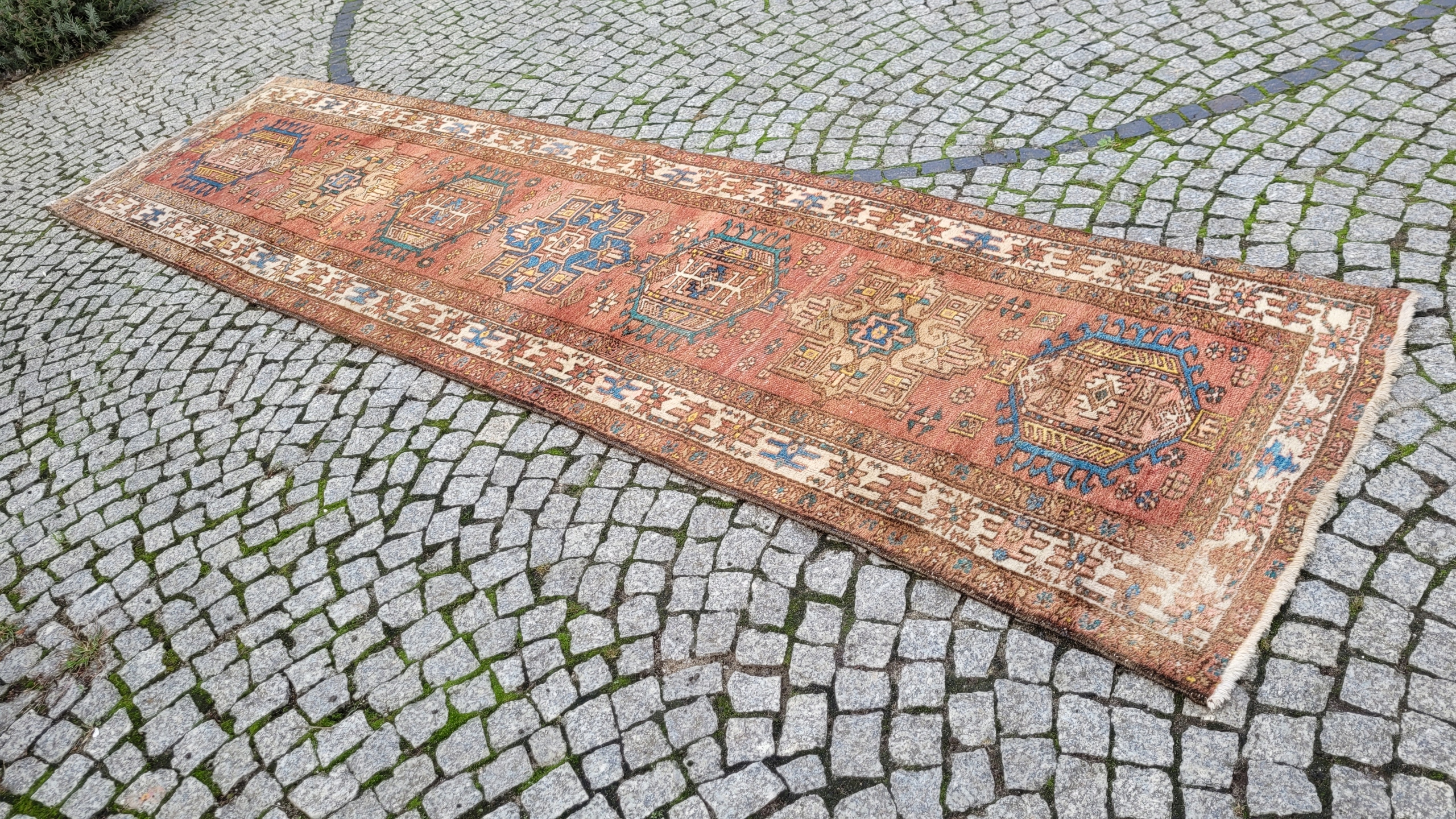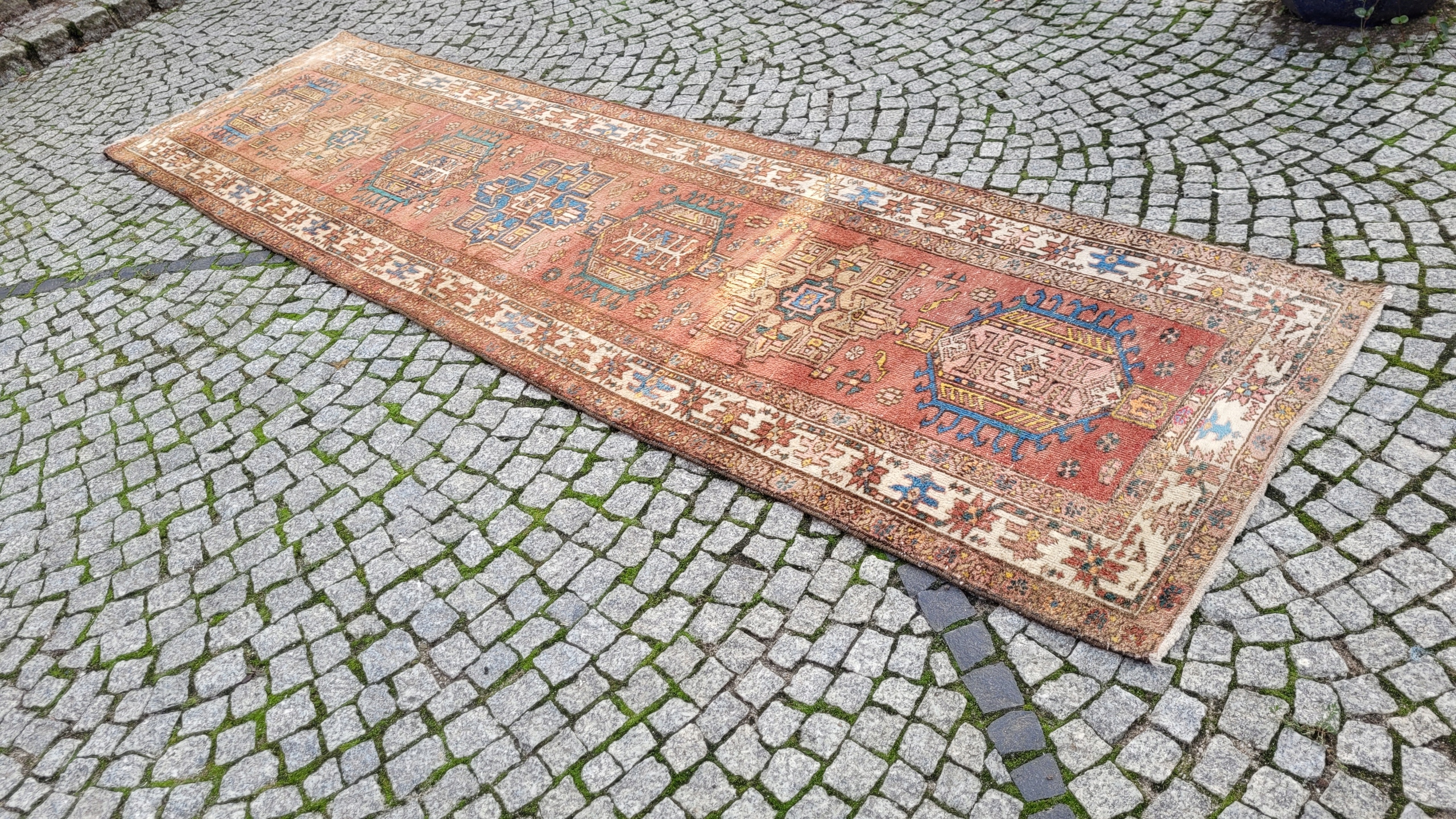 Перський старовинний килим Heriz-Garayeh. Виткана вручну з вовни найвищої якості. Характеризується компактним, приємним на дотик флісом і красивими потертими кольорами та візерунками. У хорошому стані, видно на фотографіях.