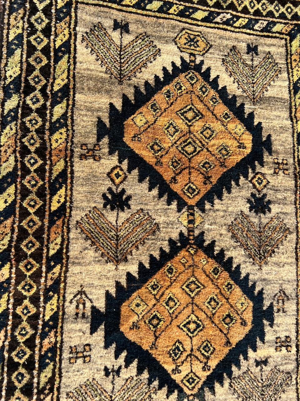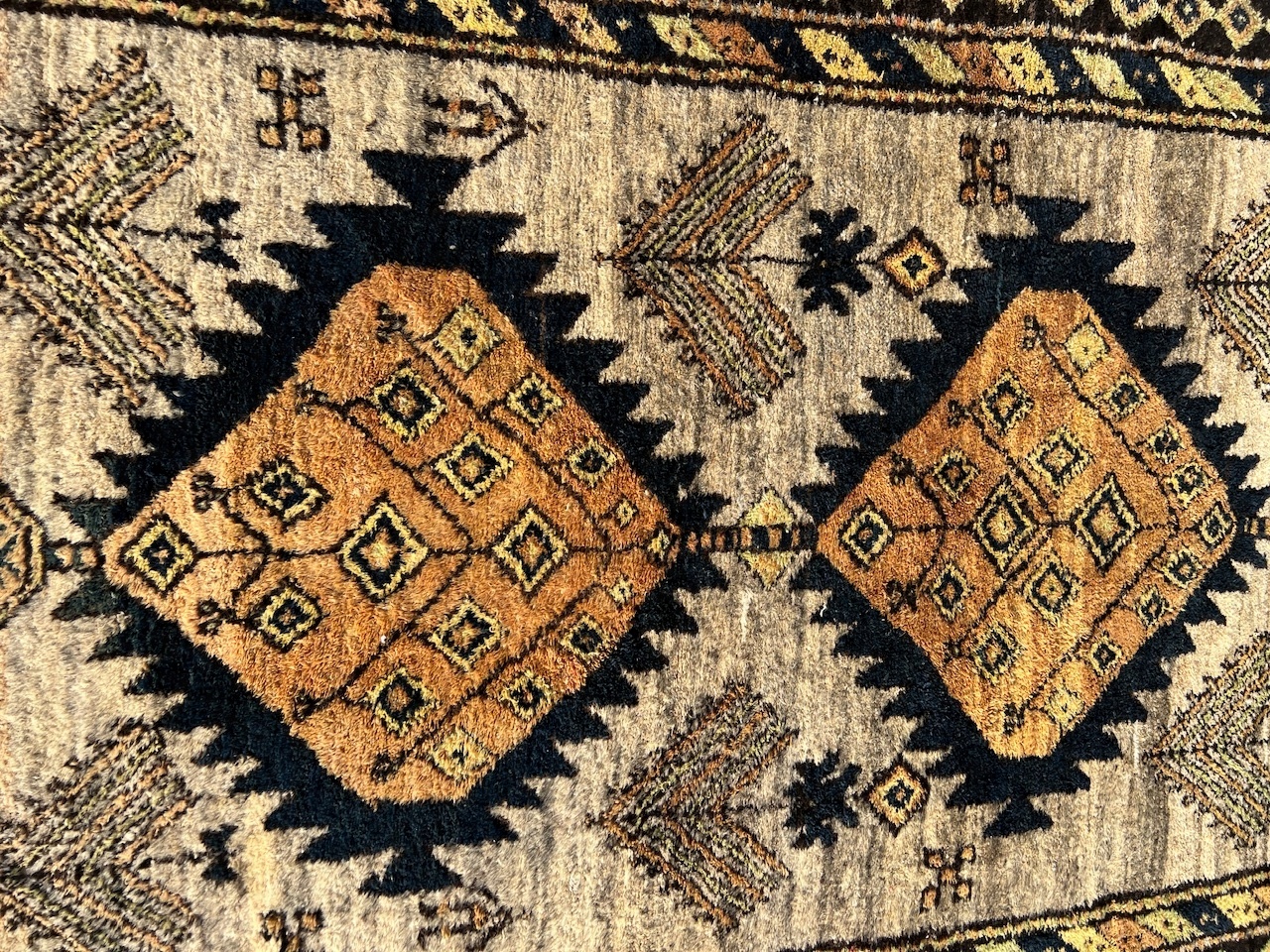 СТАН: антикварний килим збережена в дуже хорошому стані, готова до розміщення на підлозі. Через те, що килим витканий старовинним методом на ткацьких верстатах, він може мати нерівні форми.