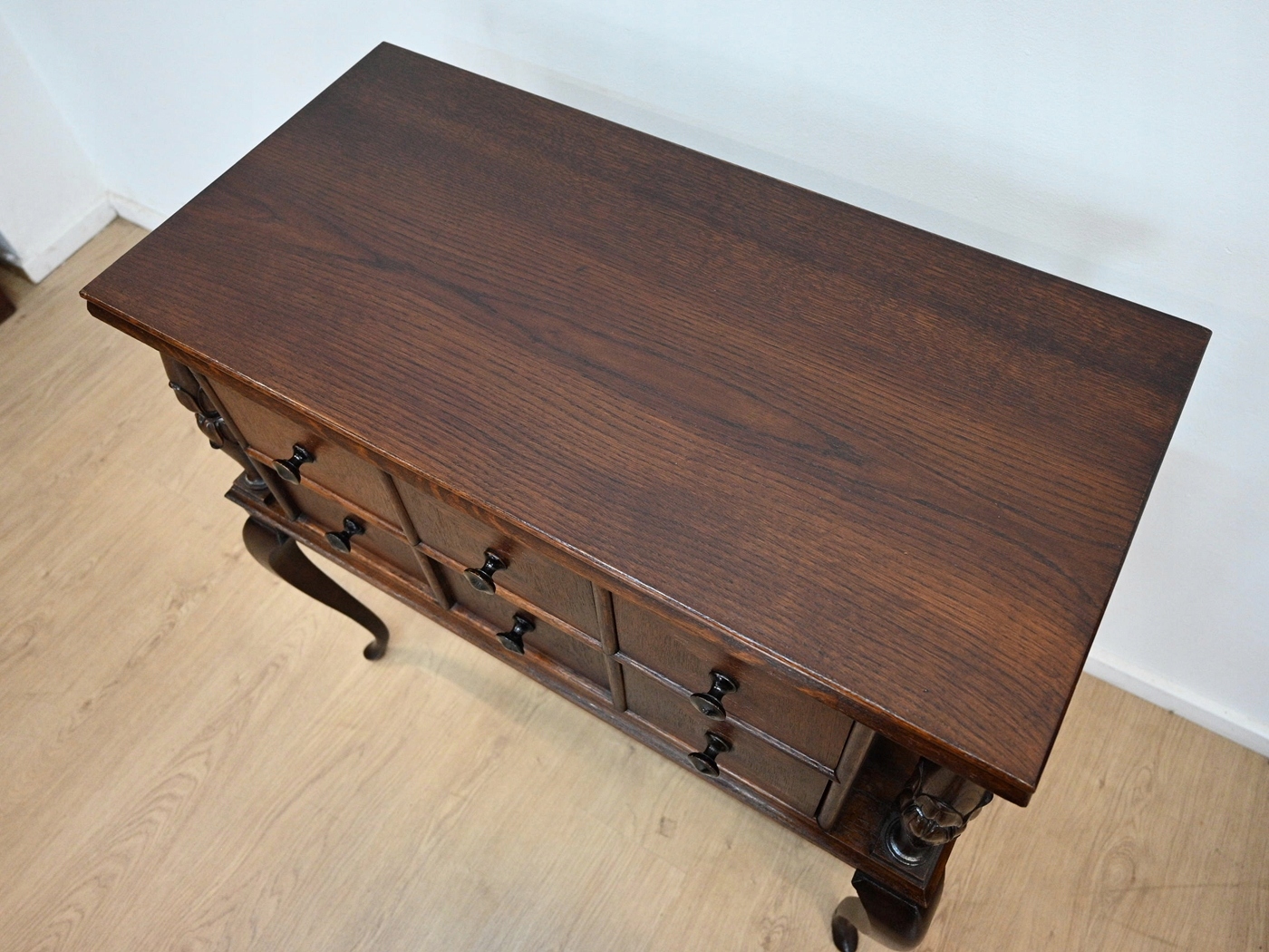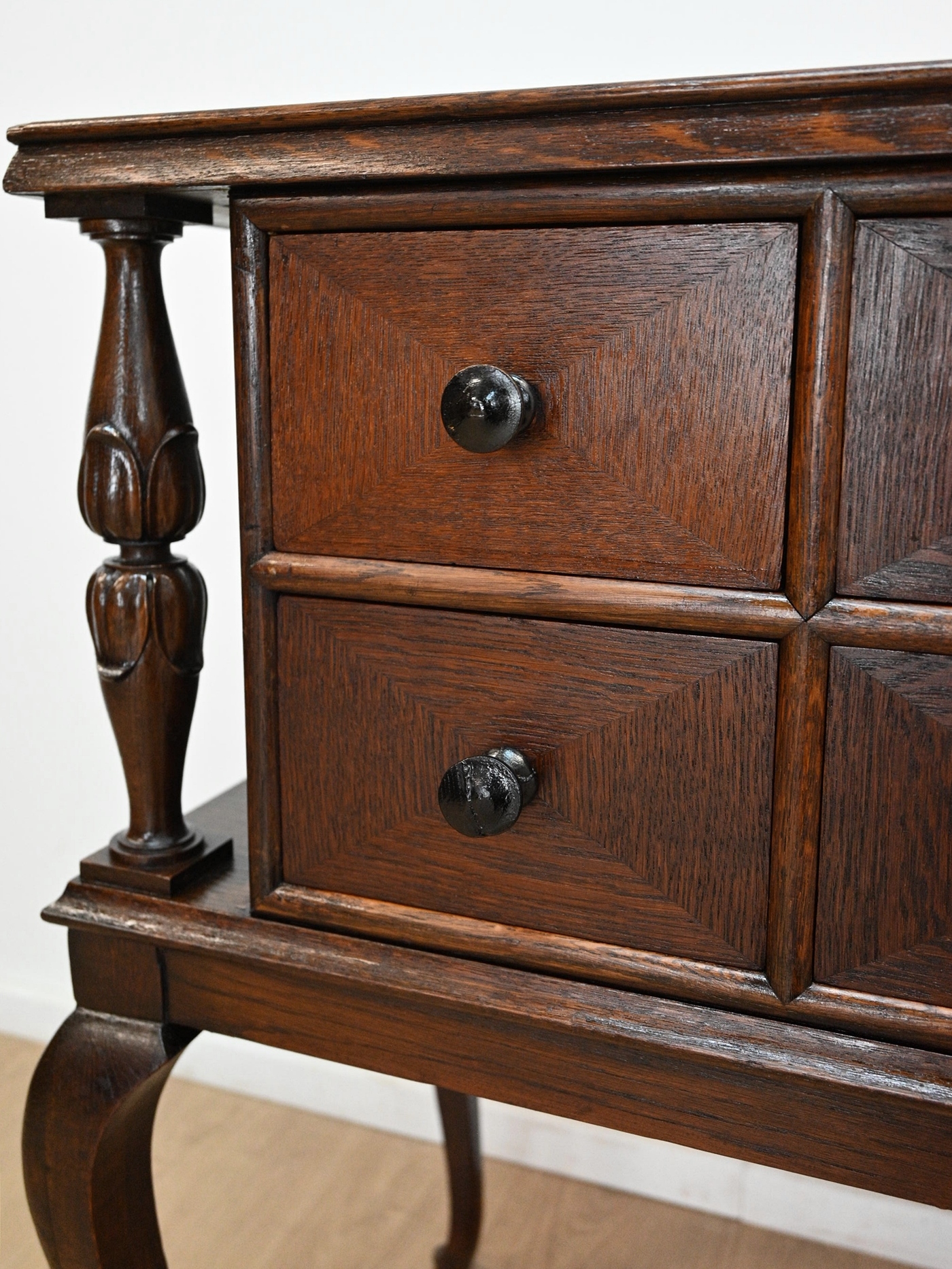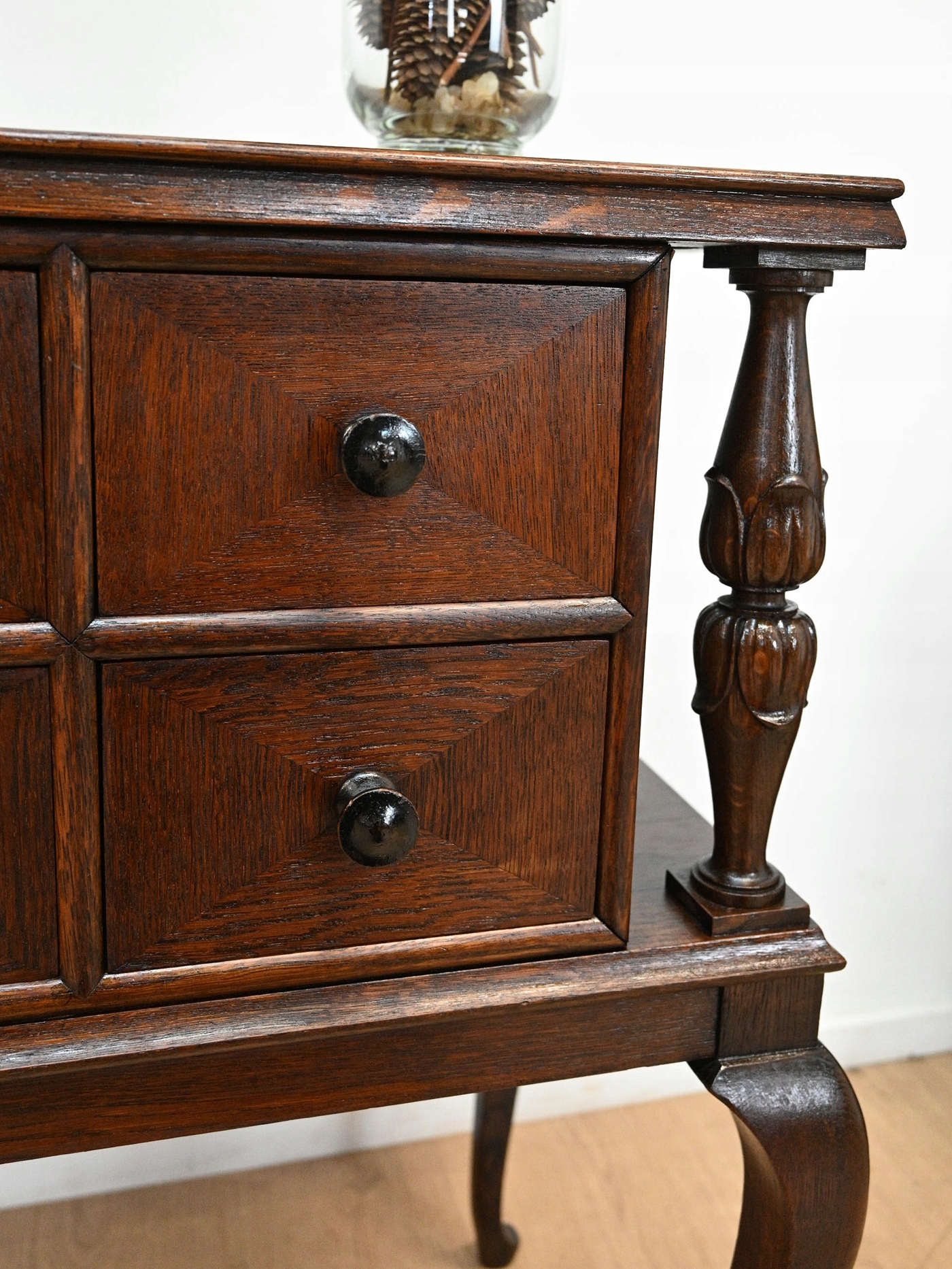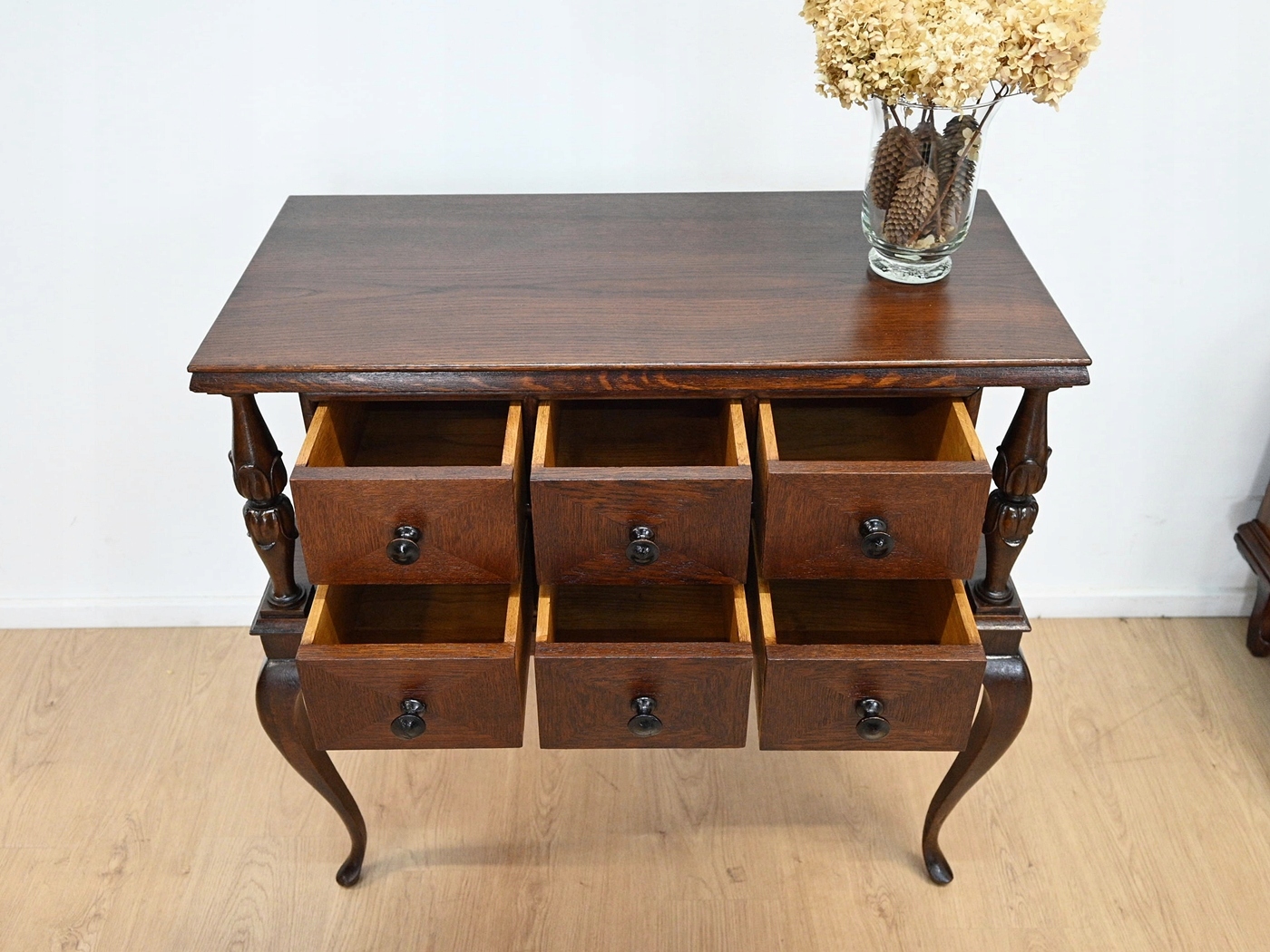 Дуже хороший стан. Меблі, підготовлені до використання. Зовнішні поверхні та центр меблів були оновлені. Меблі вже мають свої роки та сліди минулого часу, що не впливає на його естетичний прийом, вони є свідченням справжності меблів. Стіл можна негайно поставити в квартиру.
