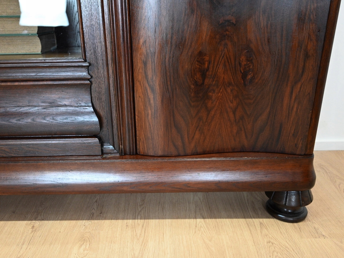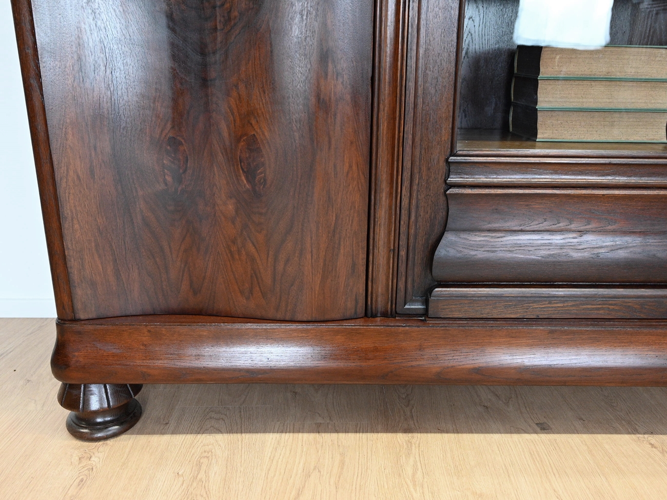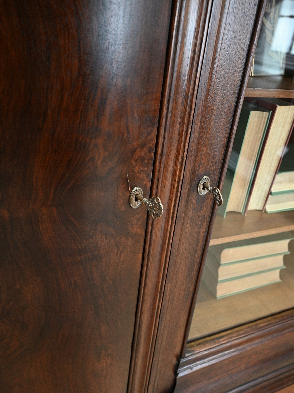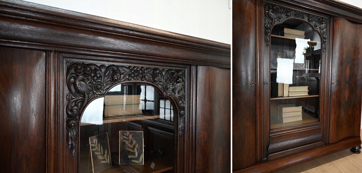 Стан дуже хороший. Меблі готові до використання. Оновлено зовнішні поверхні та інтер’єр меблів. Меблі вже старі, а сліди минулого, які не впливають на їх естетичне сприйняття, є доказом автентичності меблів. Бібліотеку можна відразу заселяти в квартиру.