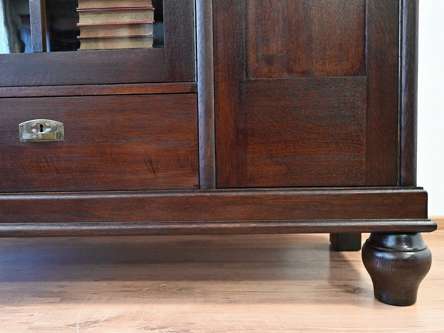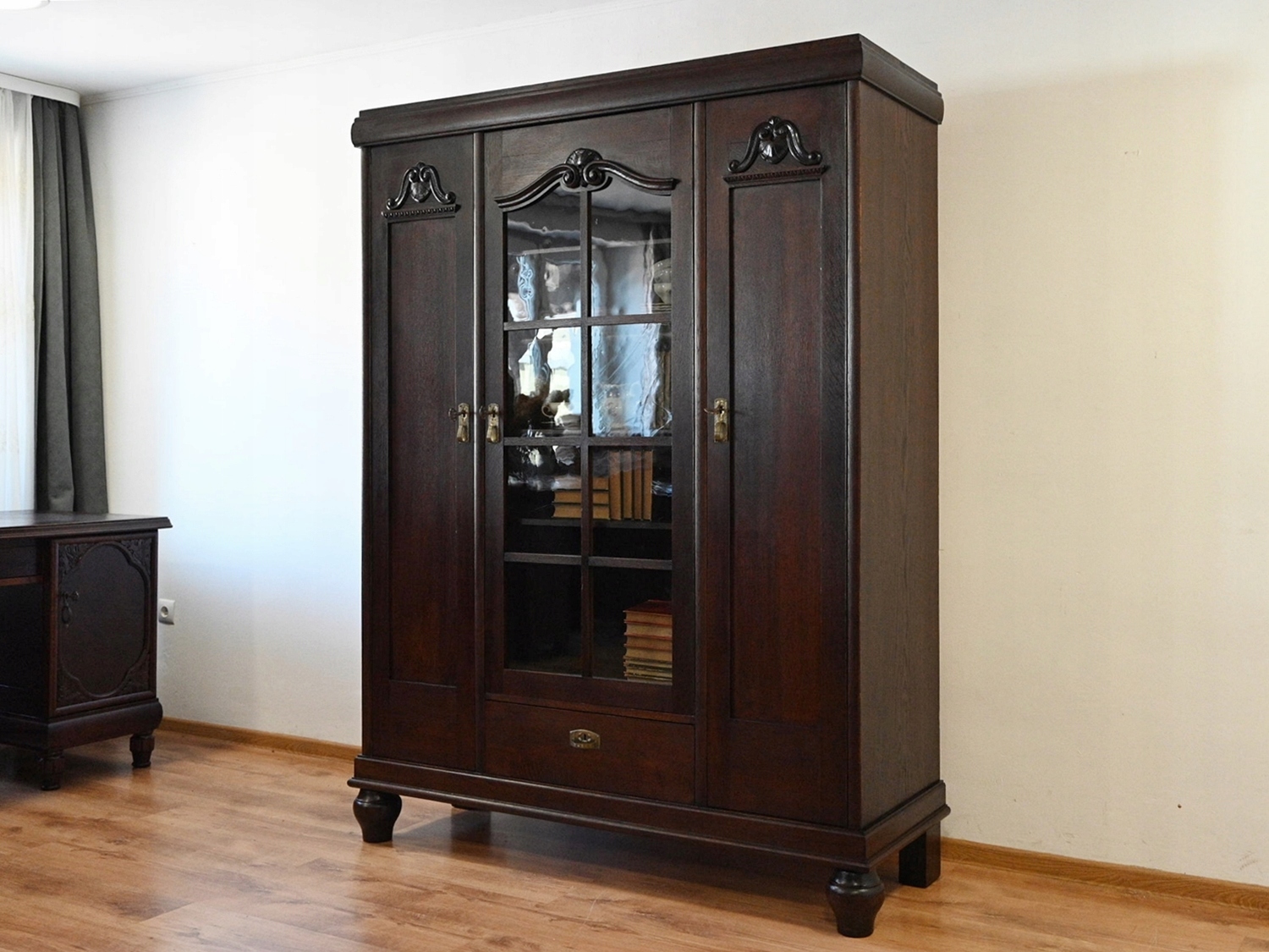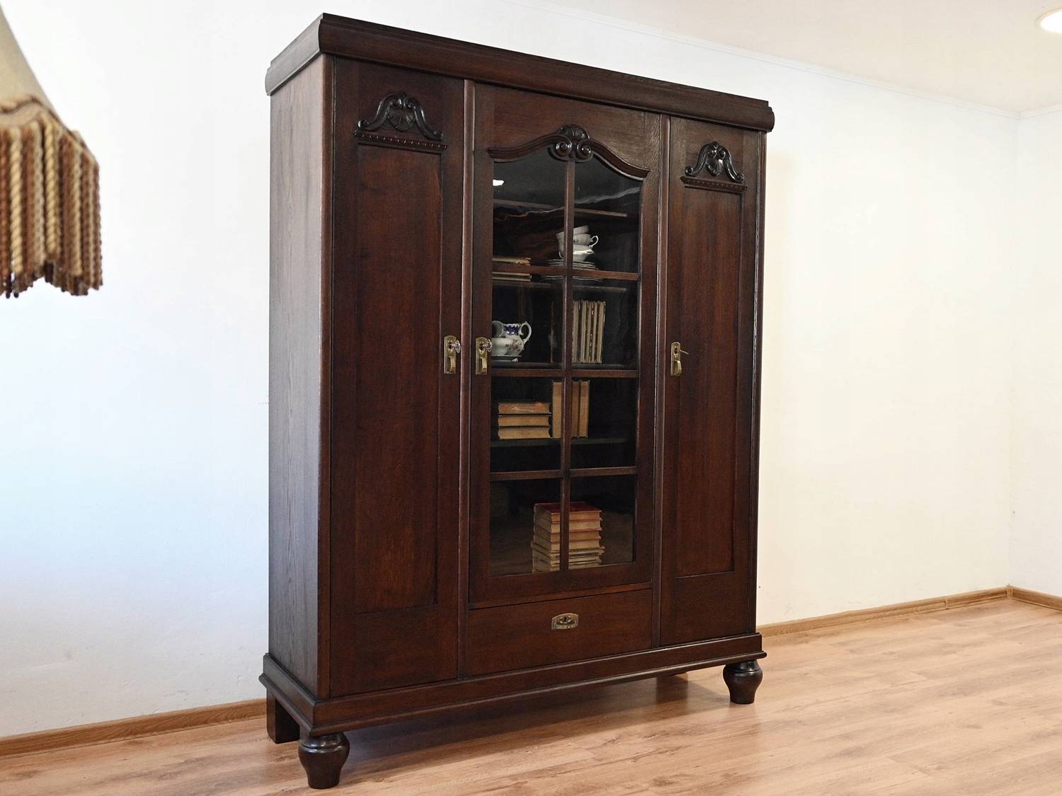 Дуже хороший стан. Меблі готові до використання. Оновлено зовнішні поверхні та інтер’єр меблів. Меблі вже старі, а сліди минулого, які не впливають на їх естетичне сприйняття, є доказом автентичності меблів. Бібліотеку можна відразу розмістити в квартирі.