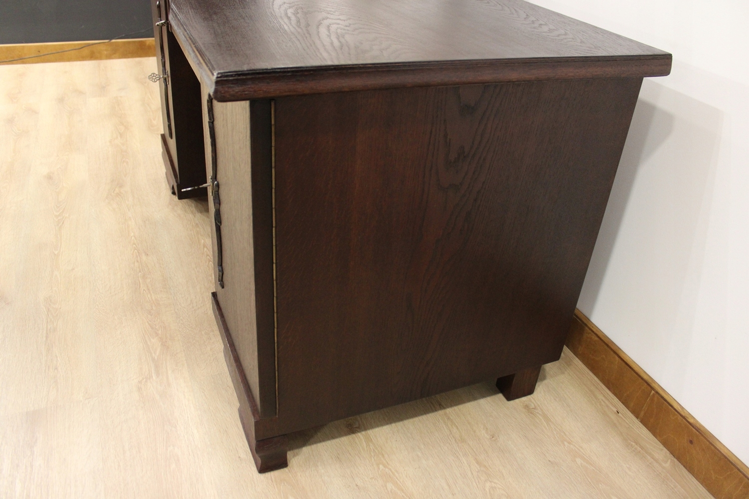Дуже хороший стан. Меблі готові до використання. Оновлено зовнішні поверхні та інтер’єр меблів. Меблі вже старі, а сліди минулого, які не впливають на їх естетичне сприйняття, є доказом автентичності меблів. Стіл можна відразу заселяти в квартиру.