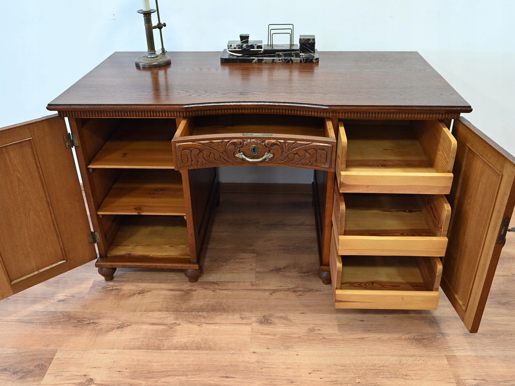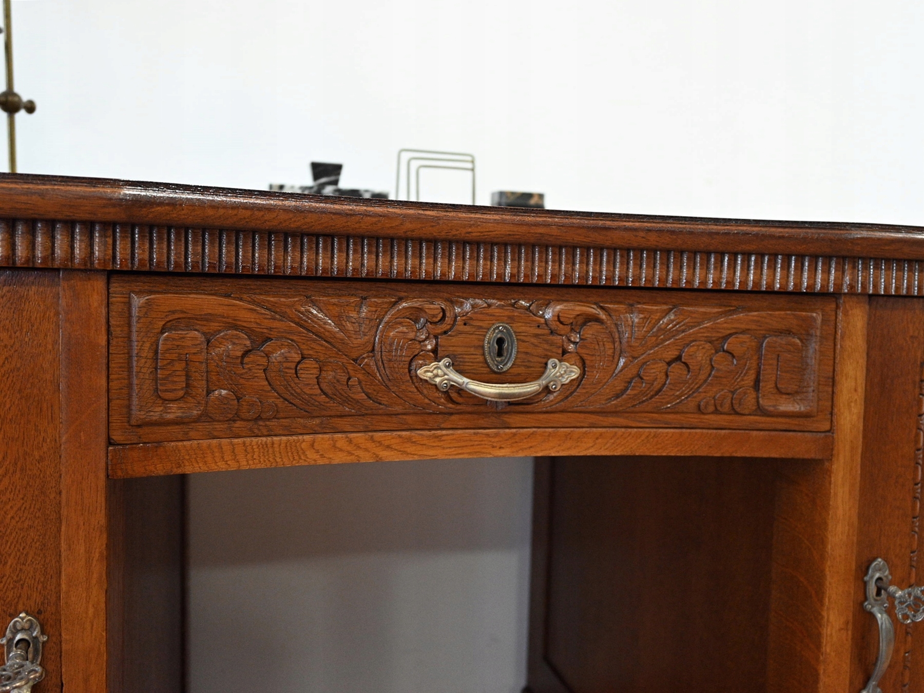 Дуже хороший стан. Меблі готові до використання. Оновлено зовнішні поверхні та інтер’єр меблів. Меблі вже старі, а сліди минулого, які не впливають на їх естетичне сприйняття, є доказом автентичності меблів. Стіл можна відразу заносити в квартиру.