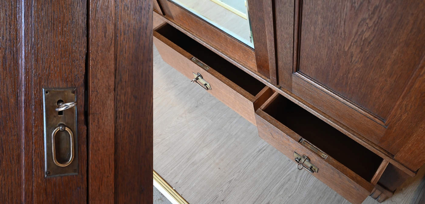 Гарний стан. Меблі готові до використання. Оновлено зовнішні поверхні та інтер’єр меблів. Меблі вже старі, а сліди минулого, які не впливають на їх естетичне сприйняття, є доказом автентичності меблів. Шафа можна відразу заселяти в квартиру.