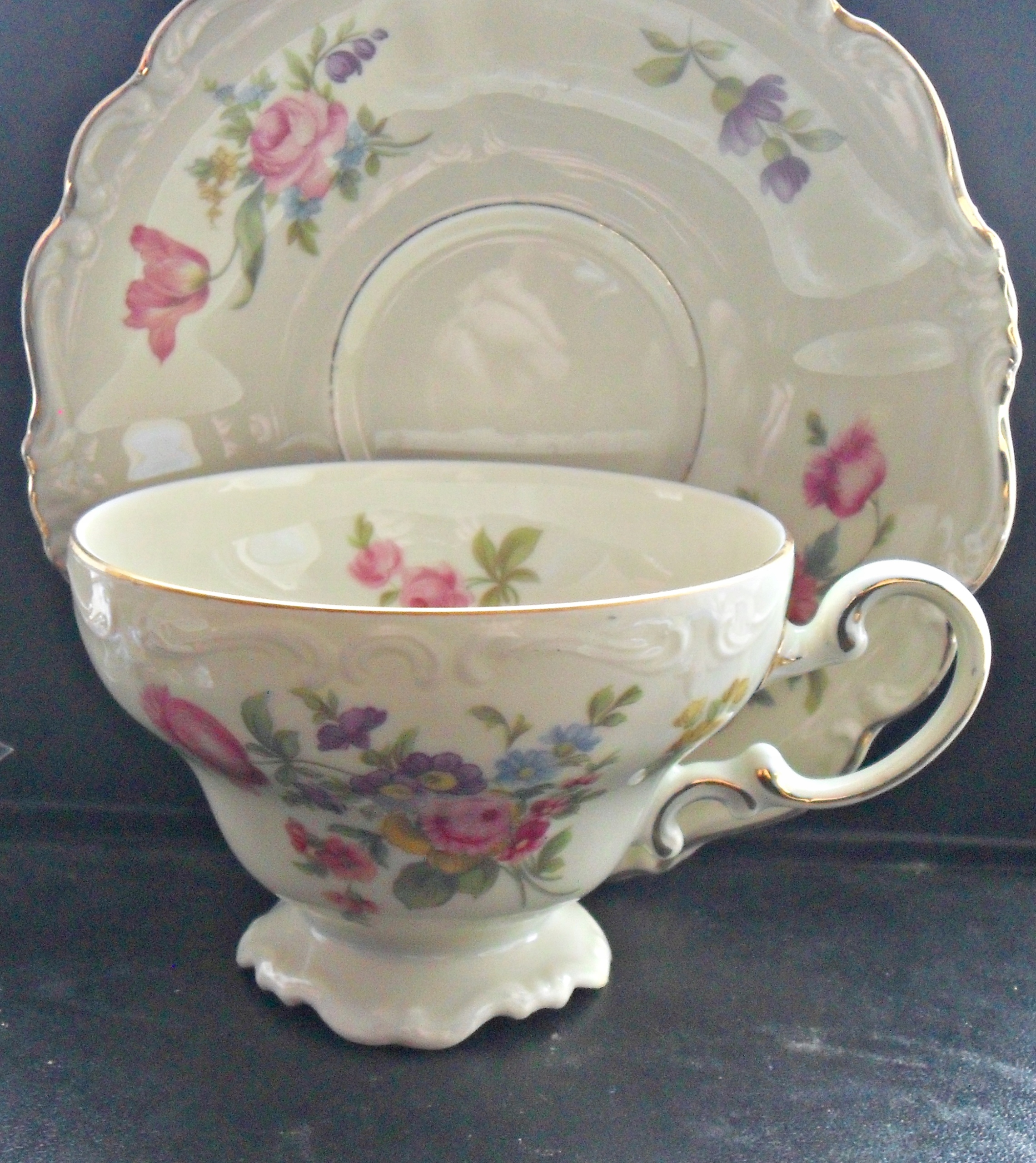 Чашка з блюдцем. Набір прикрашений квітковими мотивами. Делікатність форми та декору, позолота не лише країв. Усі підписані Rosenthal -