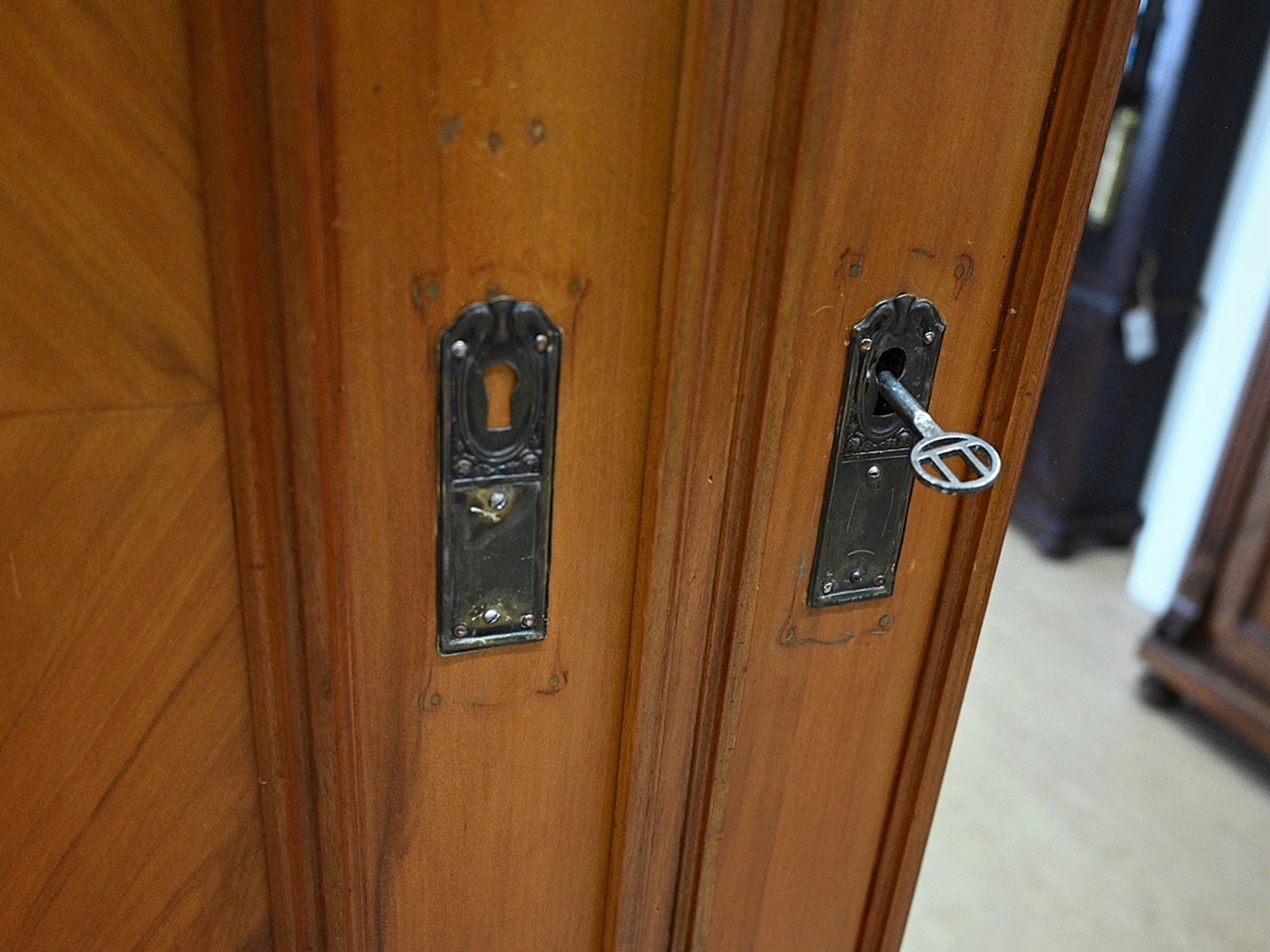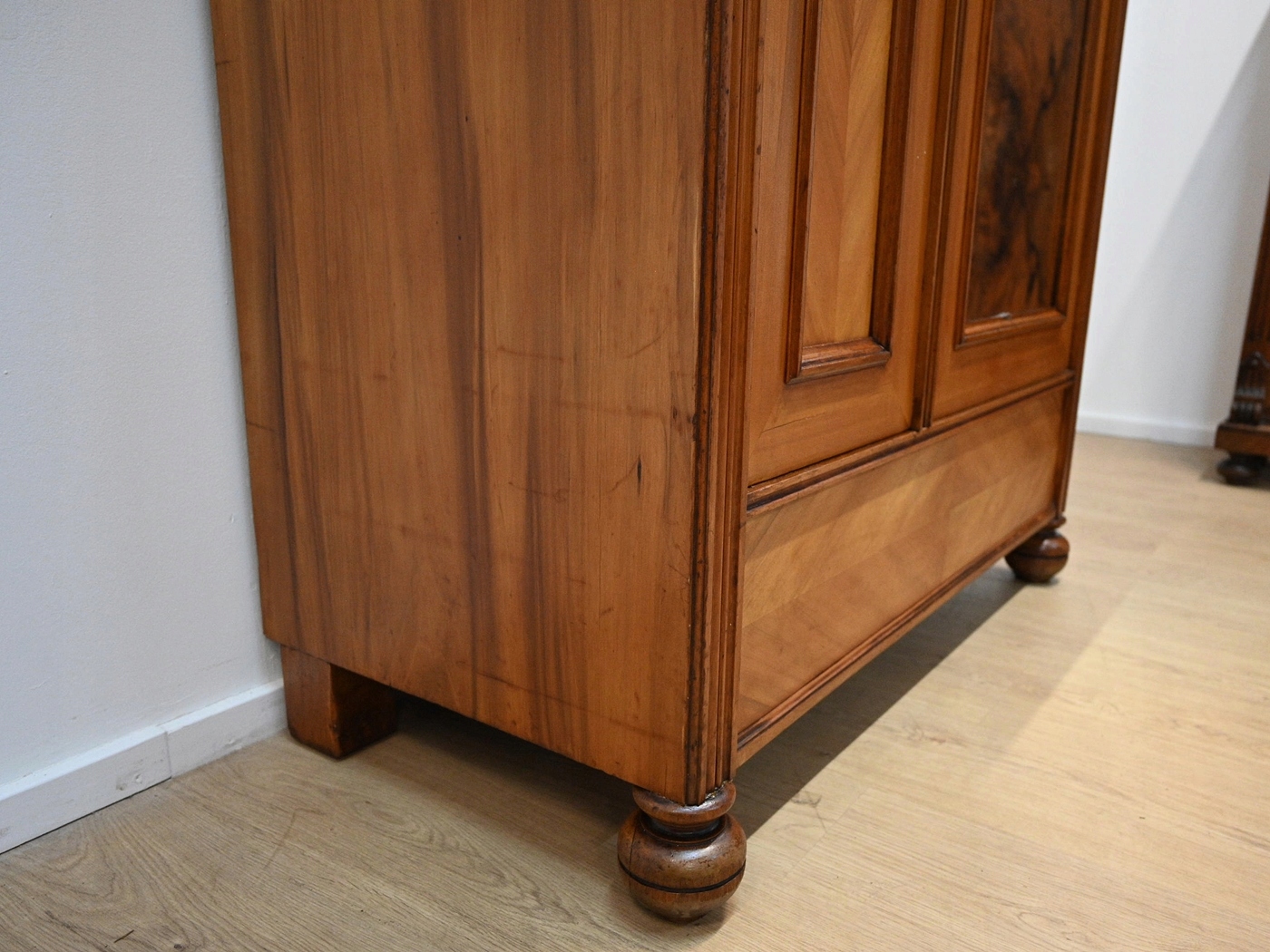 хороший стан. Меблі, підготовлені до використання. Зовнішні поверхні та центр меблів були оновлені. Меблі вже мають свої роки та сліди минулого часу, що не впливає на його естетичний прийом, вони є свідченням справжності меблів. Гардероб можна відразу помістити в квартиру.