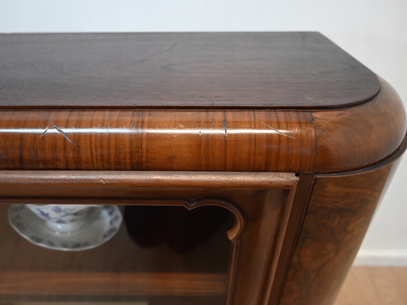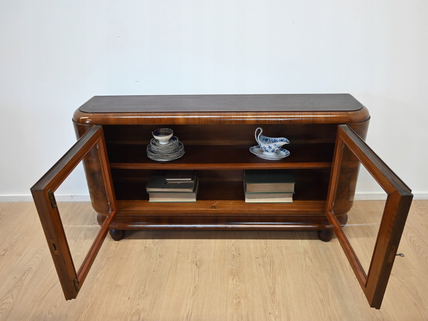 Гарний стан. Меблі готові до використання. Оновлено зовнішні поверхні та інтер’єр меблів. Меблі вже старі, а сліди минулого, які не впливають на їх естетичне сприйняття, є доказом автентичності меблів. Шафу можна відразу поставити в квартиру.
