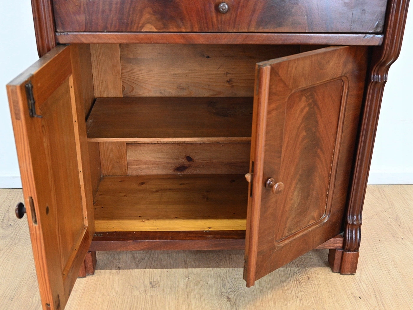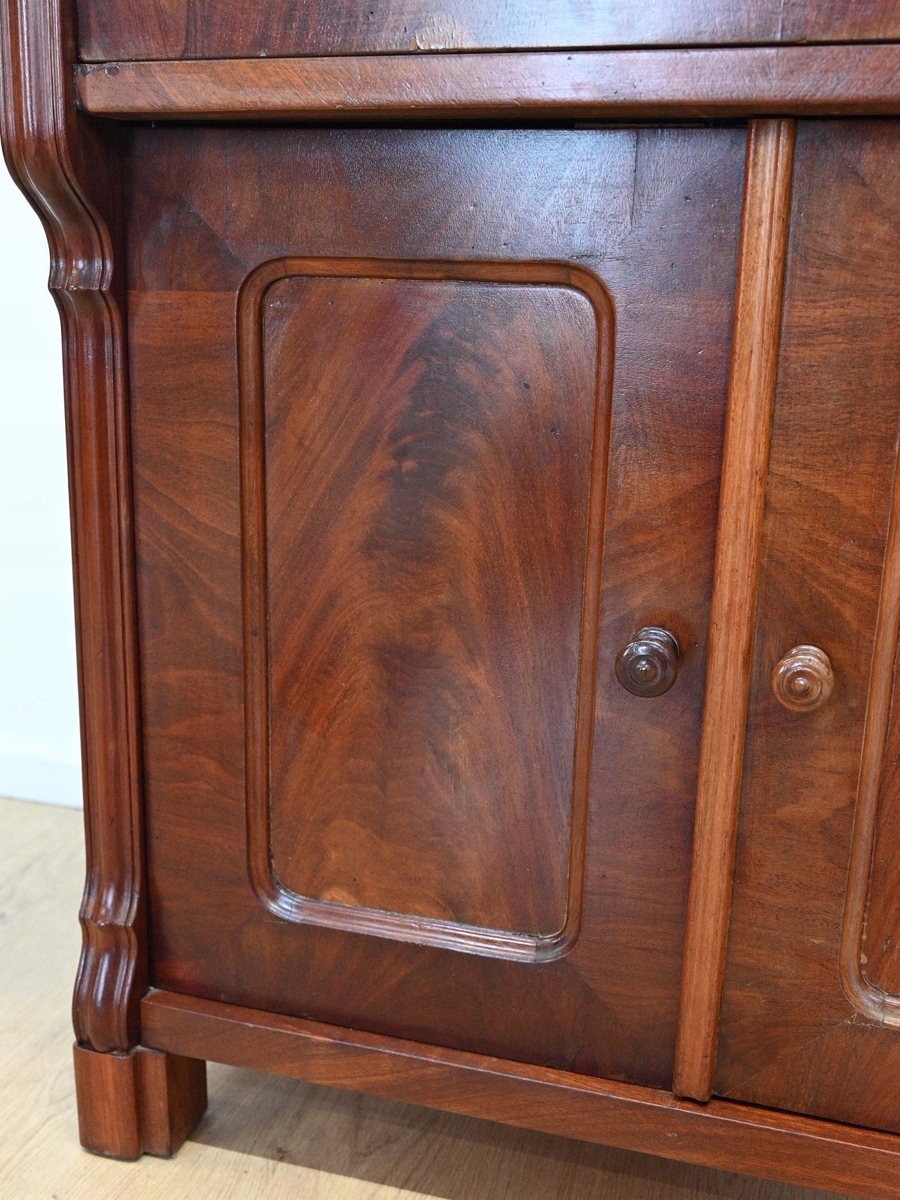 Гарний стан. Меблі готові до використання. Оновлено зовнішні поверхні та інтер’єр меблів. Меблі вже старі, а сліди минулого, які не впливають на їх естетичне сприйняття, є доказом автентичності меблів. Шафу можна відразу поставити в квартиру.