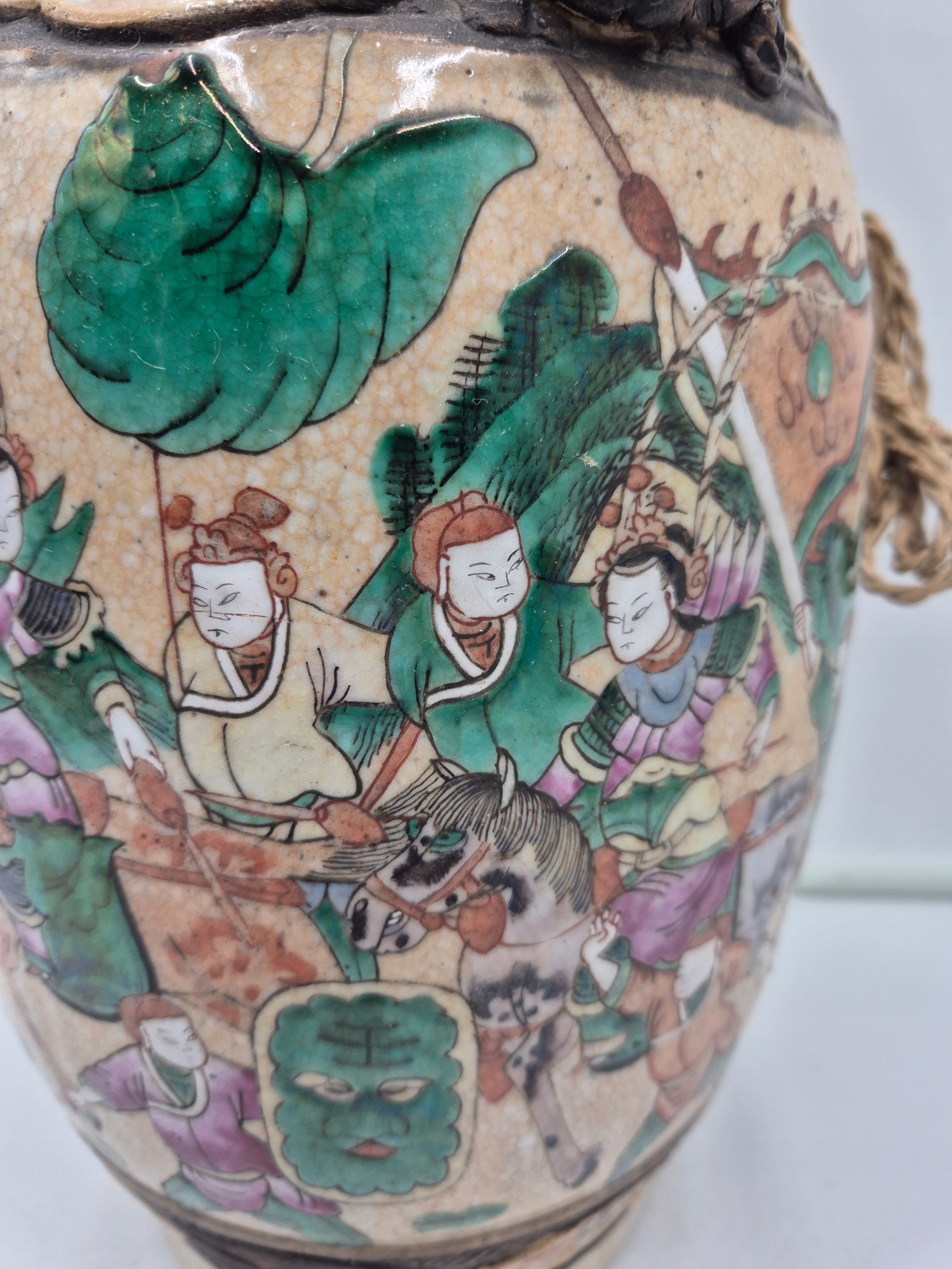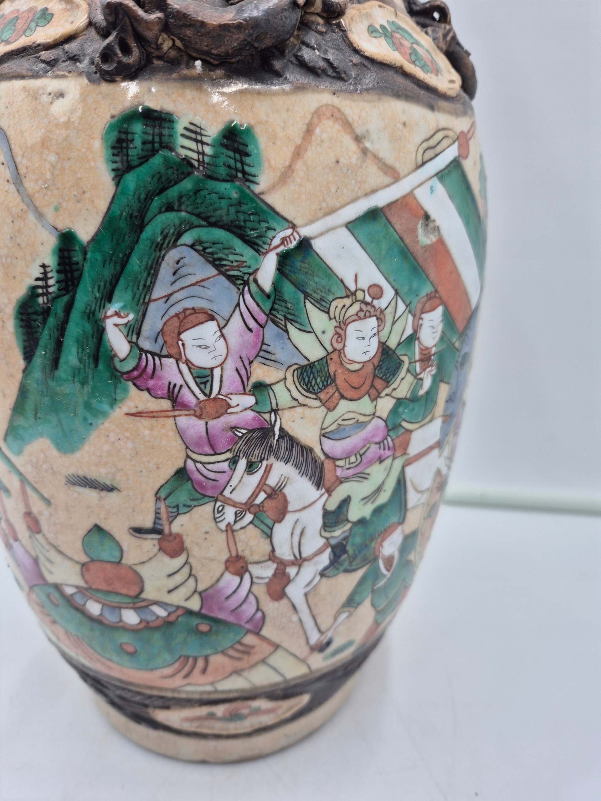 Антикварна китайська Нанкінська ваза Лампа Foo Dogs і бойові сцени 1900 року